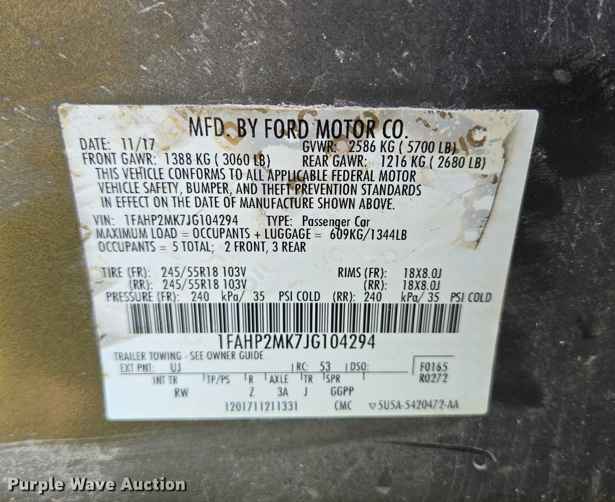 Purple Wave is selling a used Passenger Vehicle in Missouri. This item is a 2018 Ford Taurus Police Interceptor with the following: Miles: 167,083 on odometer, Hours: 11,290 on meter, VIN: 1FAHP2MK7JG104294
