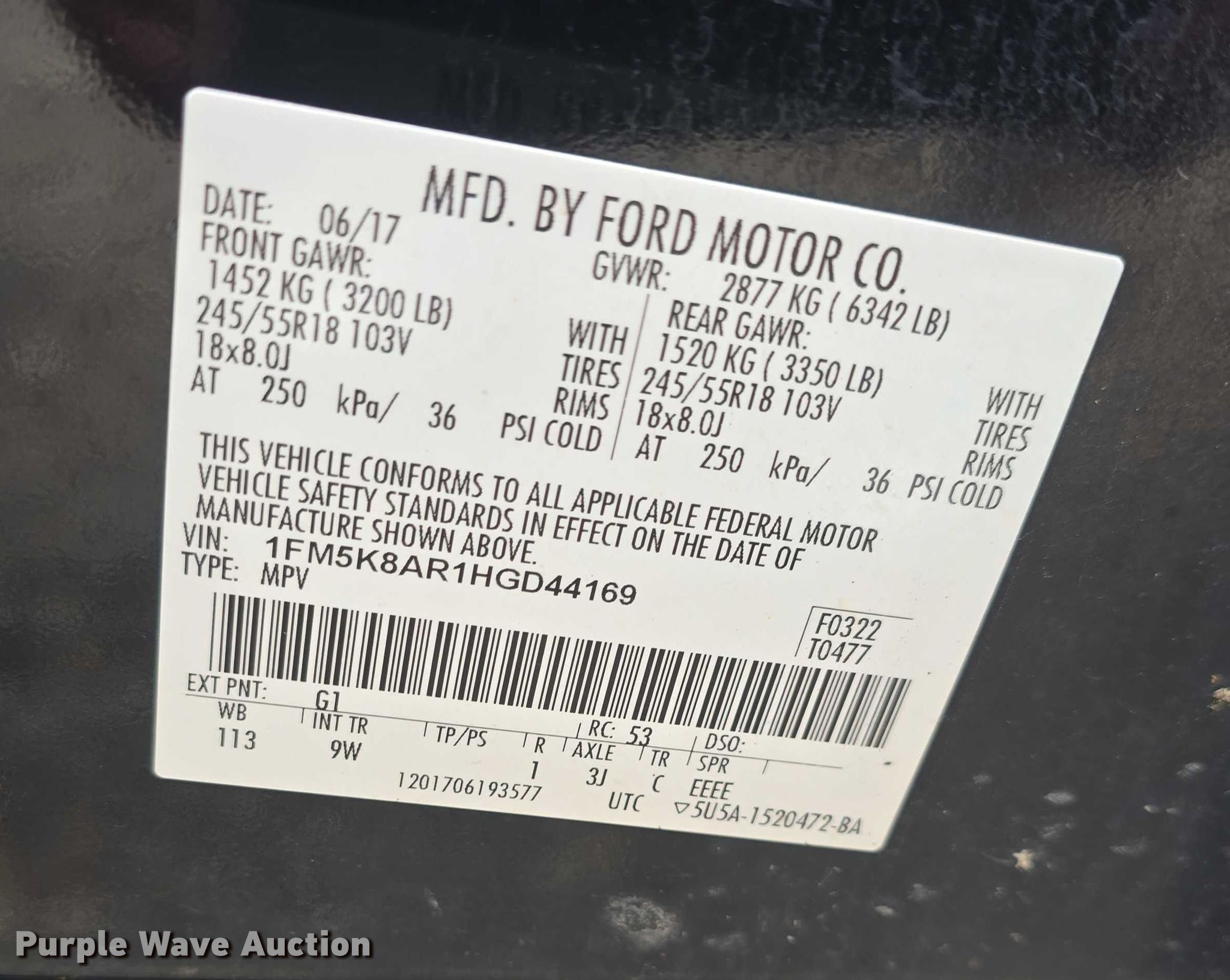 - VIN: 1FM5K8AR1HGD44169