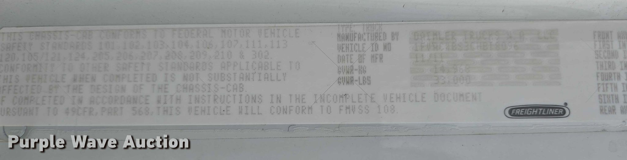 Purple Wave is selling a used Crane Truck in Kansas. This item is a 2012 Freightliner Business Class M2 crane truck with the following: Miles: Unknown, VIN: 1FVACXBS3CHBT8096, Unit #: 1714