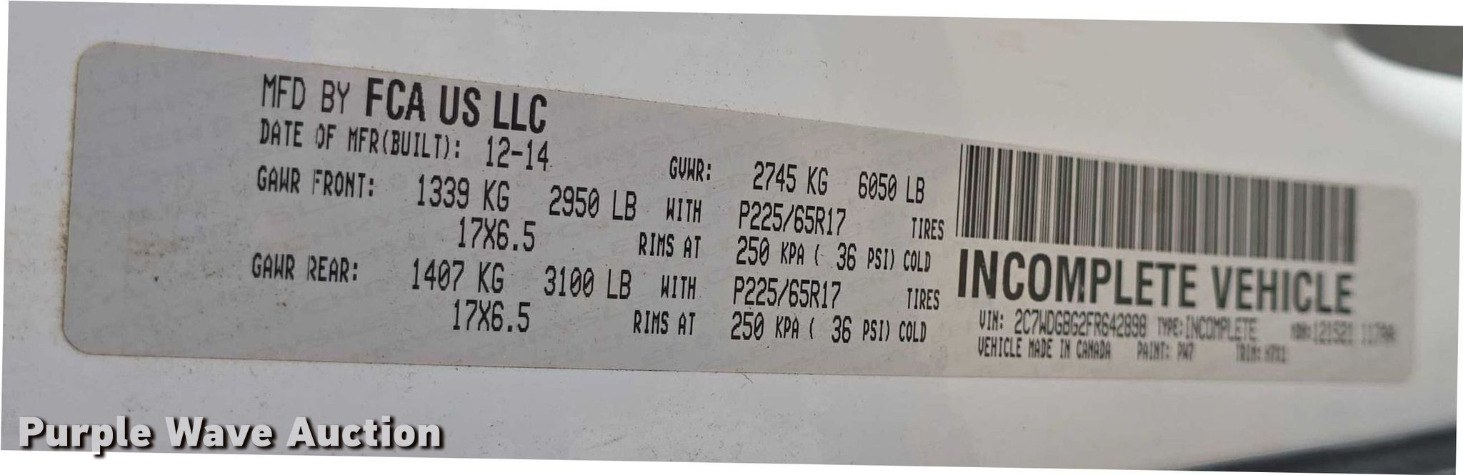 Purple Wave is selling a used Passenger Vehicle in Kansas. This item is a 2015 Dodge Grand Caravan handicap accessible van with the following: Miles: 233,809 on odometer, VIN: 2C7WDGBG2FR642898, Unit #: 2898