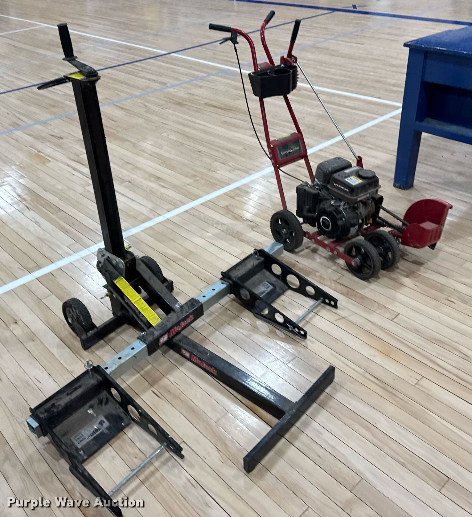 Purple Wave is selling a used Lawn and Garden in Kansas. This item is a Lawn and garden equipment with the following: Mo Jack mower jack, Earthquake lawn edger, Electric Motor, Viper, Displacement: 79 cc,