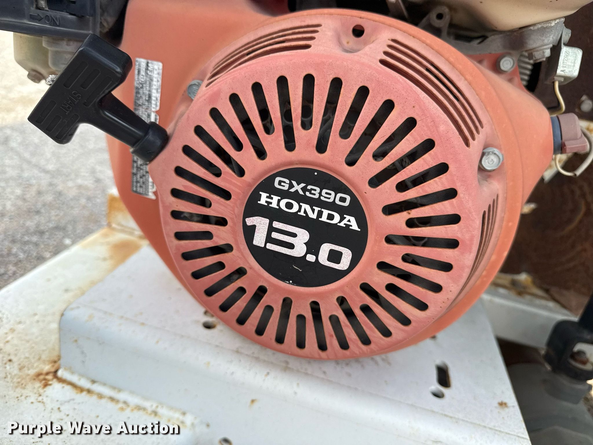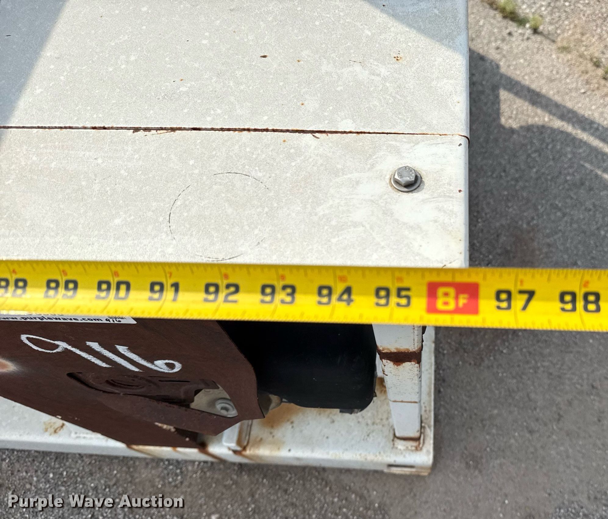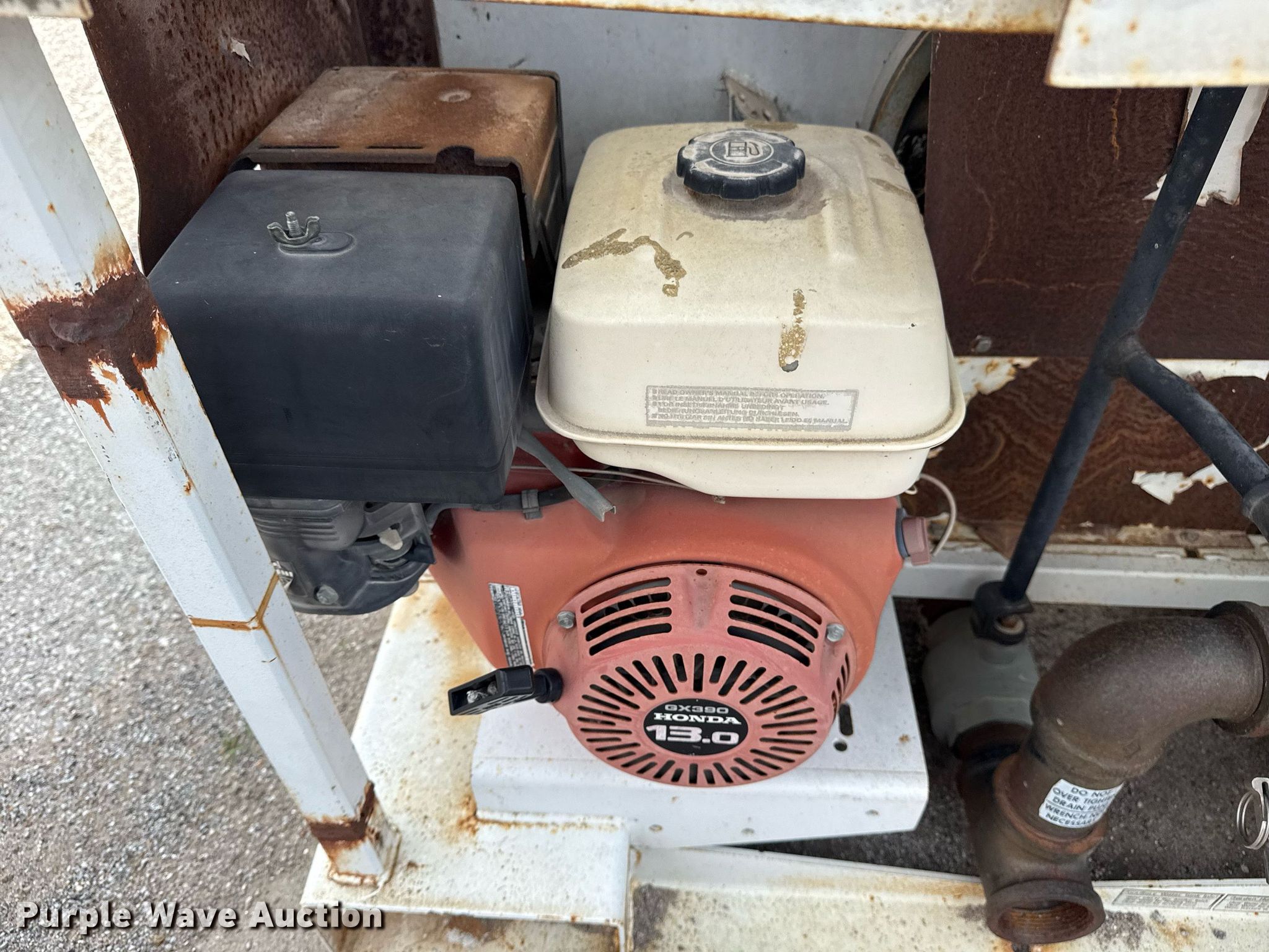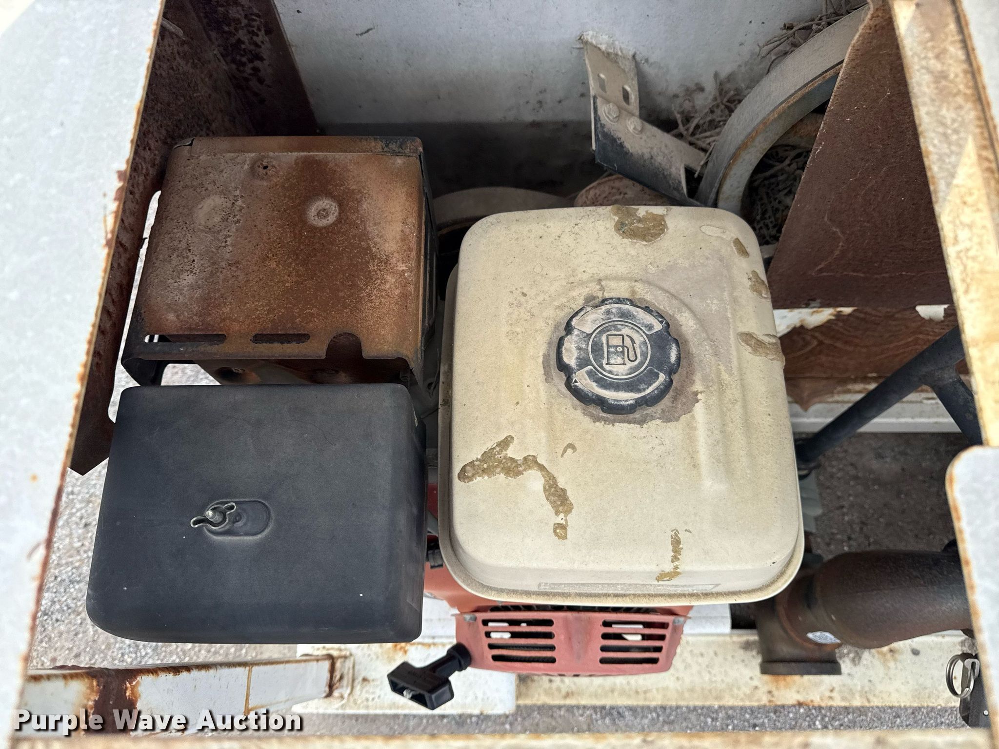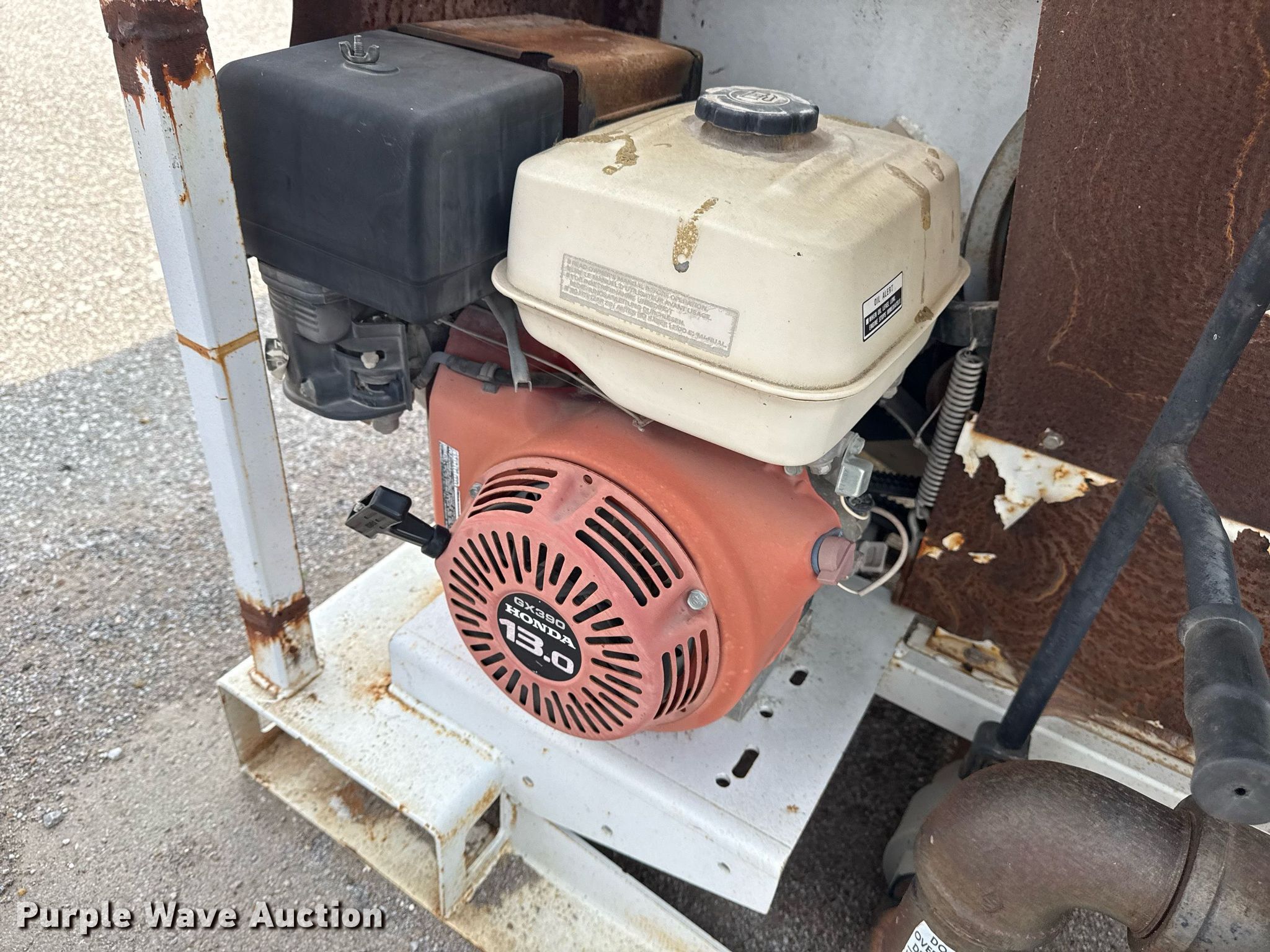 Turf Maker hydroseeder. 8' L x 49" W x 5' H, Unit #: 916. Engine Honda GX390, Cylinders: 1, Fuel type: Gas, HP: 13. Features Pump Bowe Machine Works, Hose reel, Top fill. City of Tulsa. 108 N Trenton Ave. Tulsa, OK 74120
