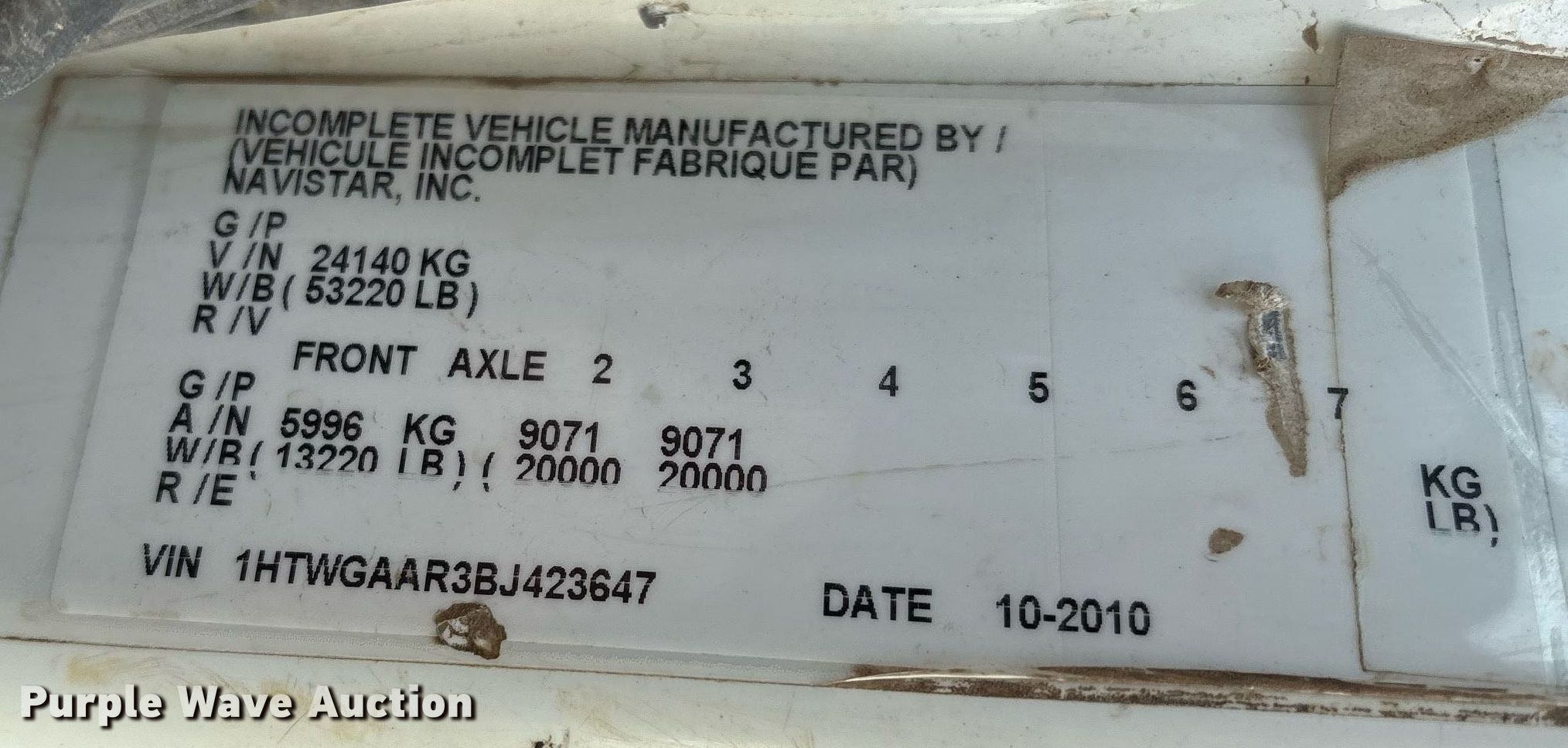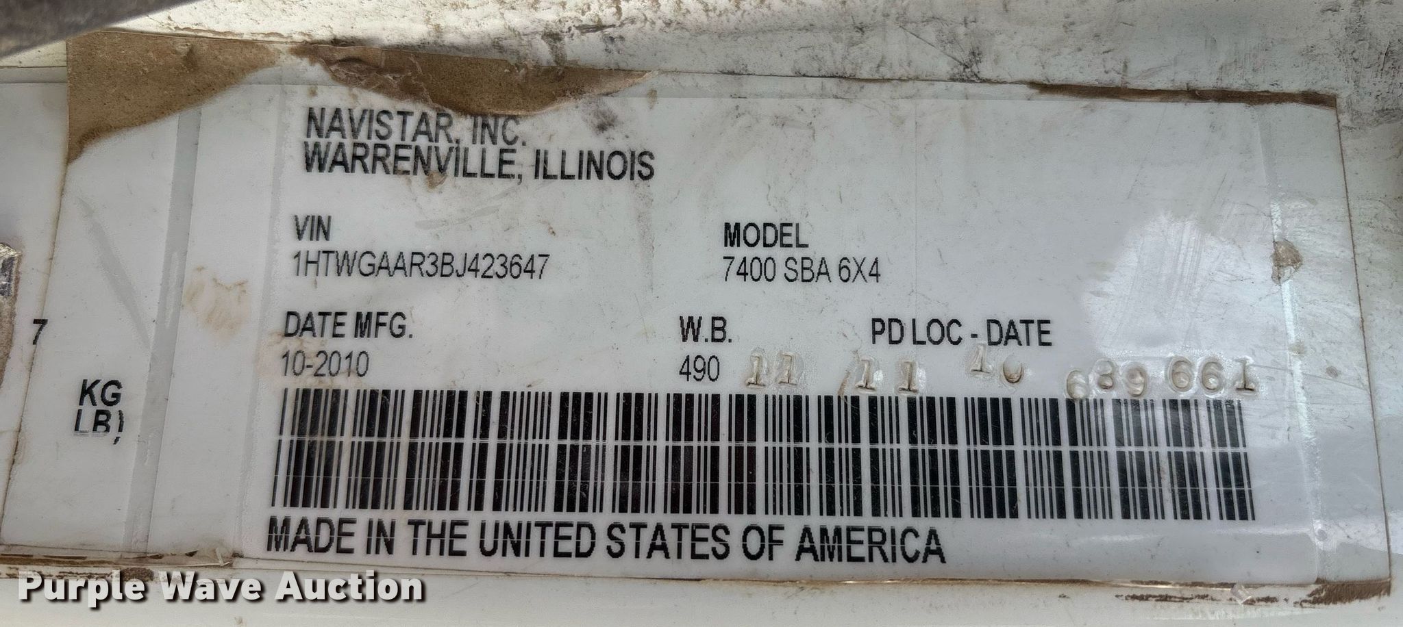Purple Wave is selling a used Construction Dump Truck in Oklahoma. This item is a 2011 International 7400 dump truck with the following: Miles: 105,449 on odometer, Hours: 10,302 on meter, VIN: 1HTWGAAR3BJ423647, Unit #: 100