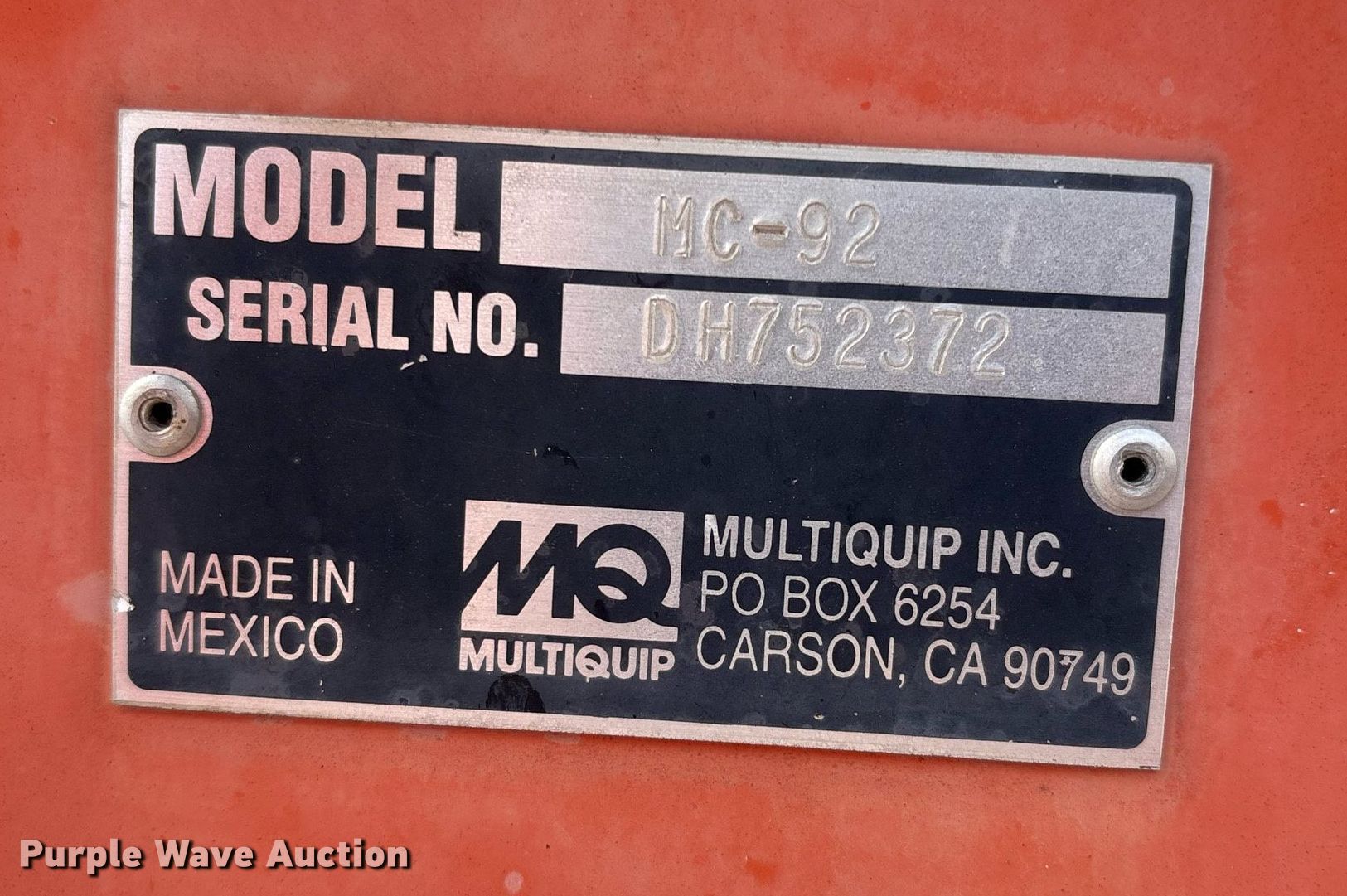 Purple Wave is selling a used Concrete Equip. or Acces. in Oklahoma. This item is a 2003 Multiquip MC-92 concrete mixer with the following: Serial: DH752372, Unit #: 107