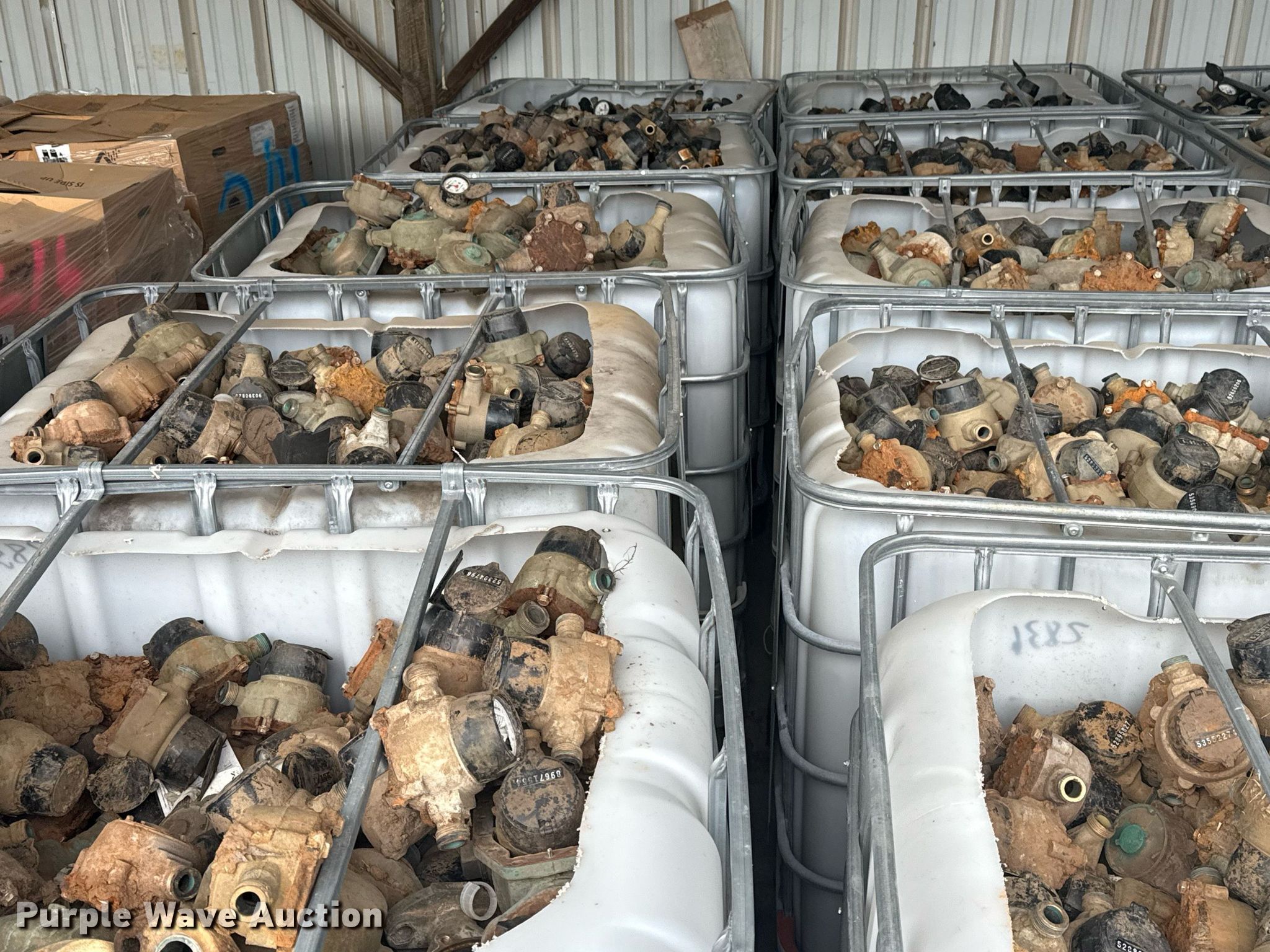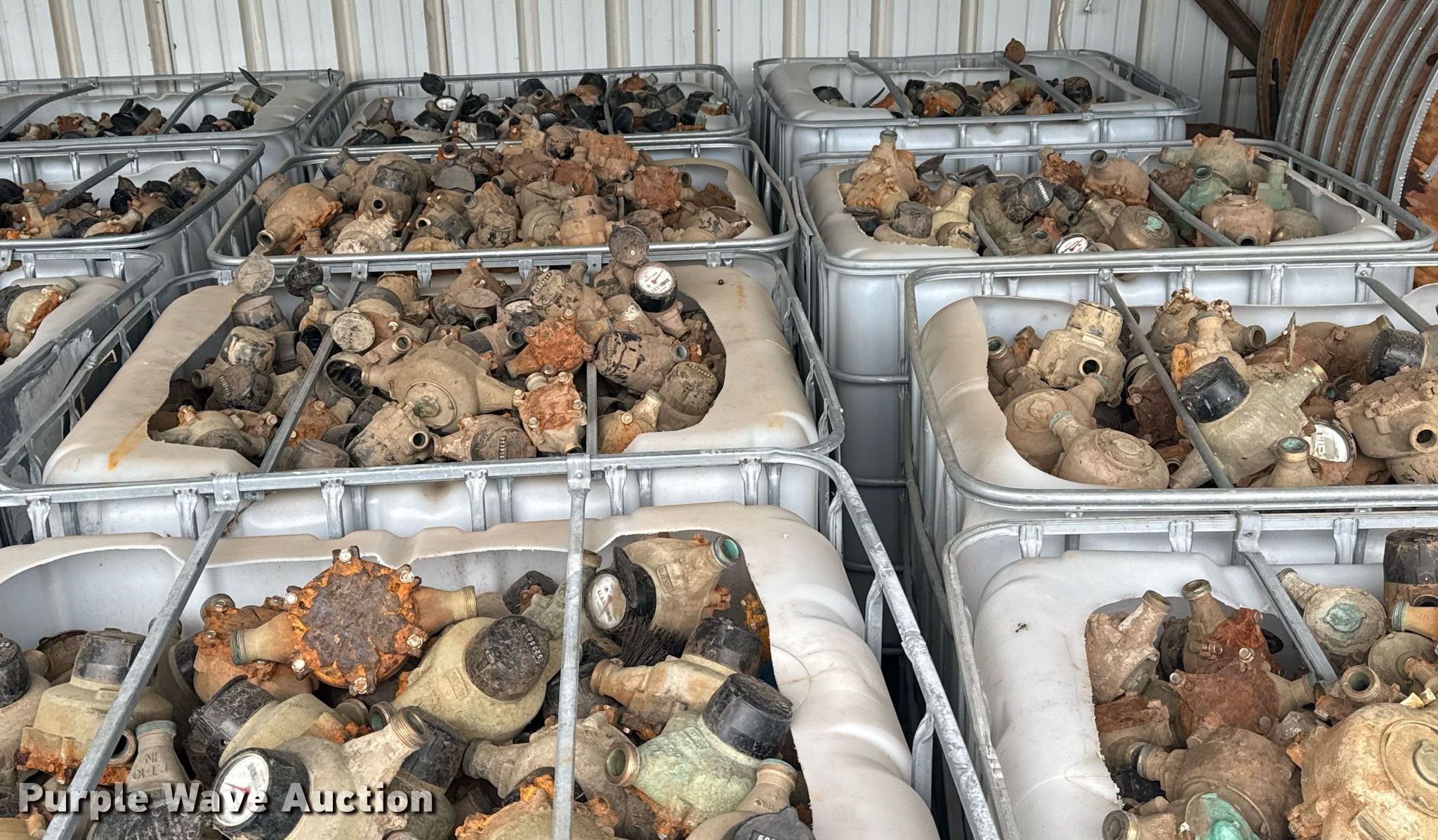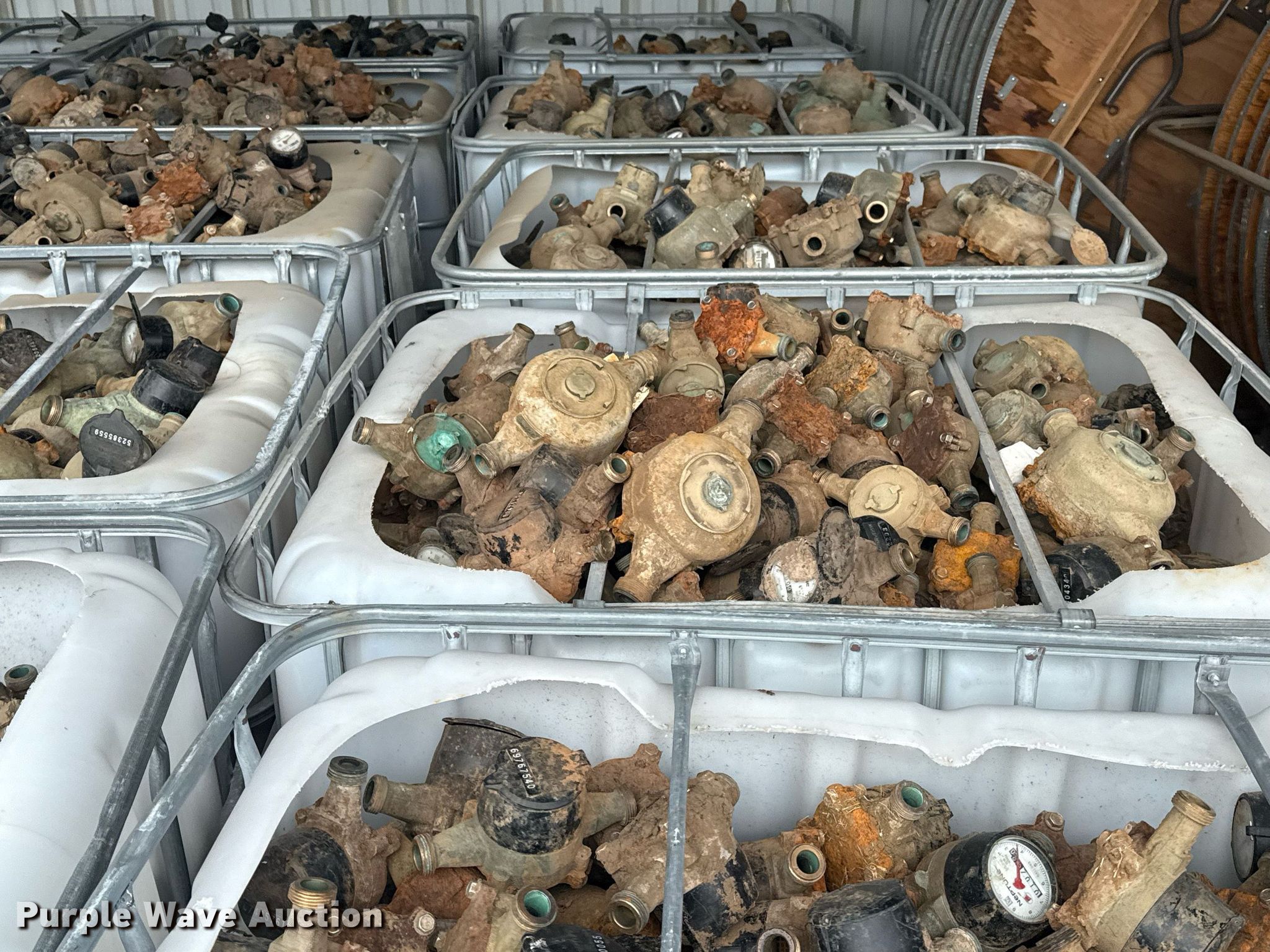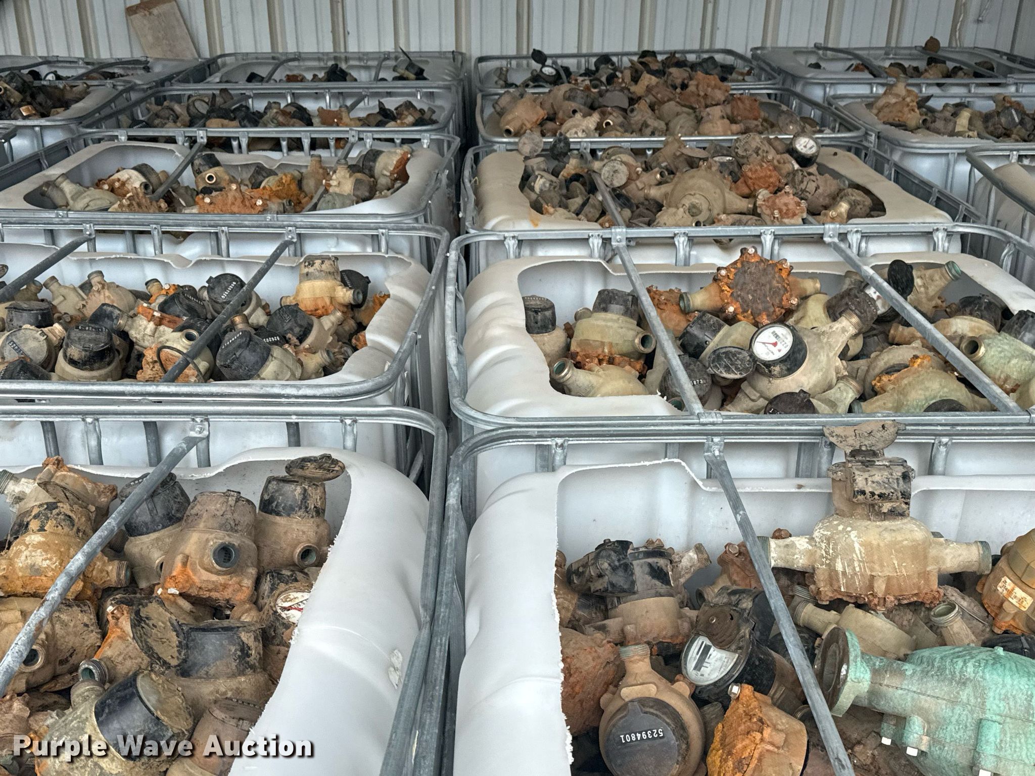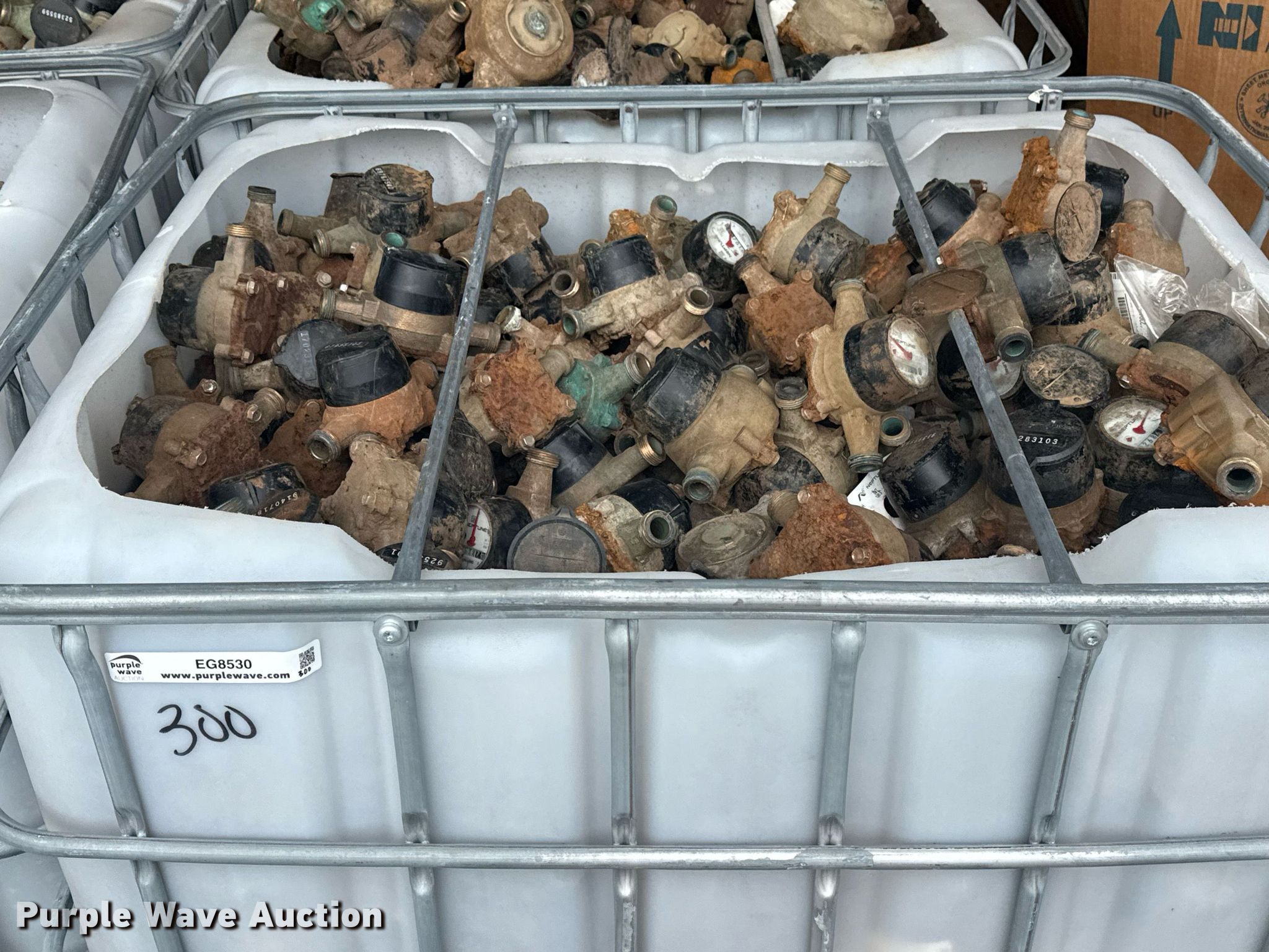 Purple Wave is selling a used Building Materials in Oklahoma. This item is a (21) poly totes of water meters with the following: Approx. 45,000 lbs, Unit #: 300