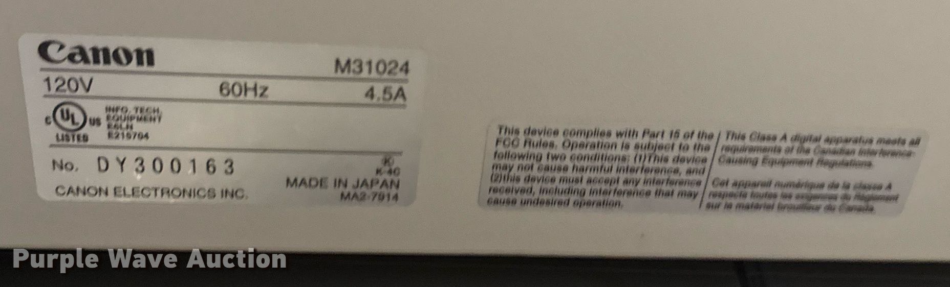 Purple Wave is selling a used Electronics in Oklahoma. This item is a Canon Microfilm Scanner 800II scanner with the following: Serial: DY300163, Unit #: 2010