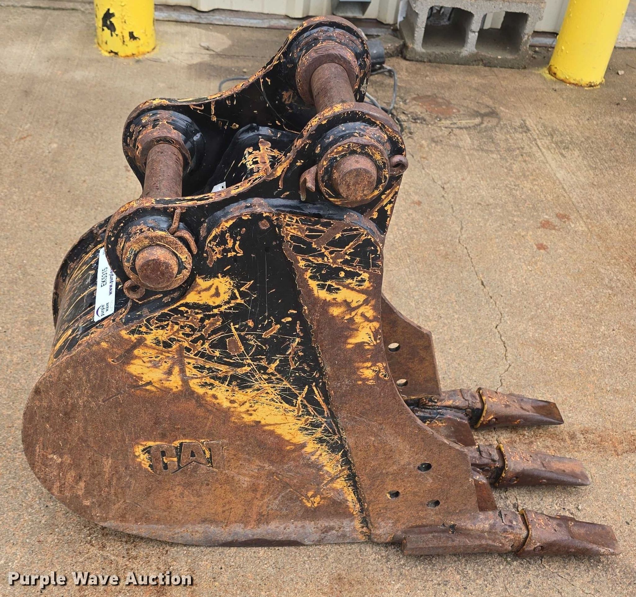 Purple Wave is selling a used Excavator Attach. in Kansas. This item is a Caterpillar mini excavator bucket with the following: Width: 11", Teeth: 3, Capacity: 0.06 cu. yd.
