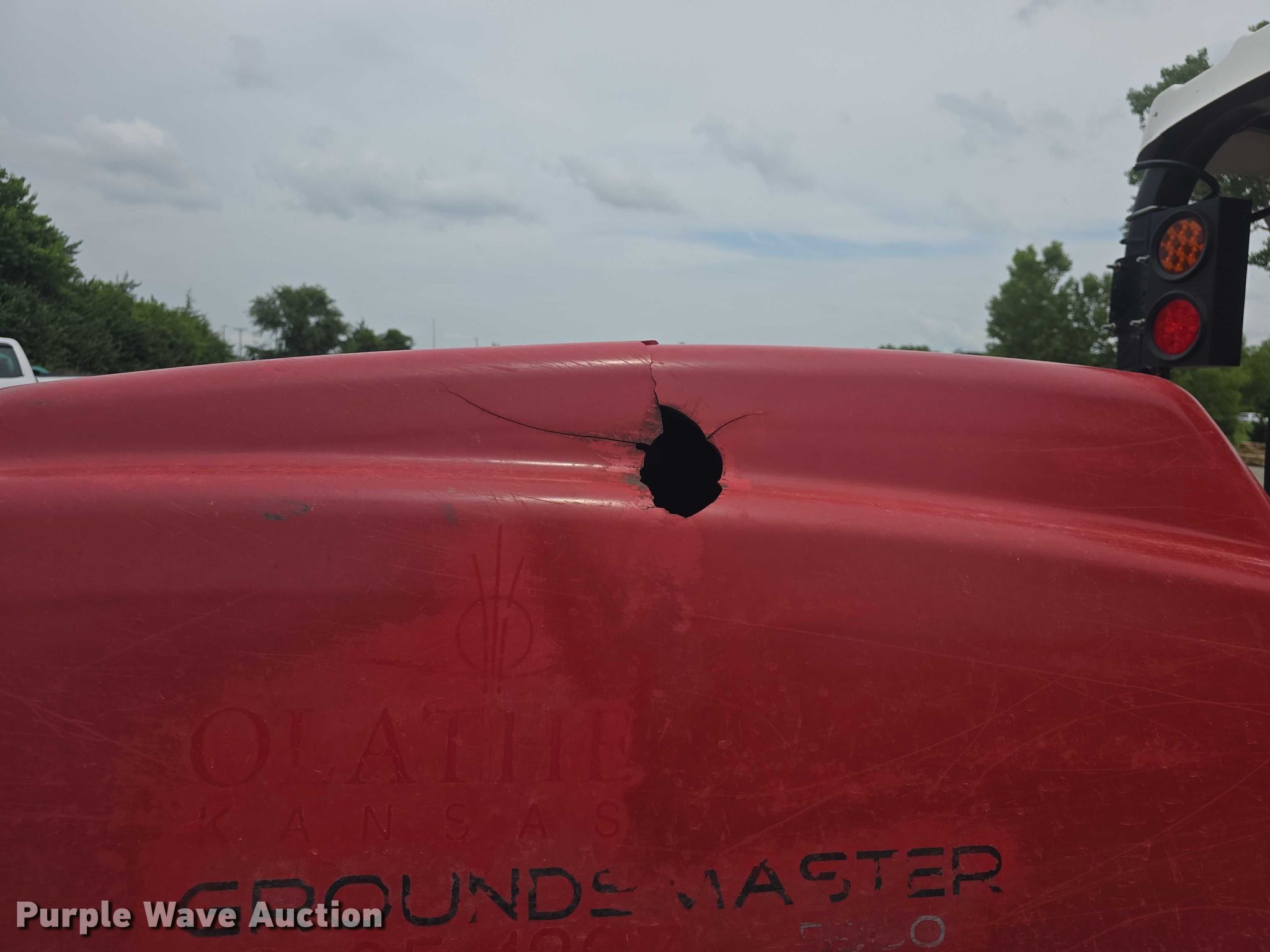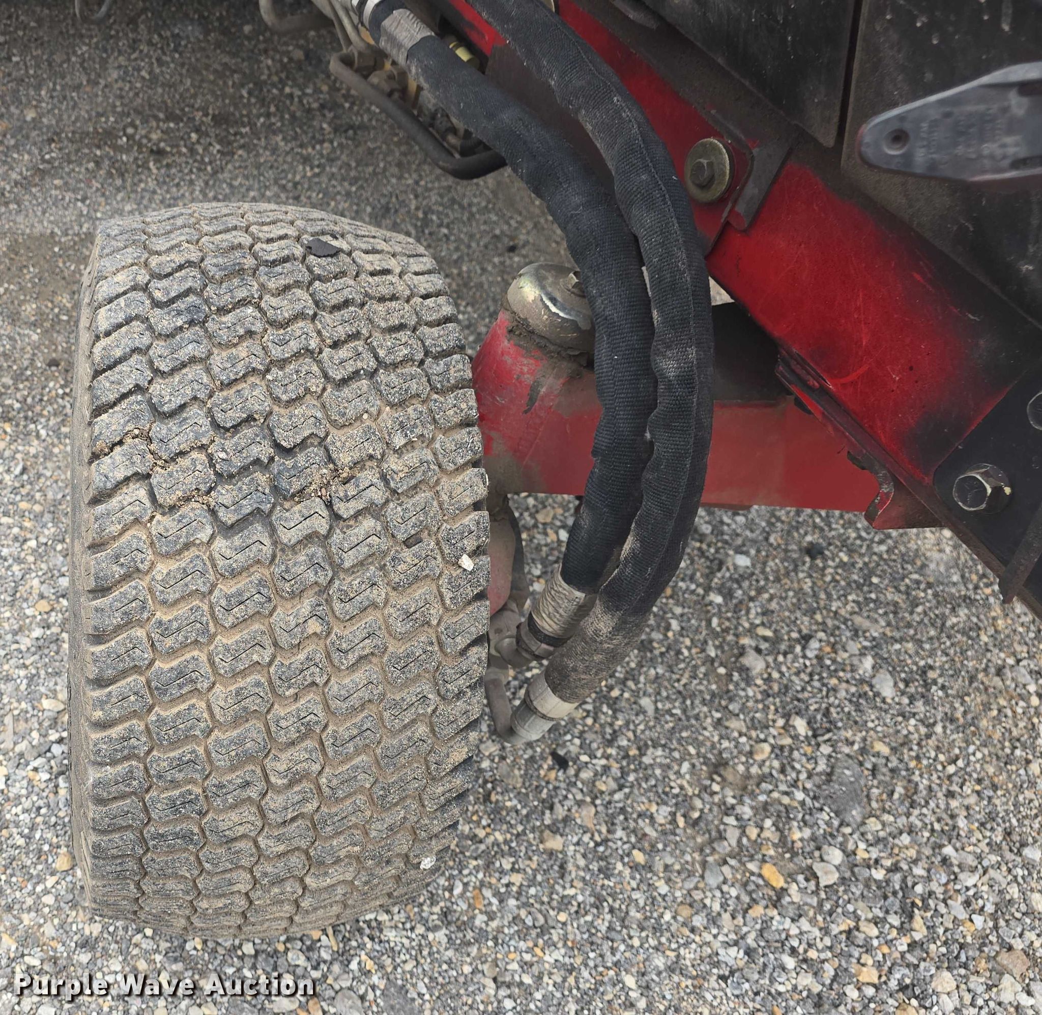 2013 Toro Groundmaster 5900 lawn mower. Hours: 4,530 on meter, Serial: 913000164, Unit #: 1307. Engine Fuel type: Diesel. Transmission Hydrostatic. Features Hydraulic fold decks, Hydraulic front deck lift, Width: 16'. Tires Front: 29x12.50-15, Rear: 23x10.50-12, Brand: Carlisle. Notes Engine hood latch broken, Hydraulic leak. City of Olathe. Olathe, KS 66061