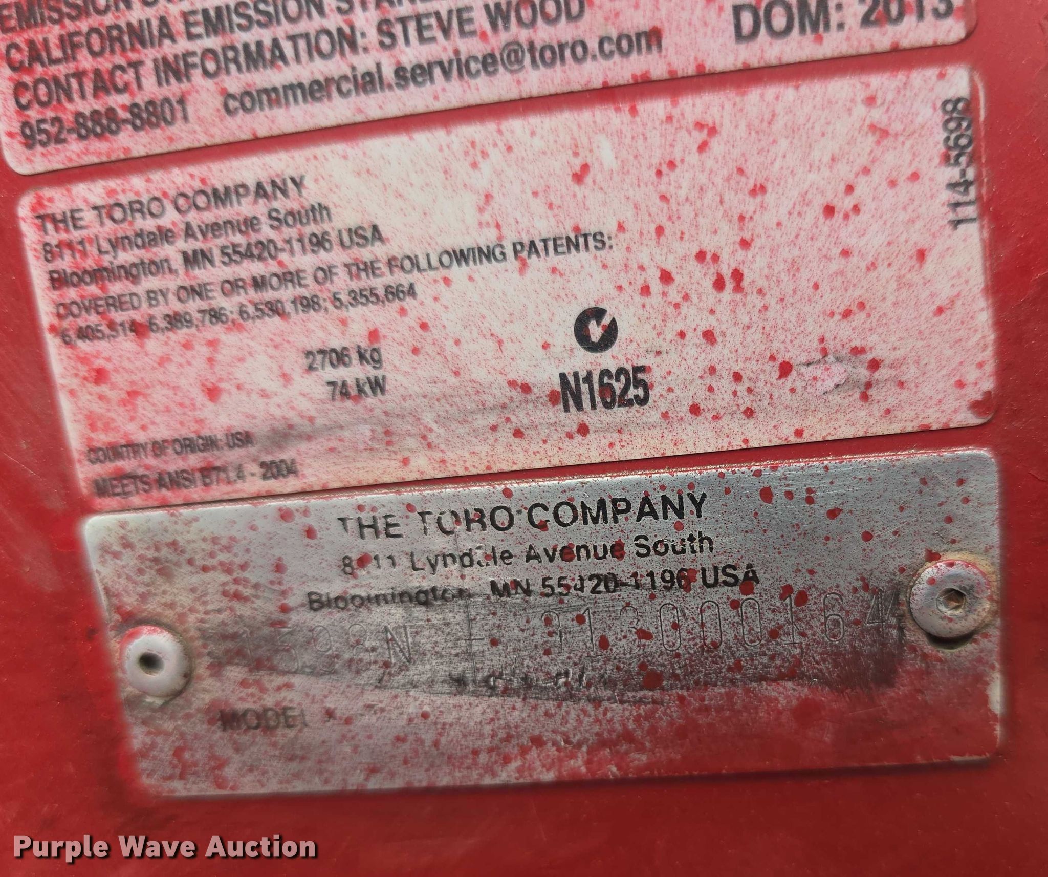 Purple Wave is selling a used Commercial Turf Mower in Kansas. This item is a 2013 Toro Groundmaster 5900 lawn mower with the following: Hours: 4,530 on meter, Serial: 913000164, Unit #: 1307