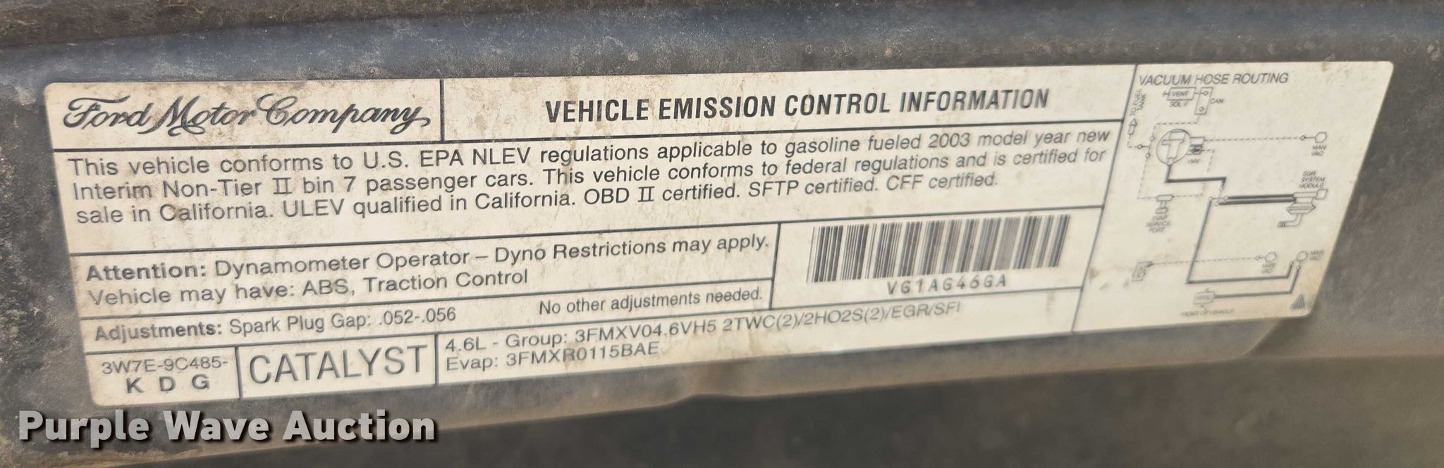 2003 Ford Crown Victoria Police Interceptor. Miles: 259,314 on odometer, VIN: 2FAFP71WX3X120367, Unit #: 3014. Engine Displacement: 4.6L V8 SOHC, Cylinders: 8, Fuel type: Gas. Transmission Automatic. Interior AC, Heat, Heated mirrors, Power windows, Power locks, Cruise control. Tires Size: 225/60R16. Notes Windshield chipped or cracked, Dead battery, Unknown operating condition. Missouri title. Title distribution may be delayed up to 14 days from verification of funds. Jackson County MO. Lee Summit, MO 64064