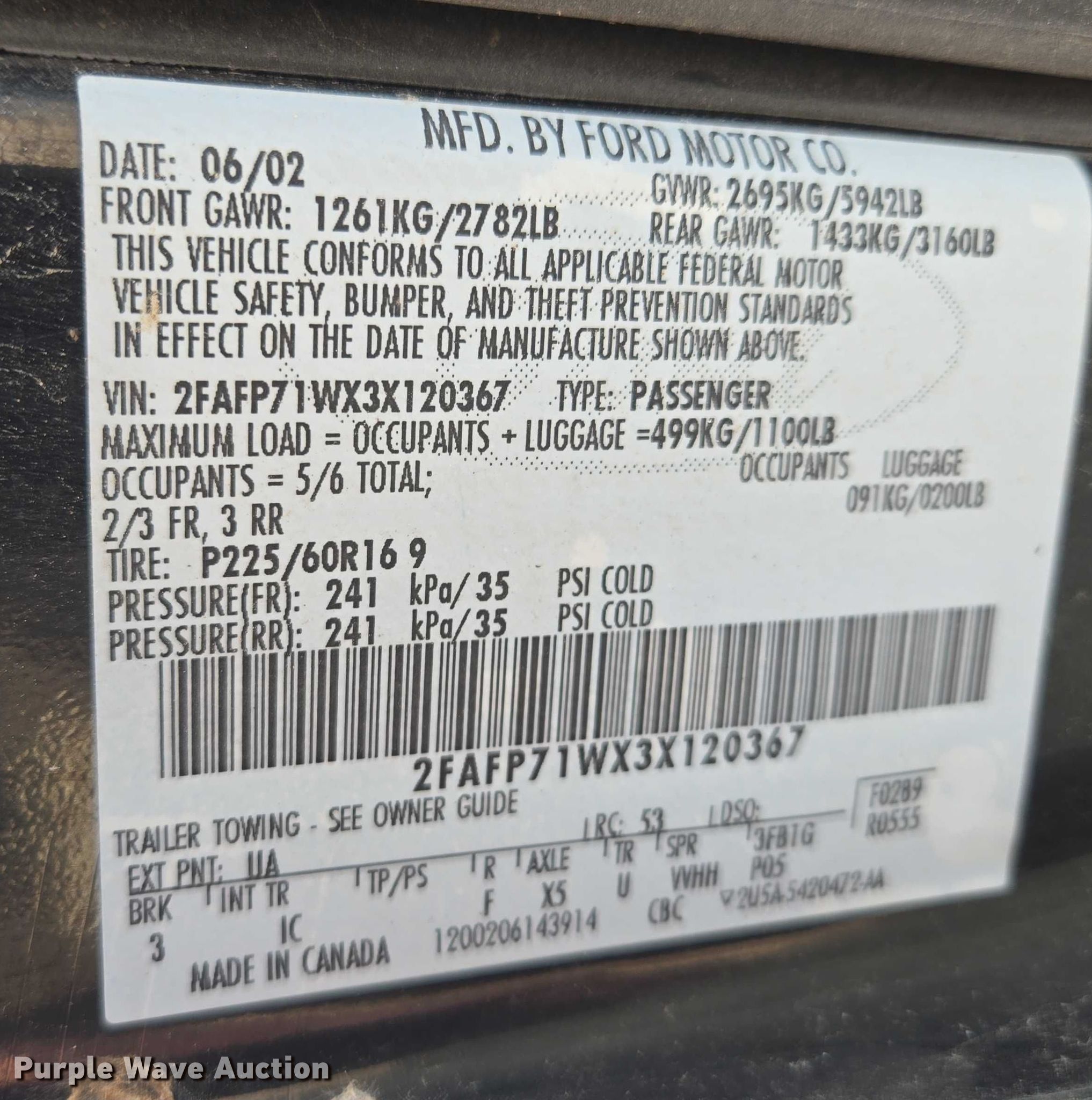 Purple Wave is selling a used Passenger Vehicle in Missouri. This item is a 2003 Ford Crown Victoria Police Interceptor with the following: Miles: 259,314 on odometer, VIN: 2FAFP71WX3X120367, Unit #: 3014