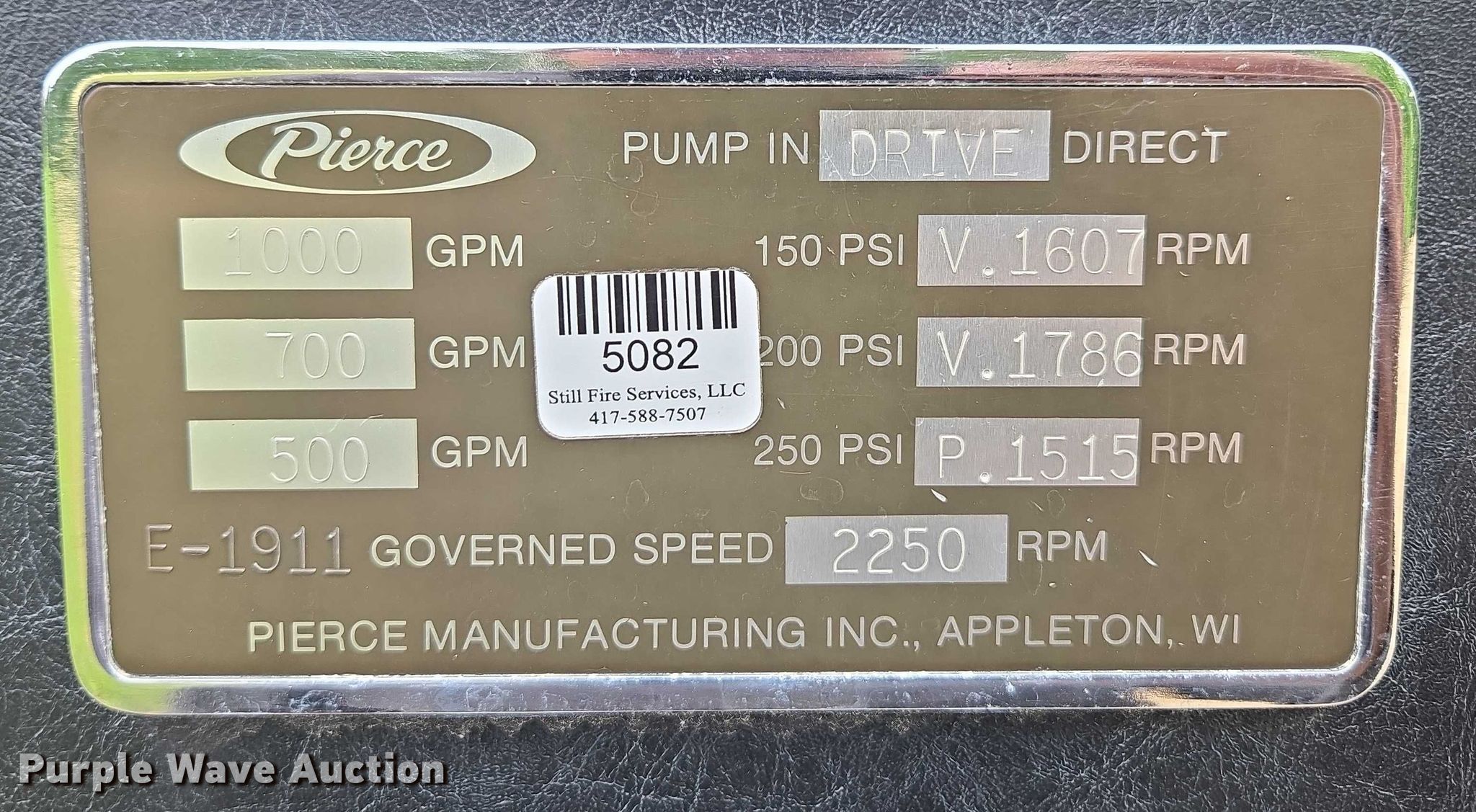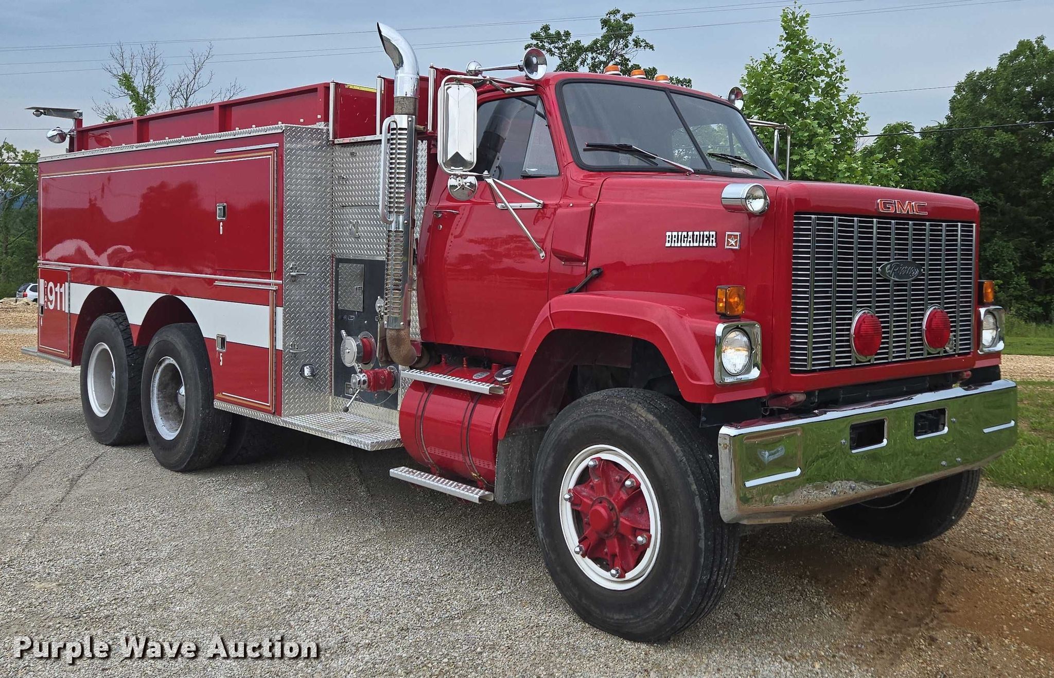 1982 GMC Brigadier pumper fire truck. Kilometers: 20,797 on odometer Actual kilometers unknown, Hours: 866 on meter Actual hours unknown, VIN: 1GDT9C4J0CV589397. Engine Detroit Diesel 6V-92TA, Displacement: 9.0L, Cylinders: 6, Fuel type: Diesel. Transmission Automatic. Chassis Axles: Tandem, Suspension: Spring over walking beam, Brakes: Air, GVWR: 51,180 lbs. Interior Heat. Features Fire truck body Pierce, Tank Capacity: 2,500 gallons, Pump 1,000 gpm, PA/ siren controls. Tires Front: 11R22.5, Rear: 11.00R20. Notes Tank issues, rust damage , Pump issues. Missouri title. Mileage has not been verified. Exempt will be written in the odometer disclosure on the title. Title distribution may be delayed up to 30 days from verification of funds. Central Taney Fire Protection. Kissee Mills, MO 65680