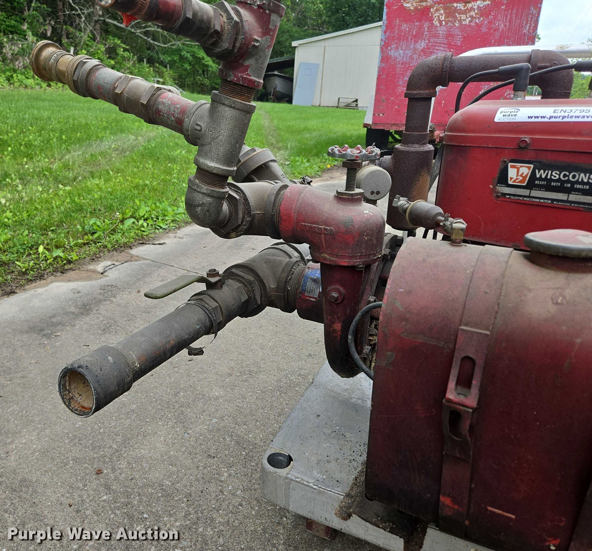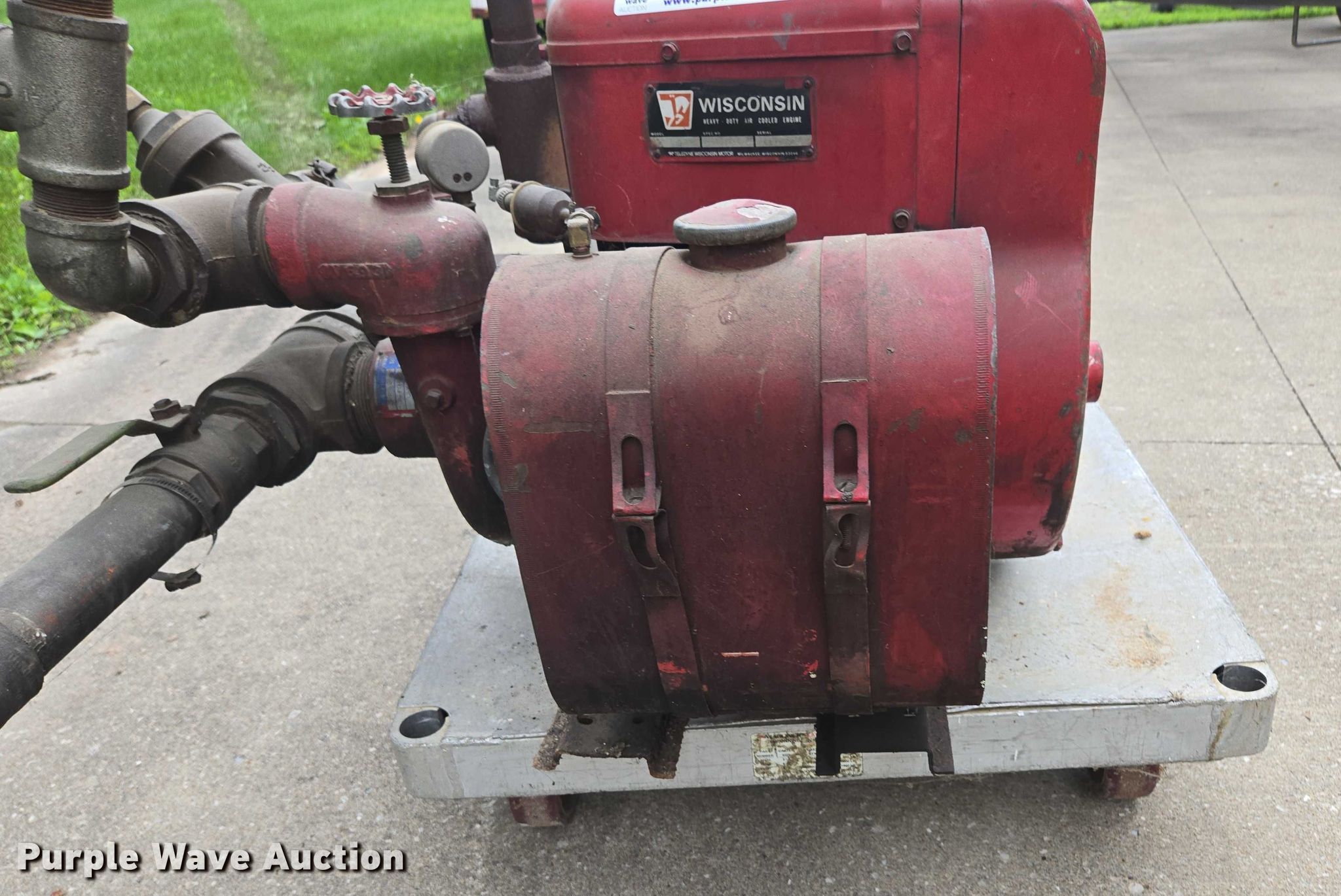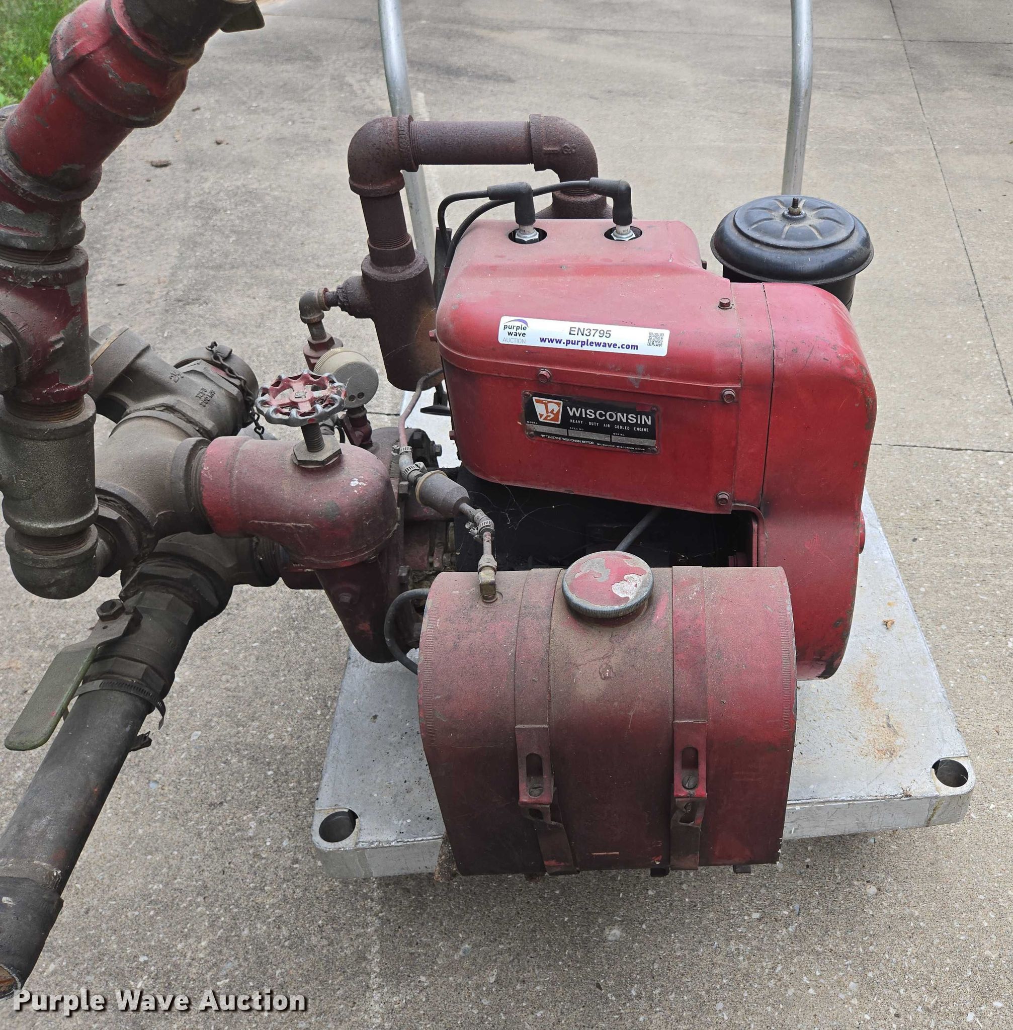 American Fire pump. Size: 4 X D, Type: P T B L. Engine Wisconsin TJD, Serial: 5141304, Cylinders: 2, Fuel type: Gas. Notes Cart not included, Possible engine issues, turns over but will not start. Central Taney Fire Protection. Taneyville, MO 65759