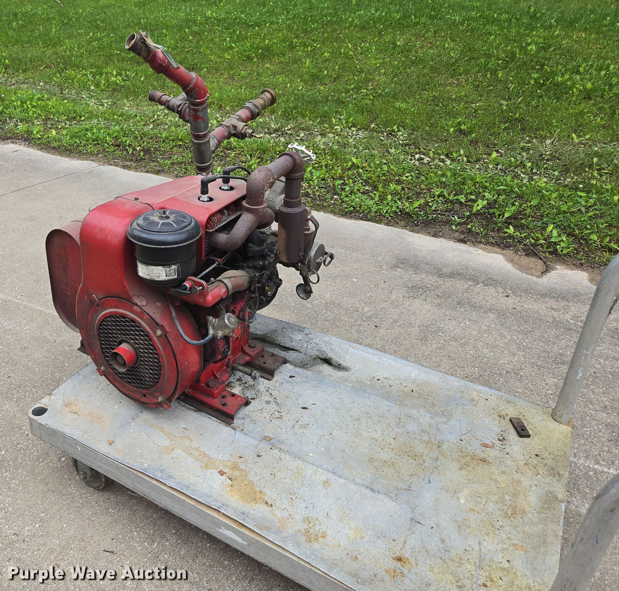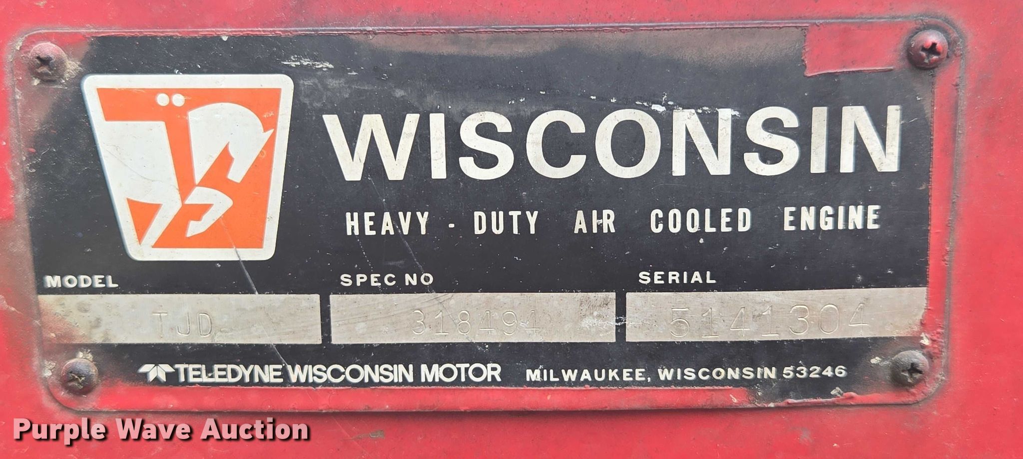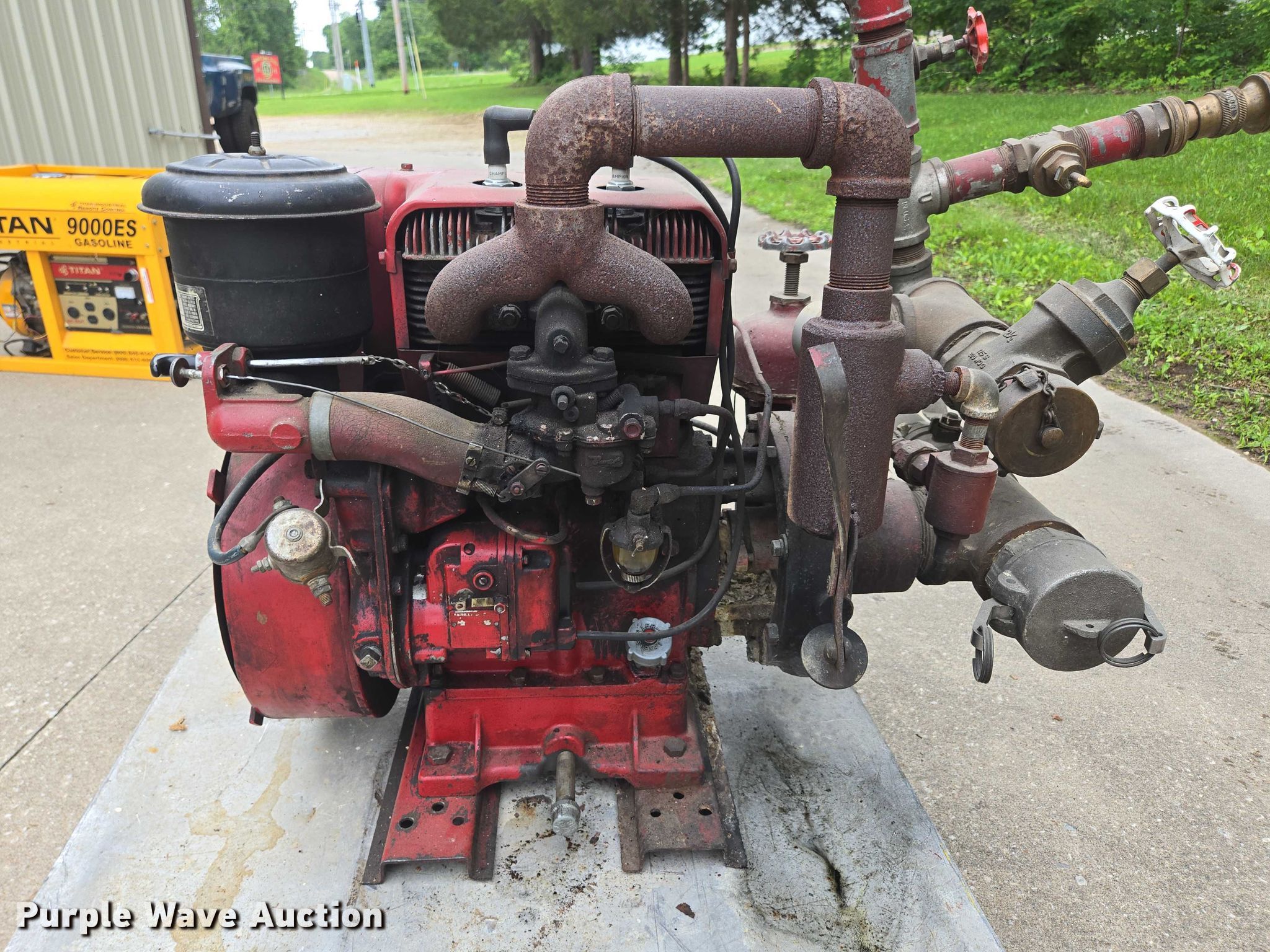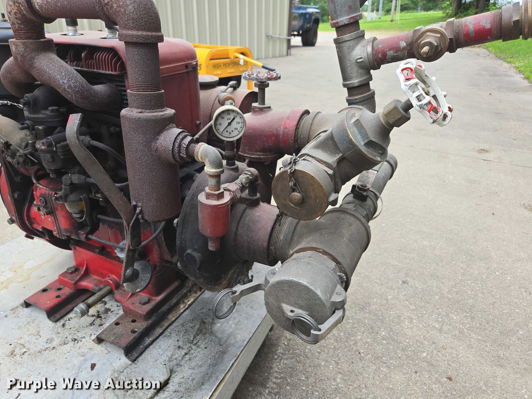 American Fire pump. Size: 4 X D, Type: P T B L. Engine Wisconsin TJD, Serial: 5141304, Cylinders: 2, Fuel type: Gas. Notes Cart not included, Possible engine issues, turns over but will not start. Central Taney Fire Protection. Taneyville, MO 65759