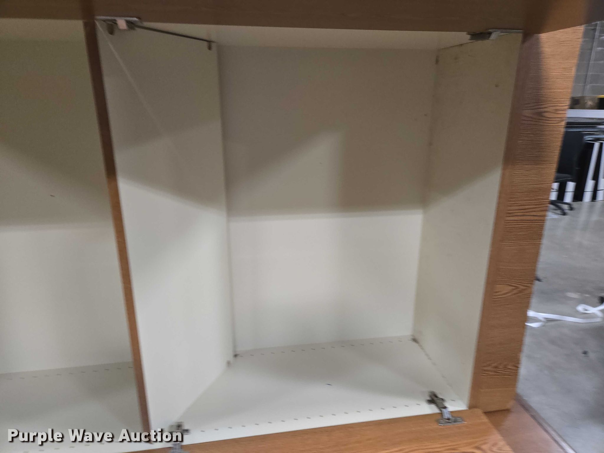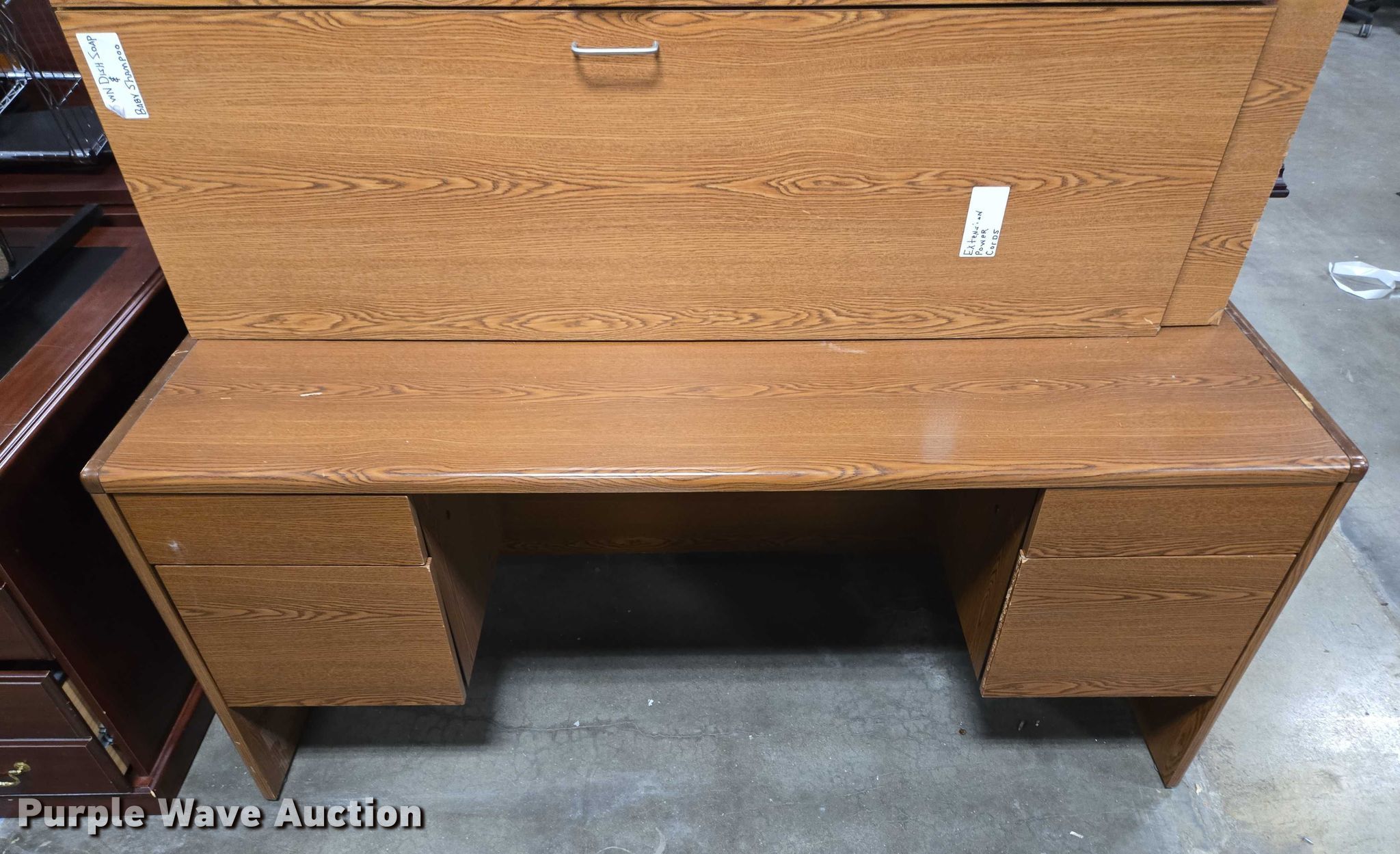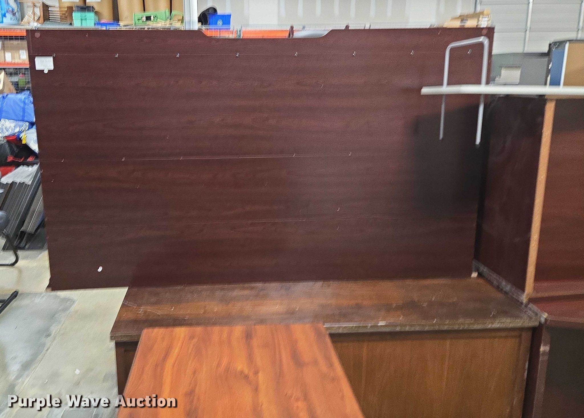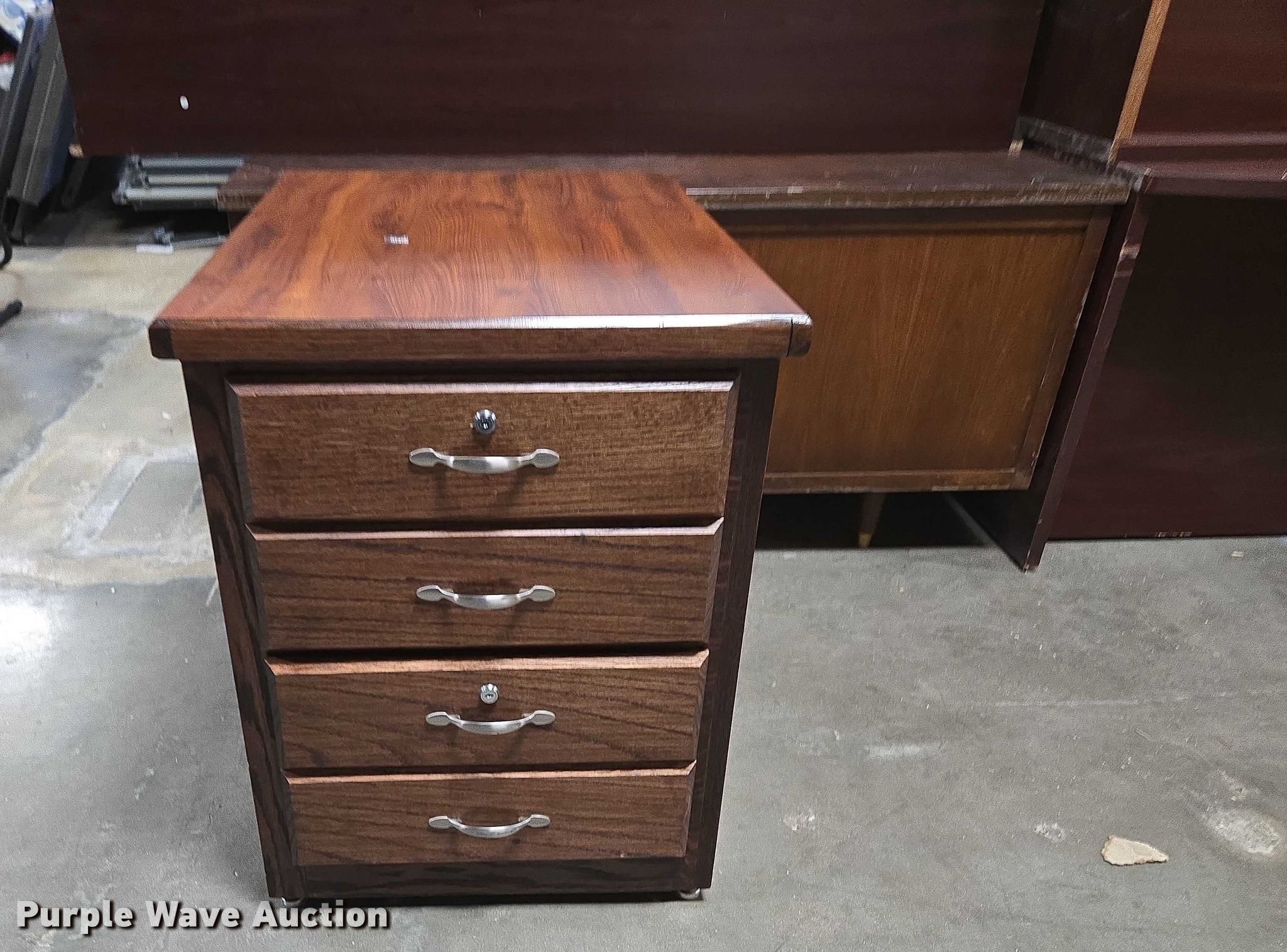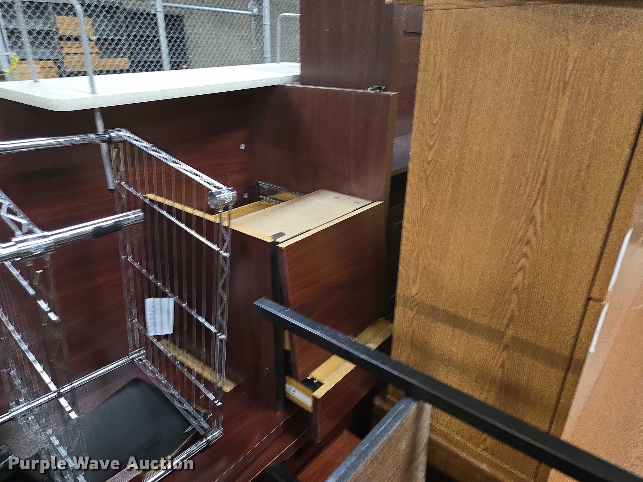 Purple Wave is selling a used Furniture in Arkansas. This item is a Furniture with the following: (5) desks, (3) Cabinets, (3) Shelves, Filing pocket
