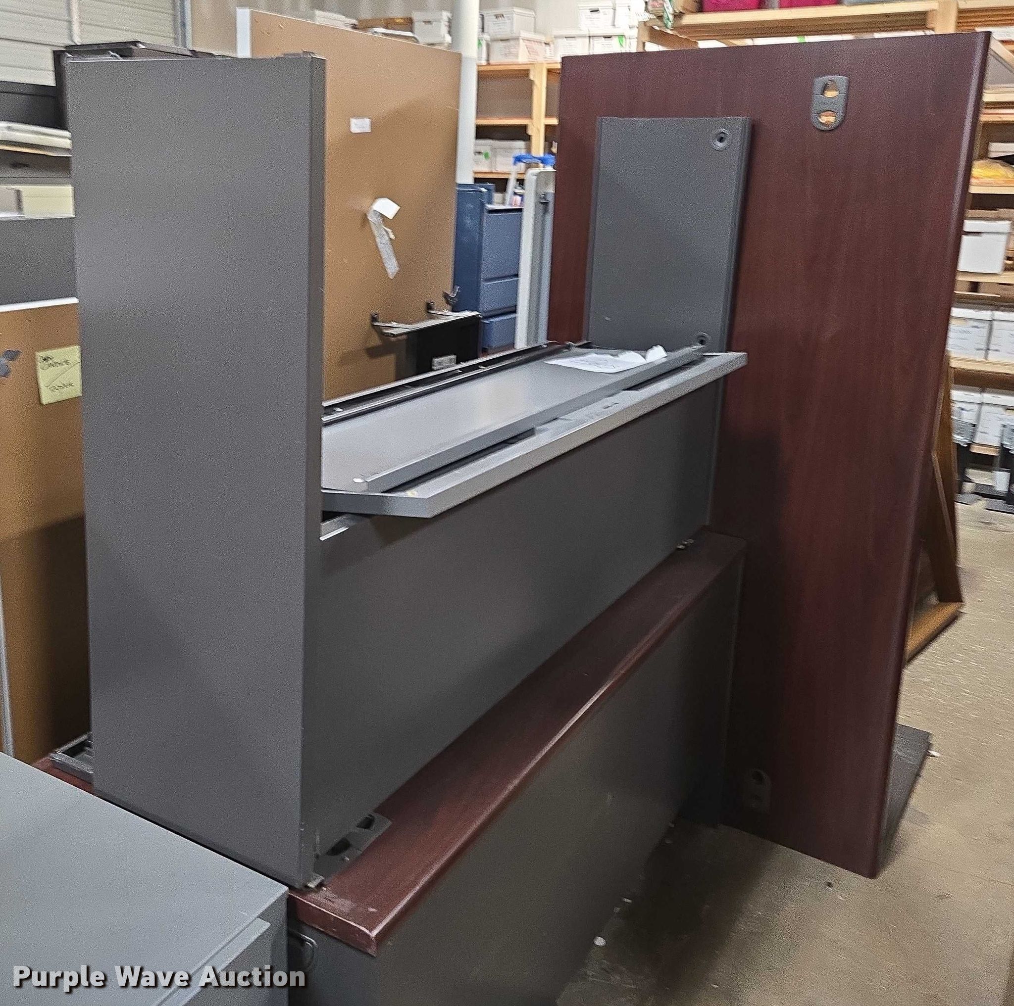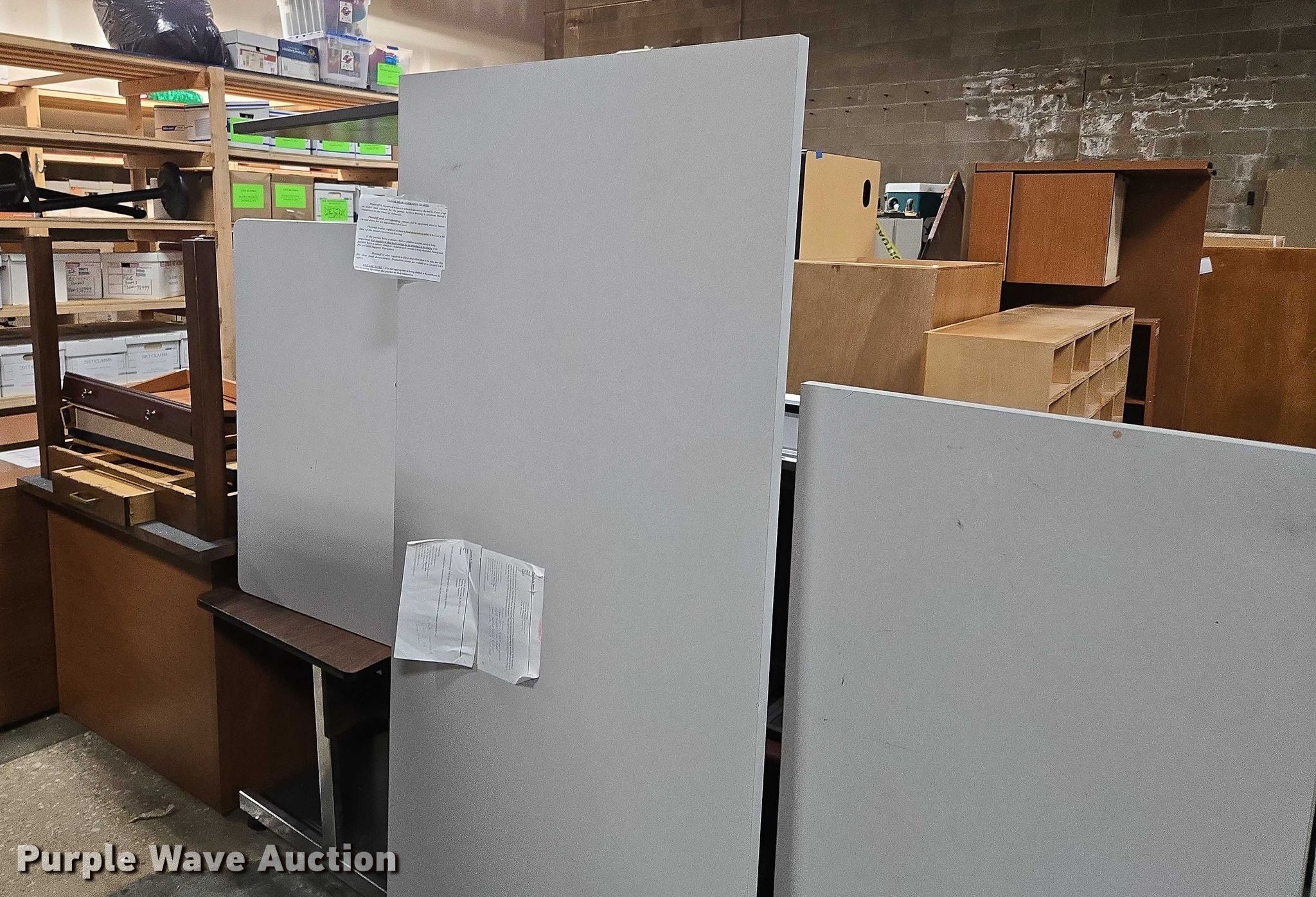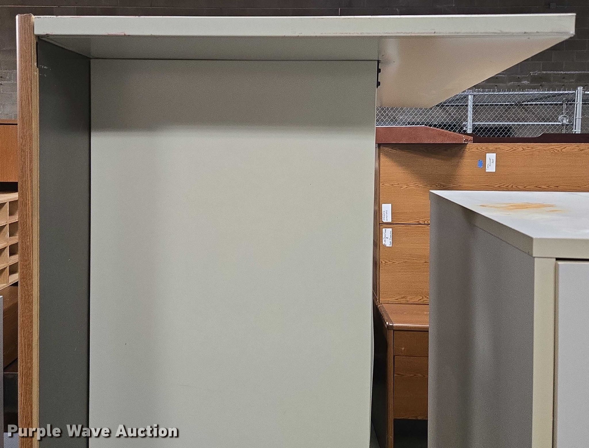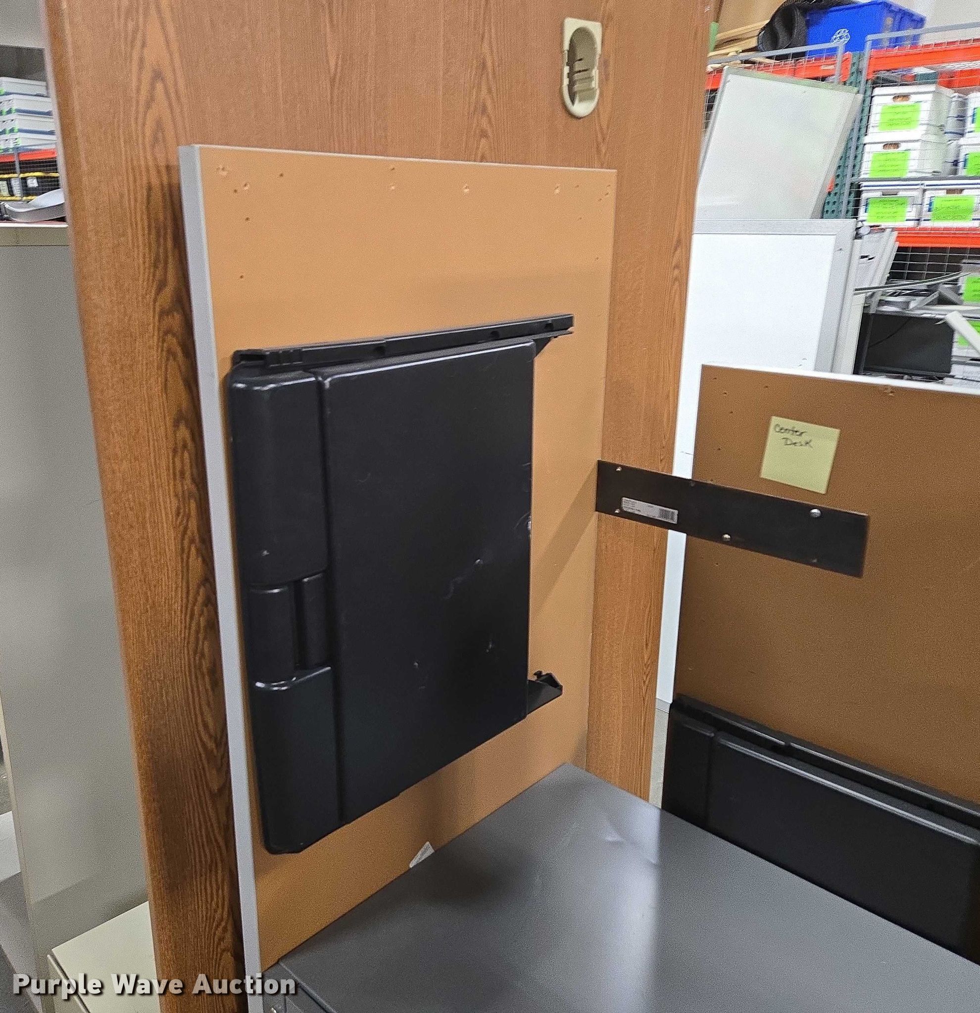 Purple Wave is selling a used Furniture in Arkansas. This item is a Furniture with the following: Approximately 10 desks, Approximately 3 storage desks, Additional items