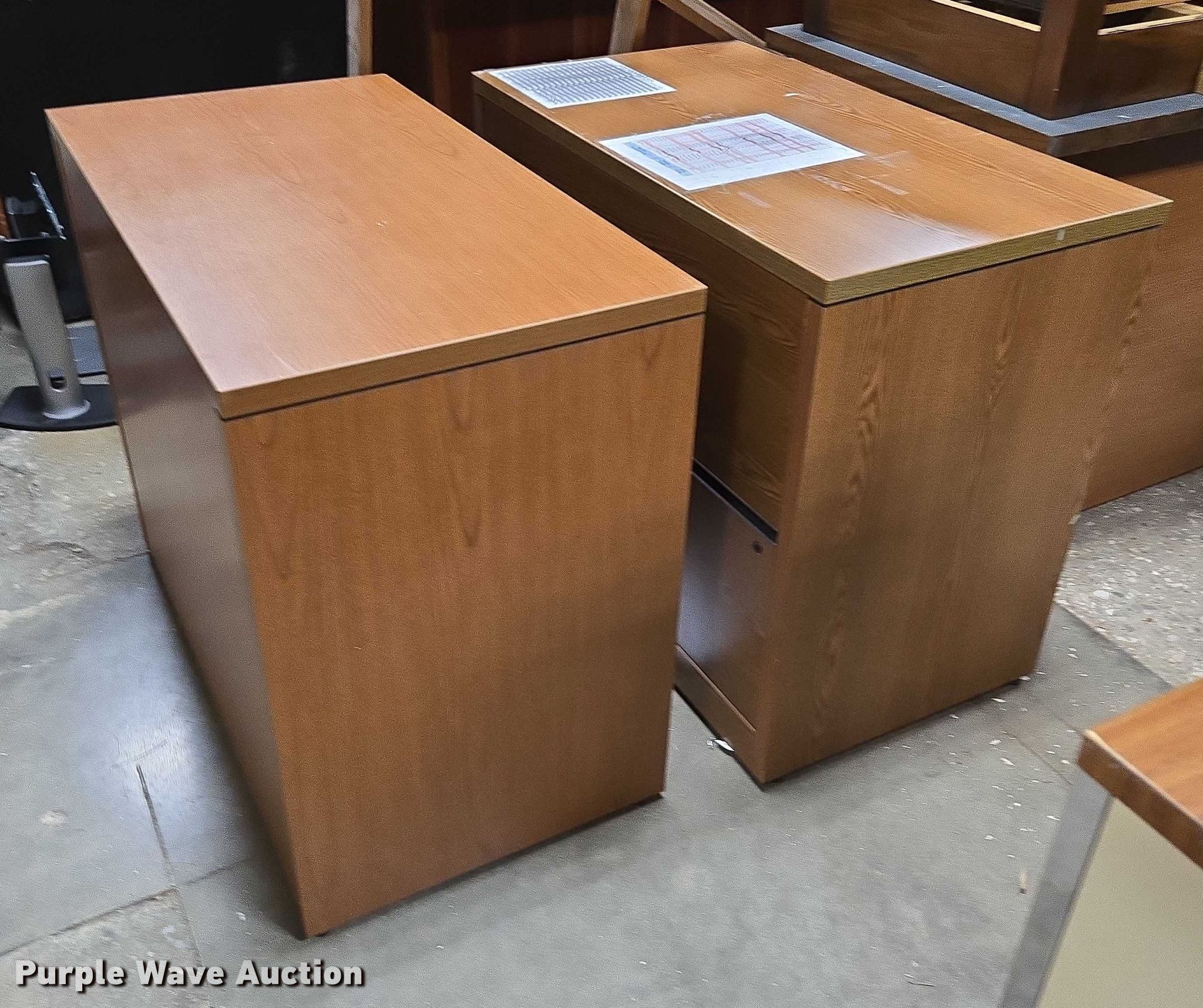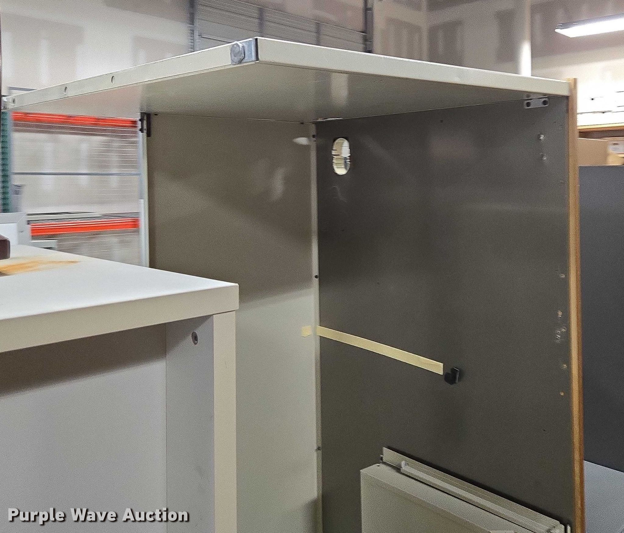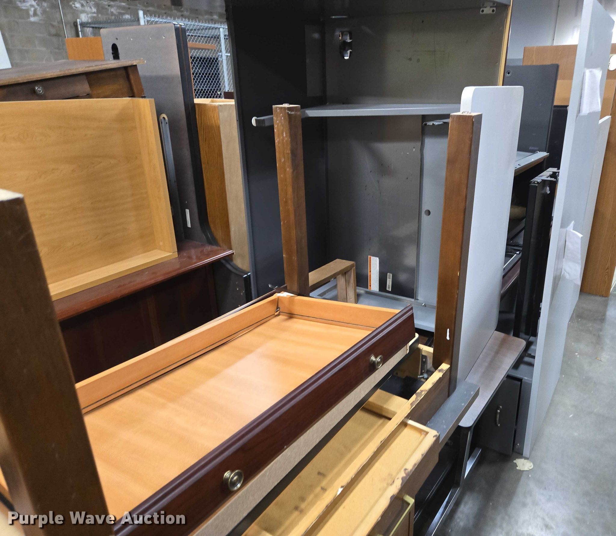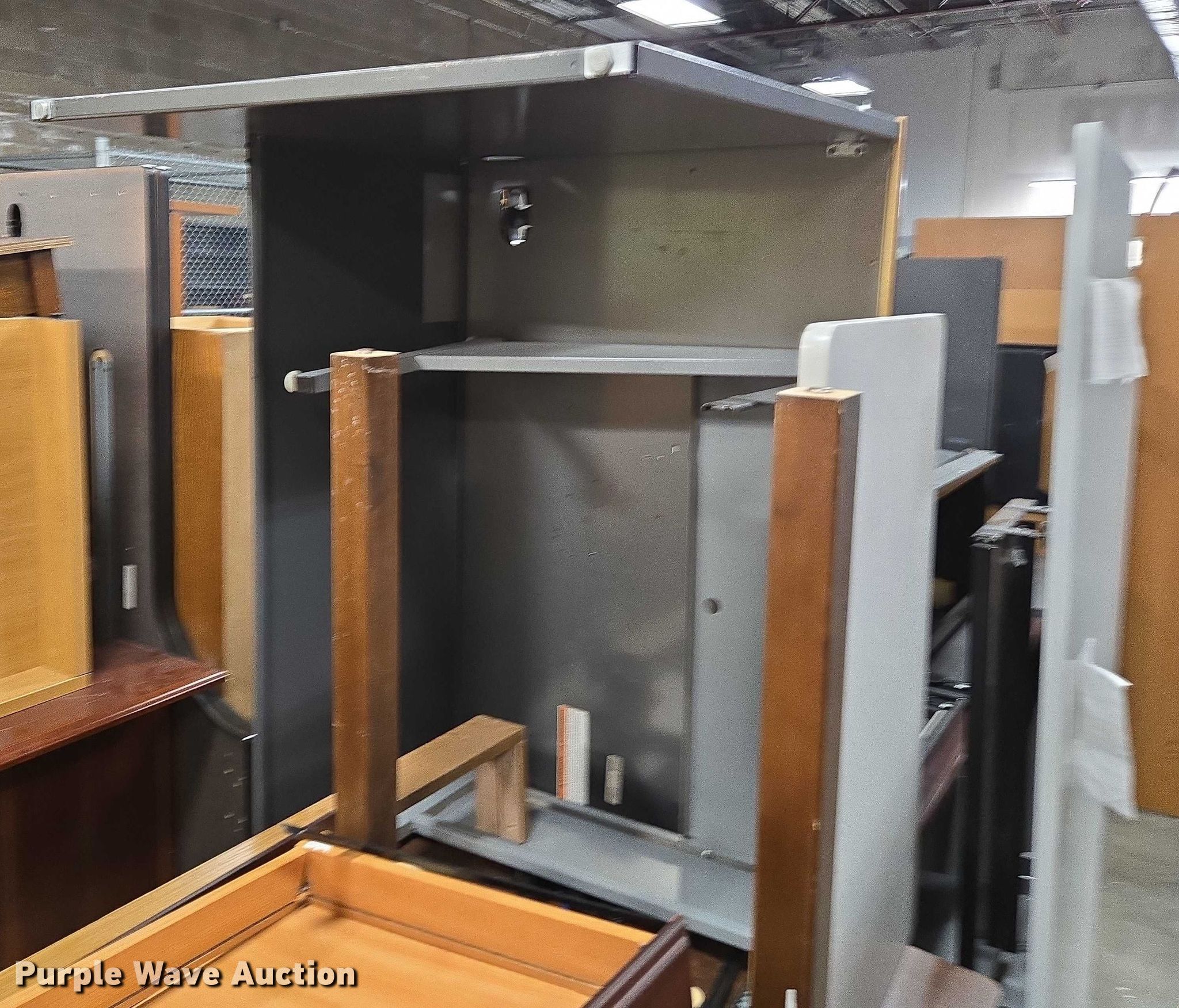 Purple Wave is selling a used Furniture in Arkansas. This item is a Furniture with the following: Approximately 10 desks, Approximately 3 storage desks, Additional items