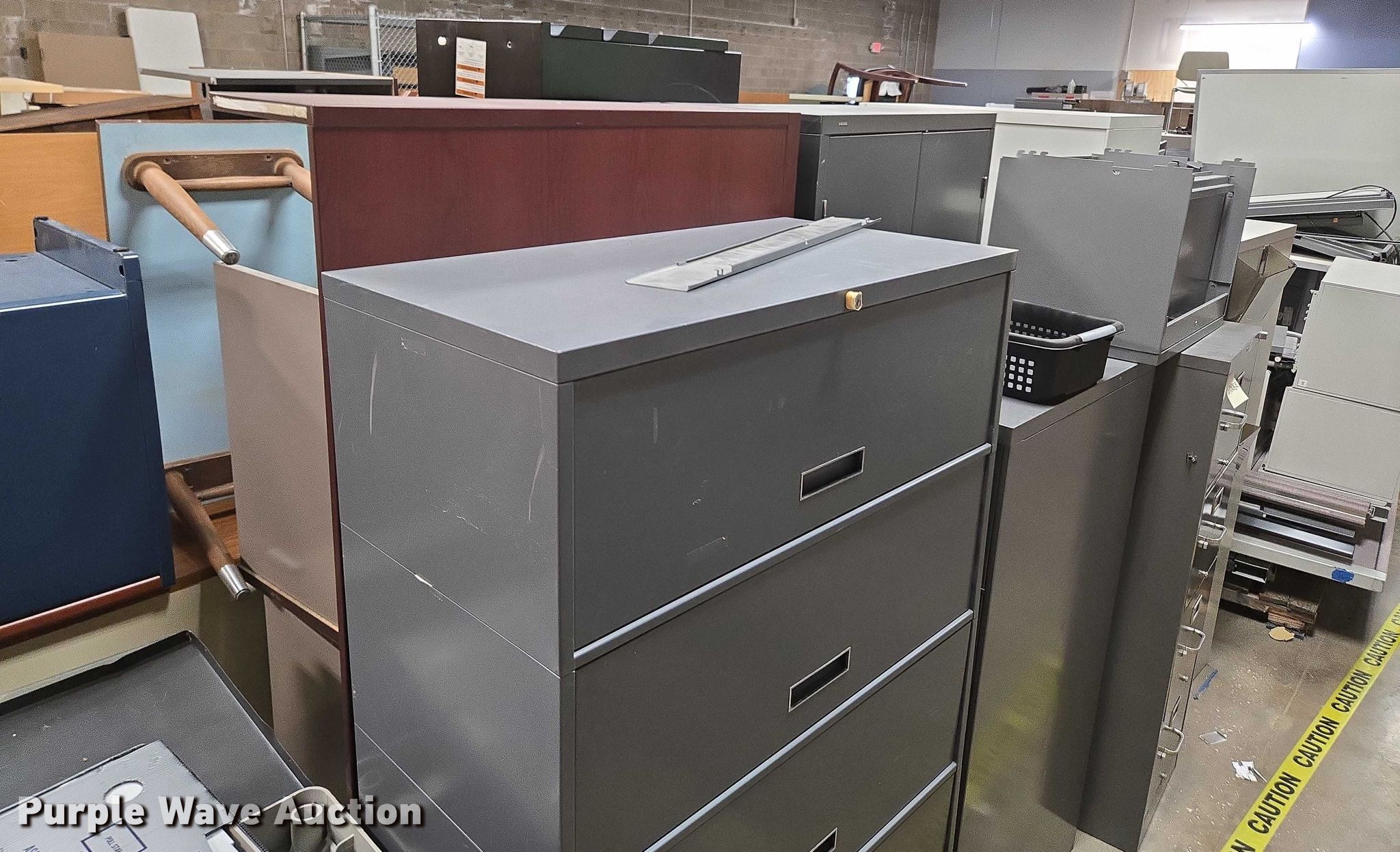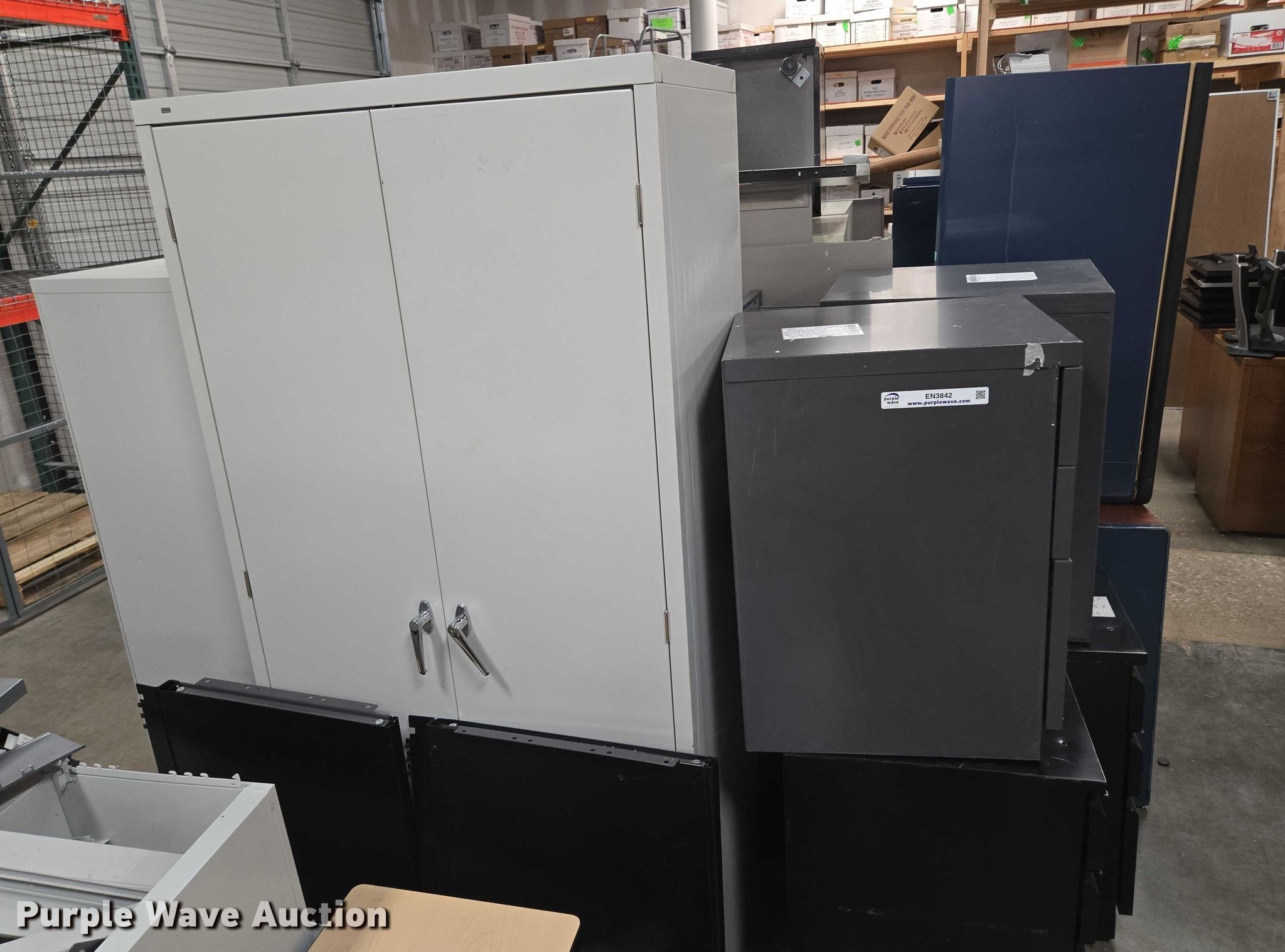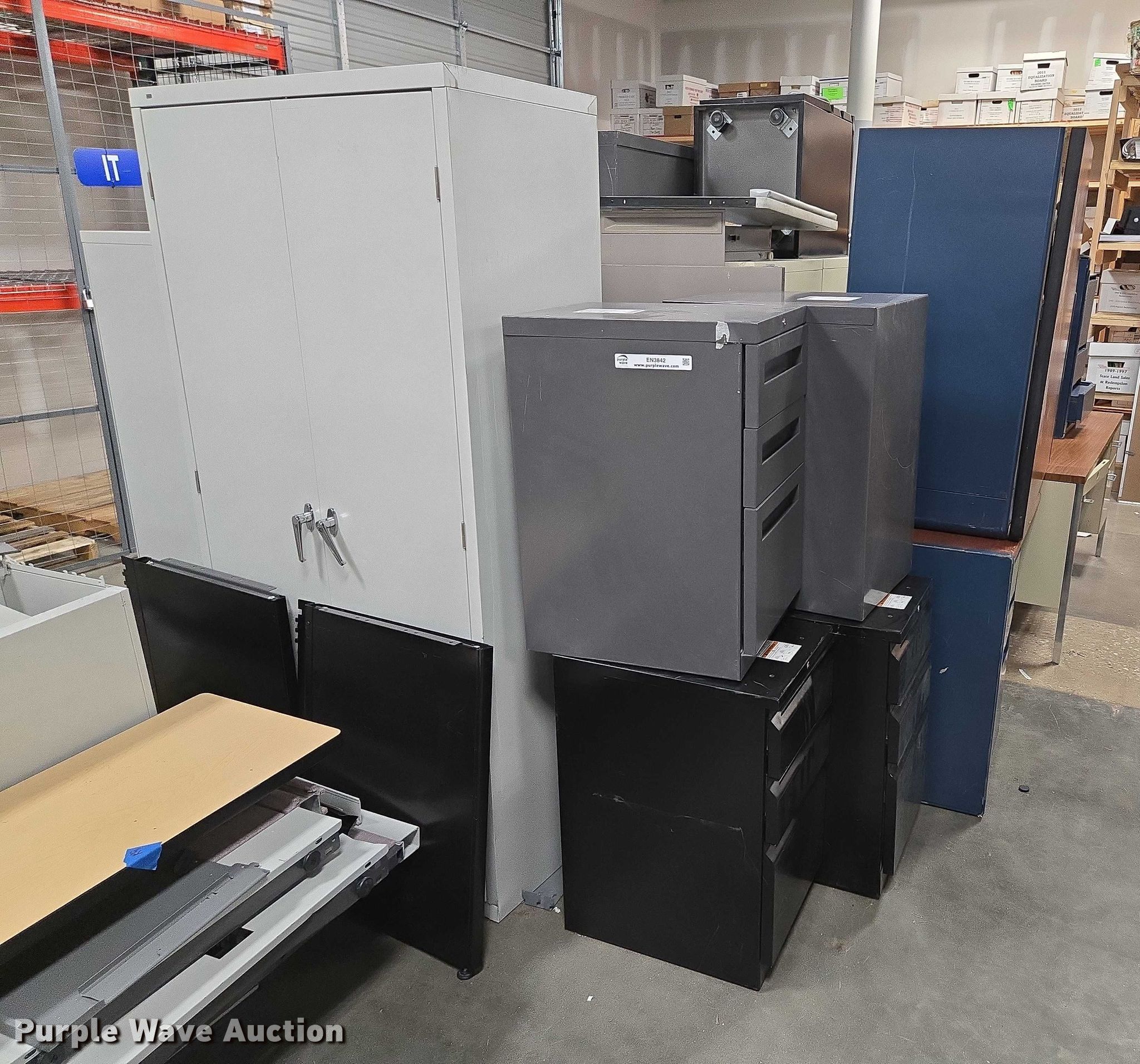 Purple Wave is selling a used Furniture in Arkansas. This item is a Furniture with the following: (3) storage cabinets, Approximately 11 filing cabinets, Approximately 7 desks, Additional Items