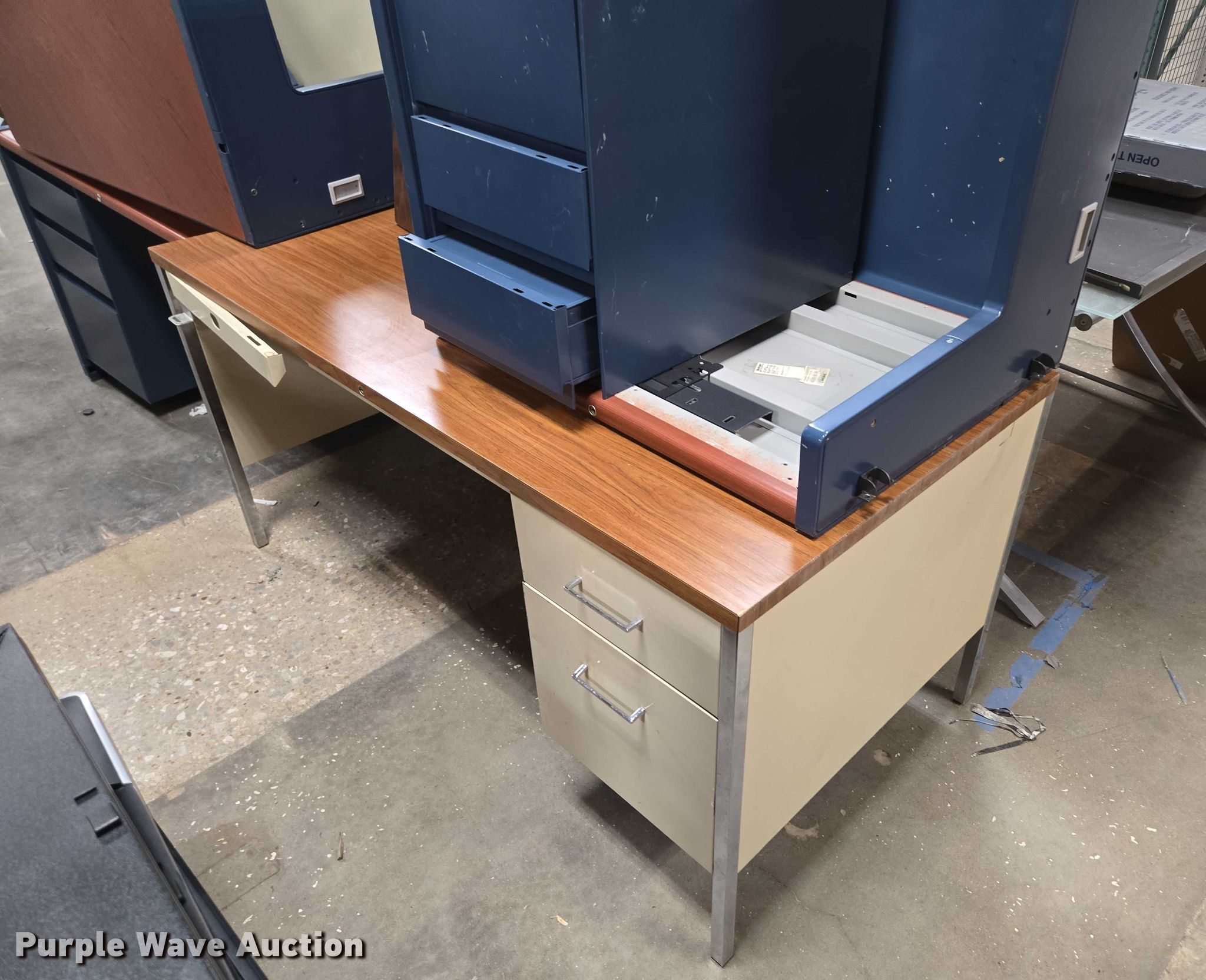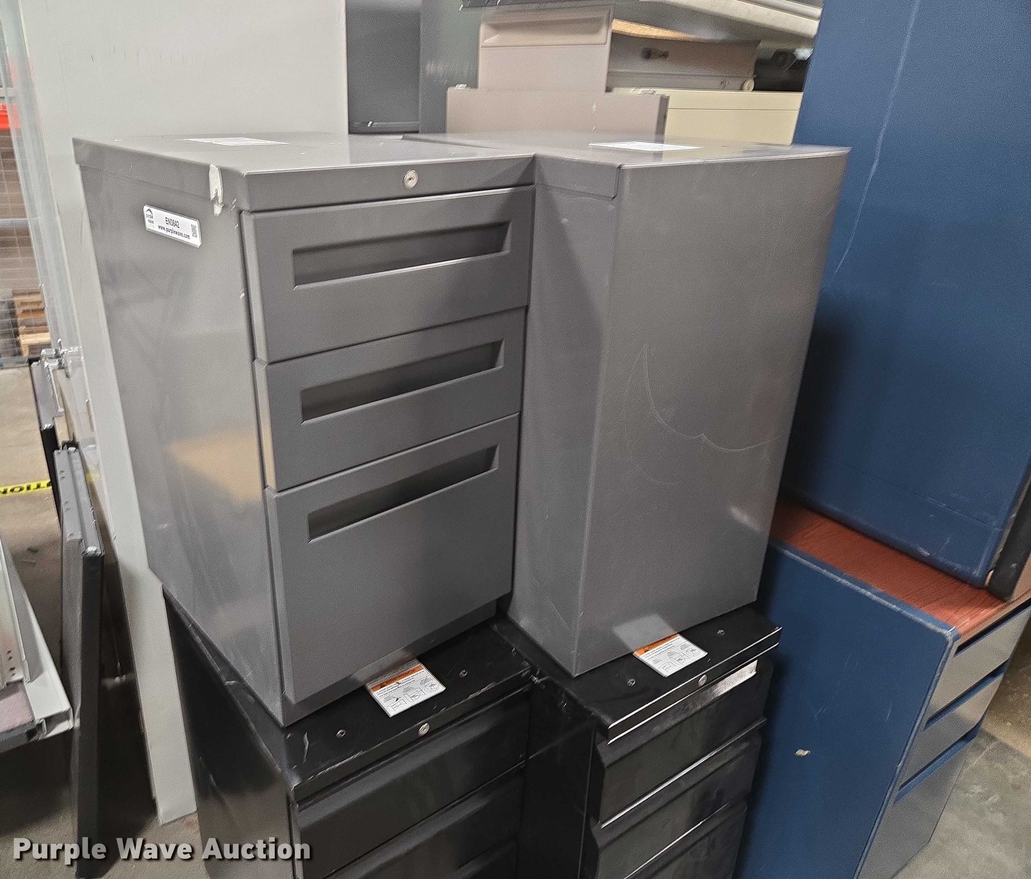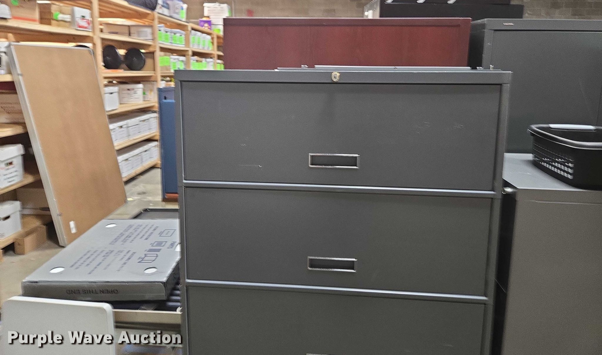 Purple Wave is selling a used Furniture in Arkansas. This item is a Furniture with the following: (3) storage cabinets, Approximately 11 filing cabinets, Approximately 7 desks, Additional Items