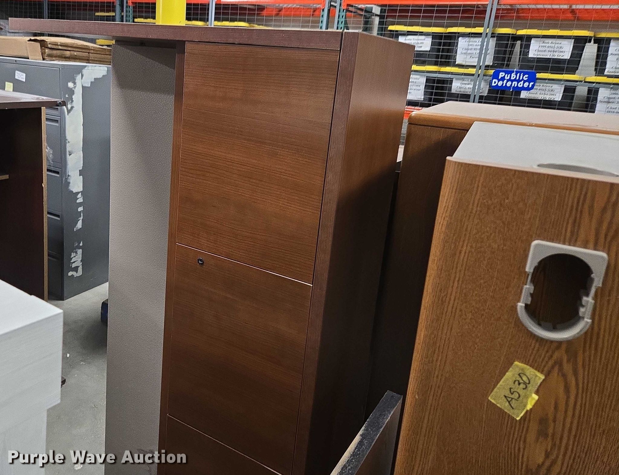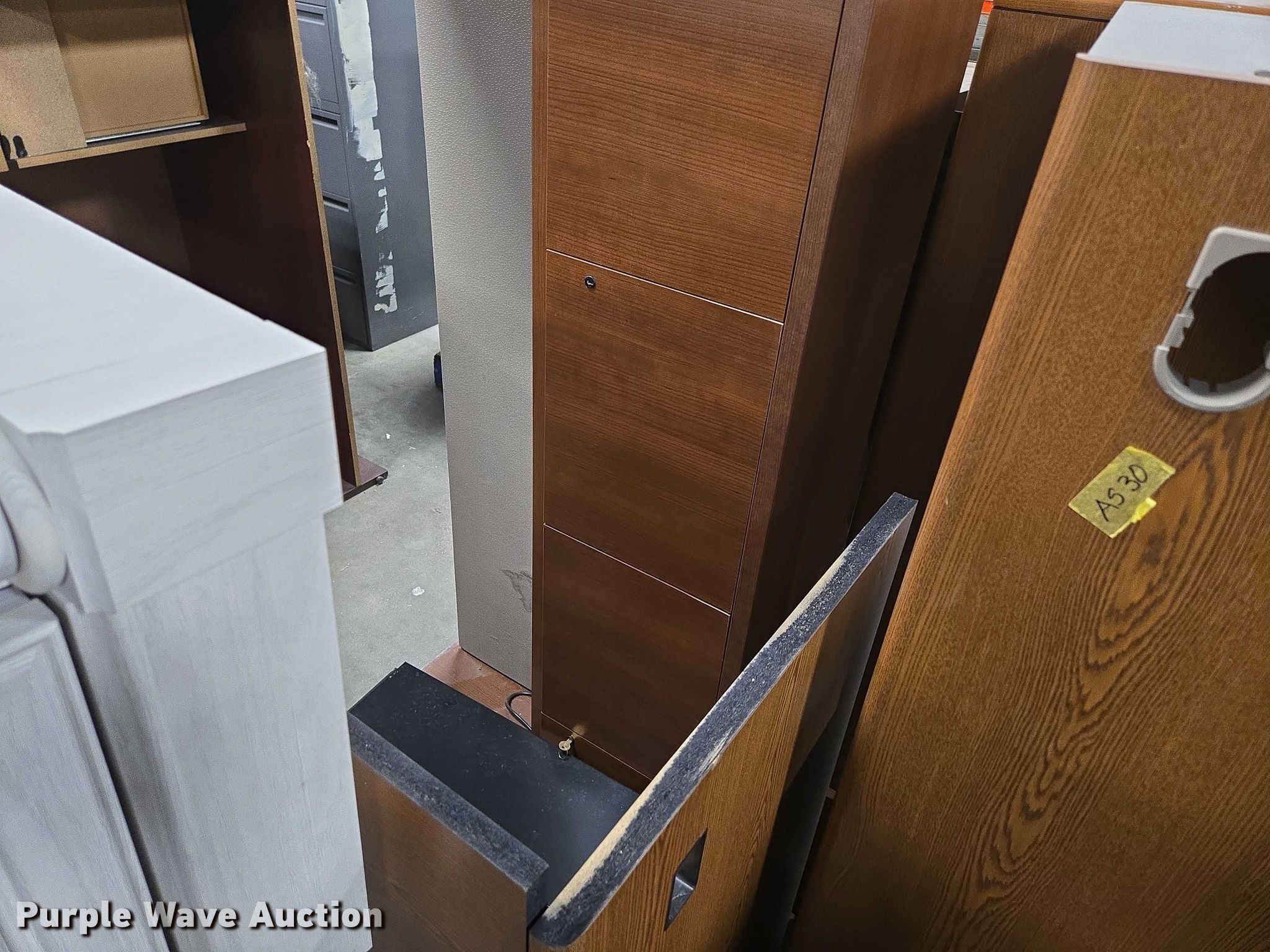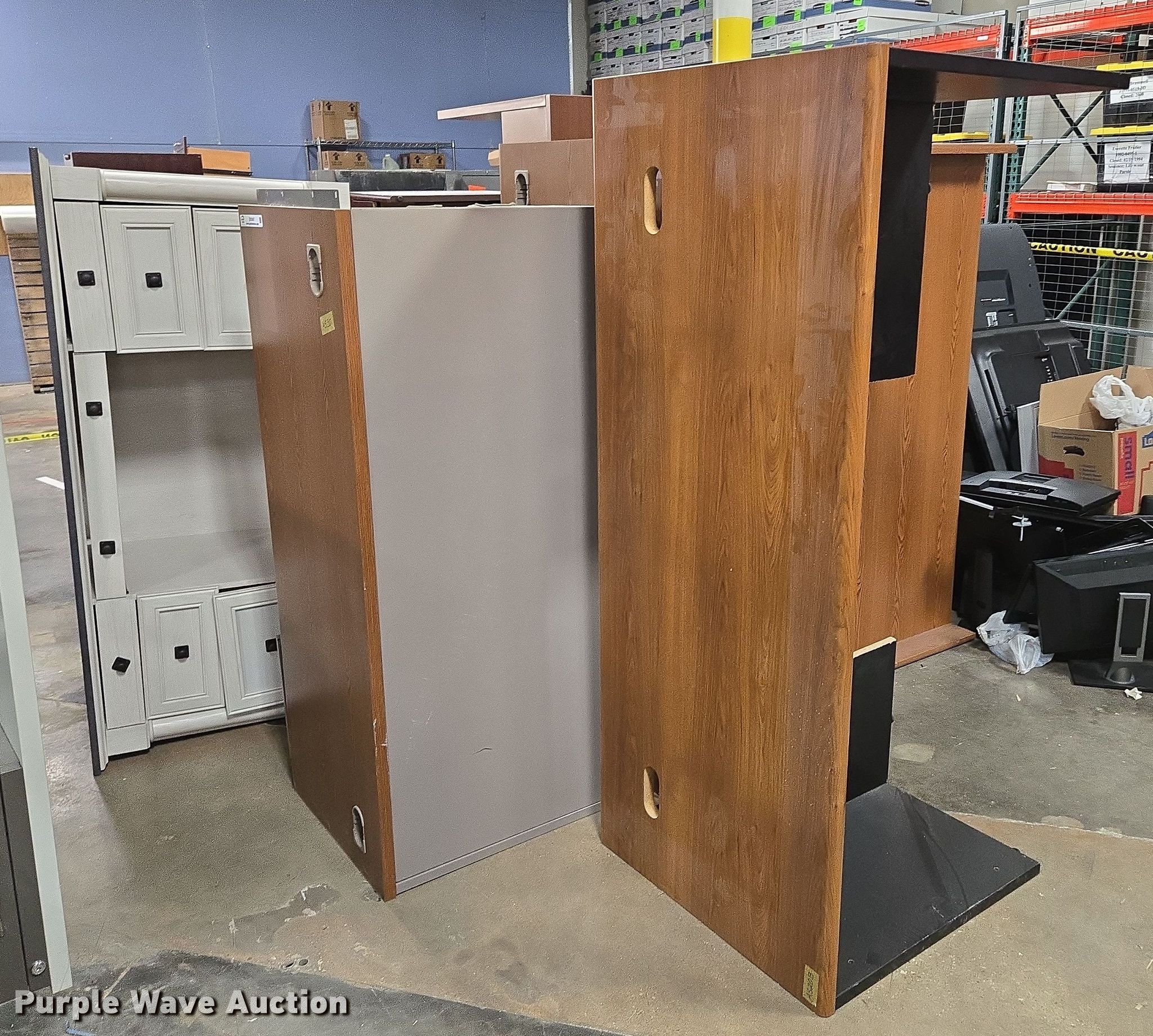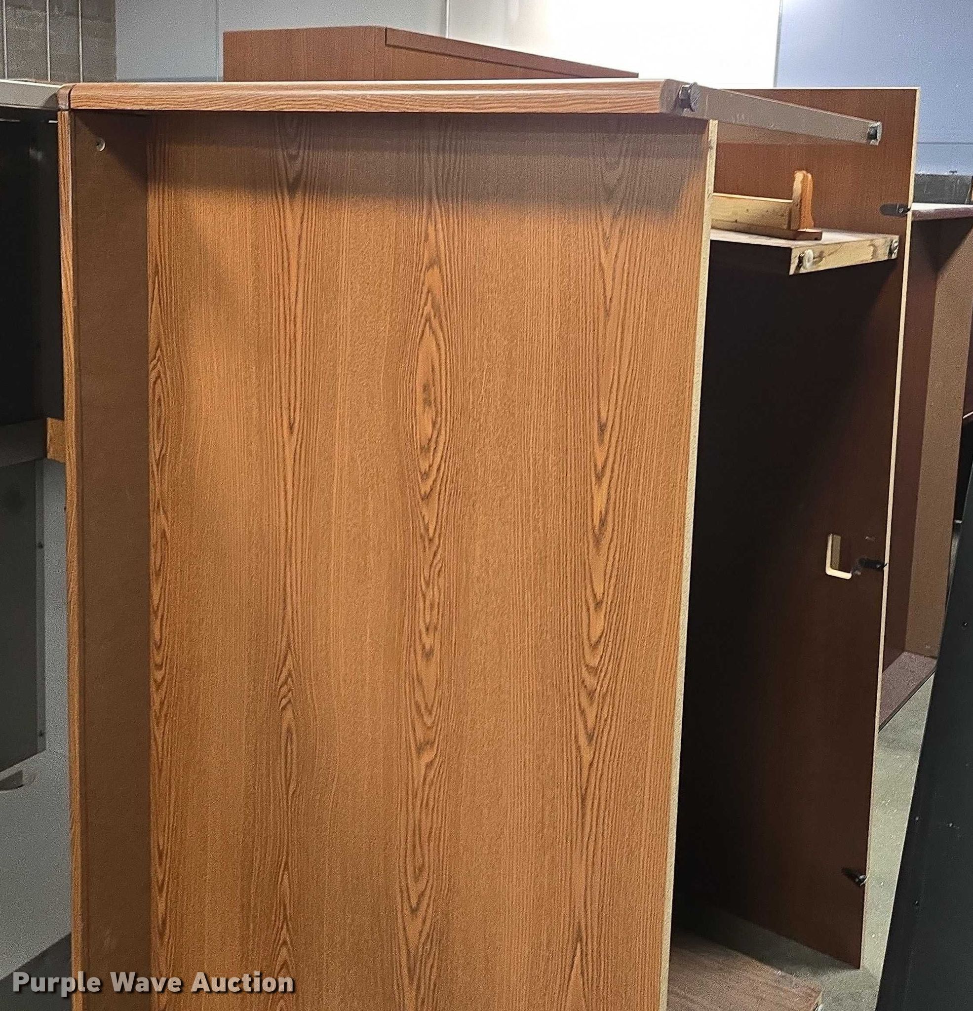 Purple Wave is selling a used Furniture in Arkansas. This item is a Furniture with the following: Approximately 7 desks, Storage cabinet, Desk top