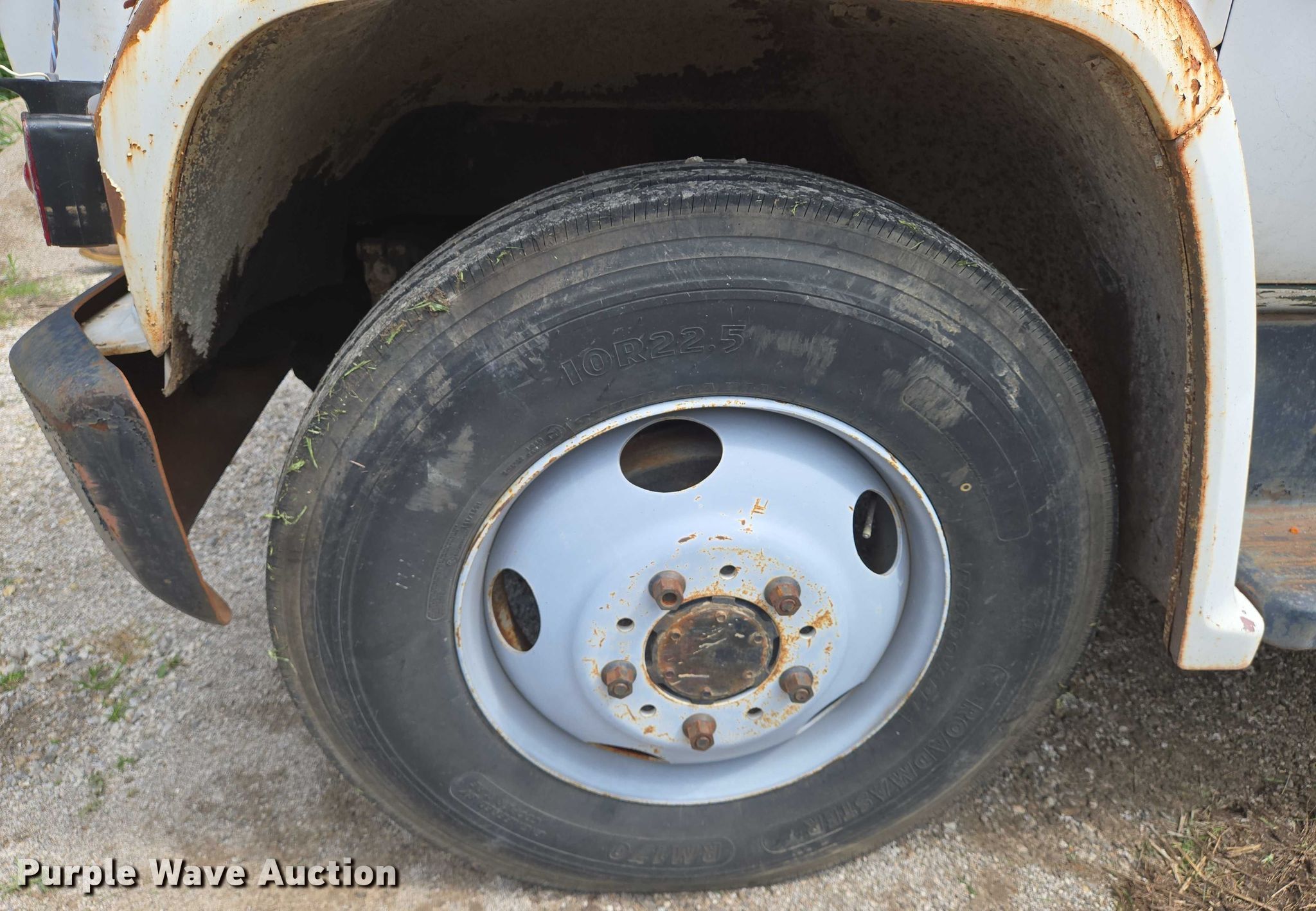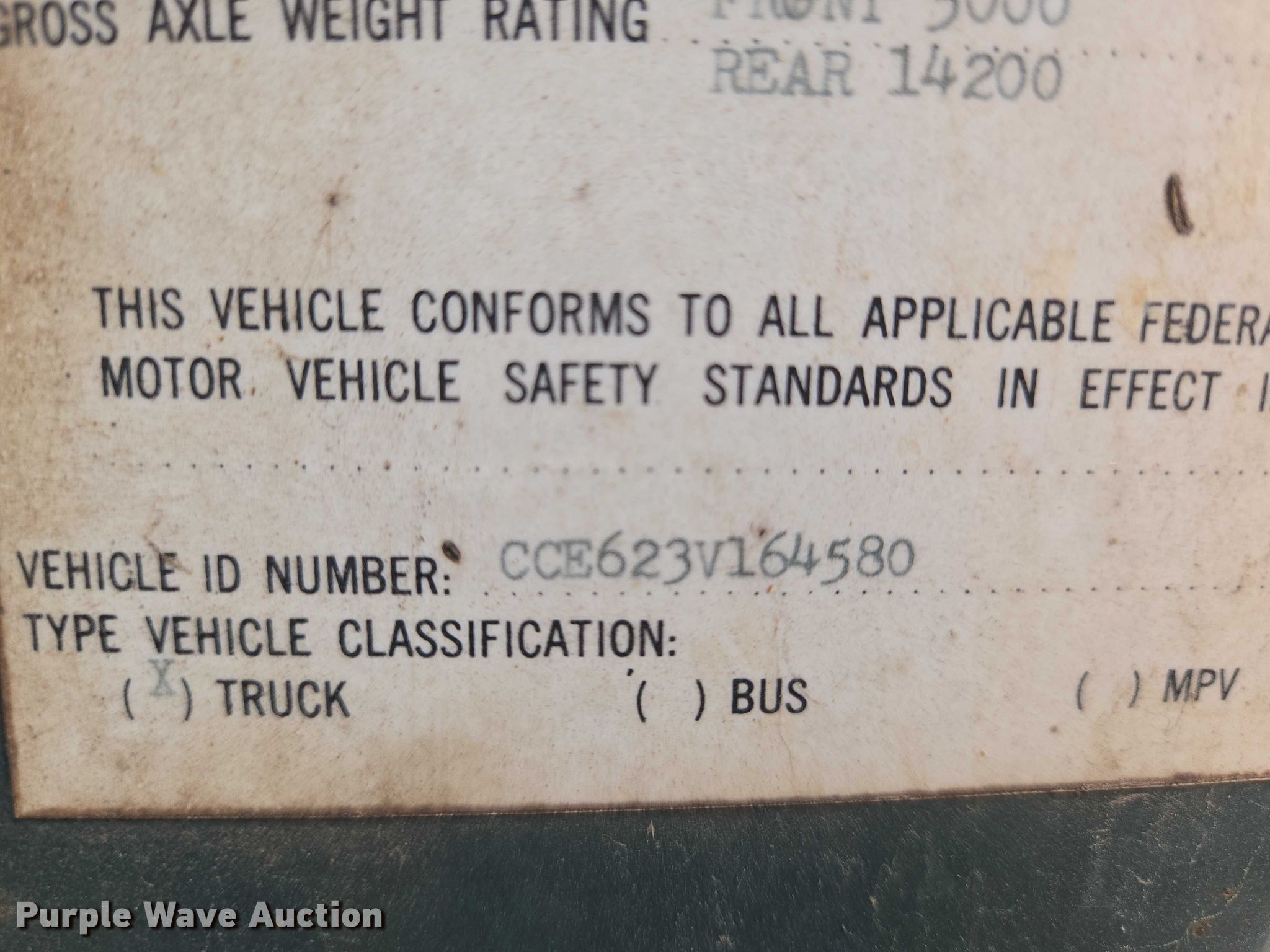 1973 Chevrolet C60 dump flatbed truck. Miles: 19,115 on odometer Actual miles unknown, VIN: CCE623V164580. Engine Cylinders: 8, Fuel type: Gas. Transmission Manual, Speed: 4. Chassis Axles: Single, Suspension: Spring, Brakes: Hydraulic, PTO, GVWR: 19,000 lbs. Interior Heat. Features Dump flatbed 15' L x 94" W, Ram: Single, Removable sides. Tires Size: 10R22.5. Notes Rear window glass missing, Non-operational side windows, handles missing Windows stuck down, Drivers side front spindle damage, Non-operational brakes Unit must be towed or hauled, Rust damage, hole in floorboard. Kansas title. Mileage has not been verified. Exempt will be written in the odometer disclosure on the title. Title distribution may be delayed up to 14 days from verification of funds. Burden, KS 67019