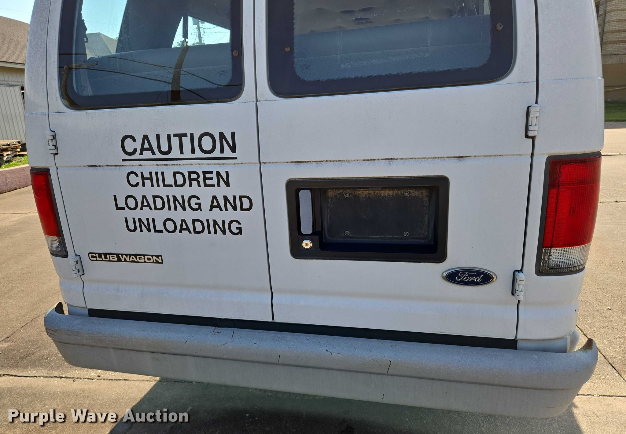 1998 Ford Club Wagon XL van. Miles: 88,252 on odometer, VIN: 1FBSS31L2WHC07761. Engine Displacement: 5.4L V8 SOHC, Cylinders: 8, Fuel type: Gas. Transmission Automatic. Interior AC, Heat. Tires Size: 245/75R16. Notes Non-operational passenger side rear door, Rear door issues, will not open, Non-operational AC. Oklahoma title. Title distribution may be delayed up to 14 days from verification of funds. United Community Action Program Inc.. Pawnee, OK 74058