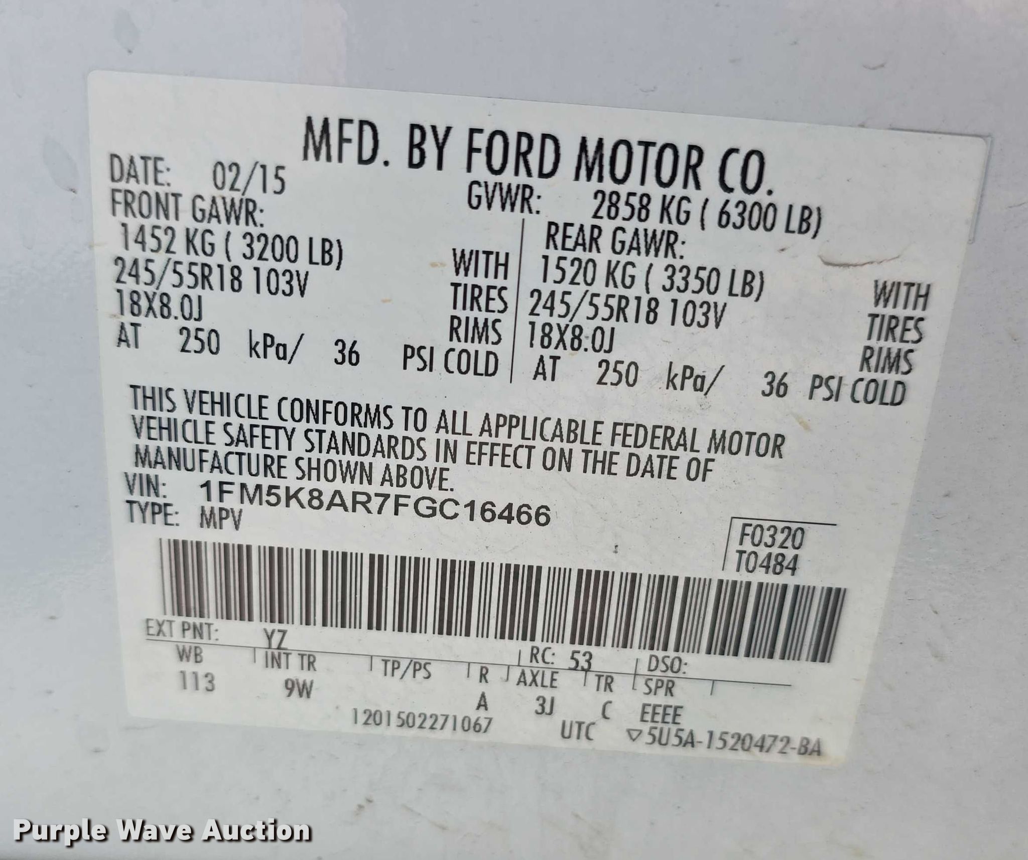 • VIN: 1FM5K8AR7FGC16466