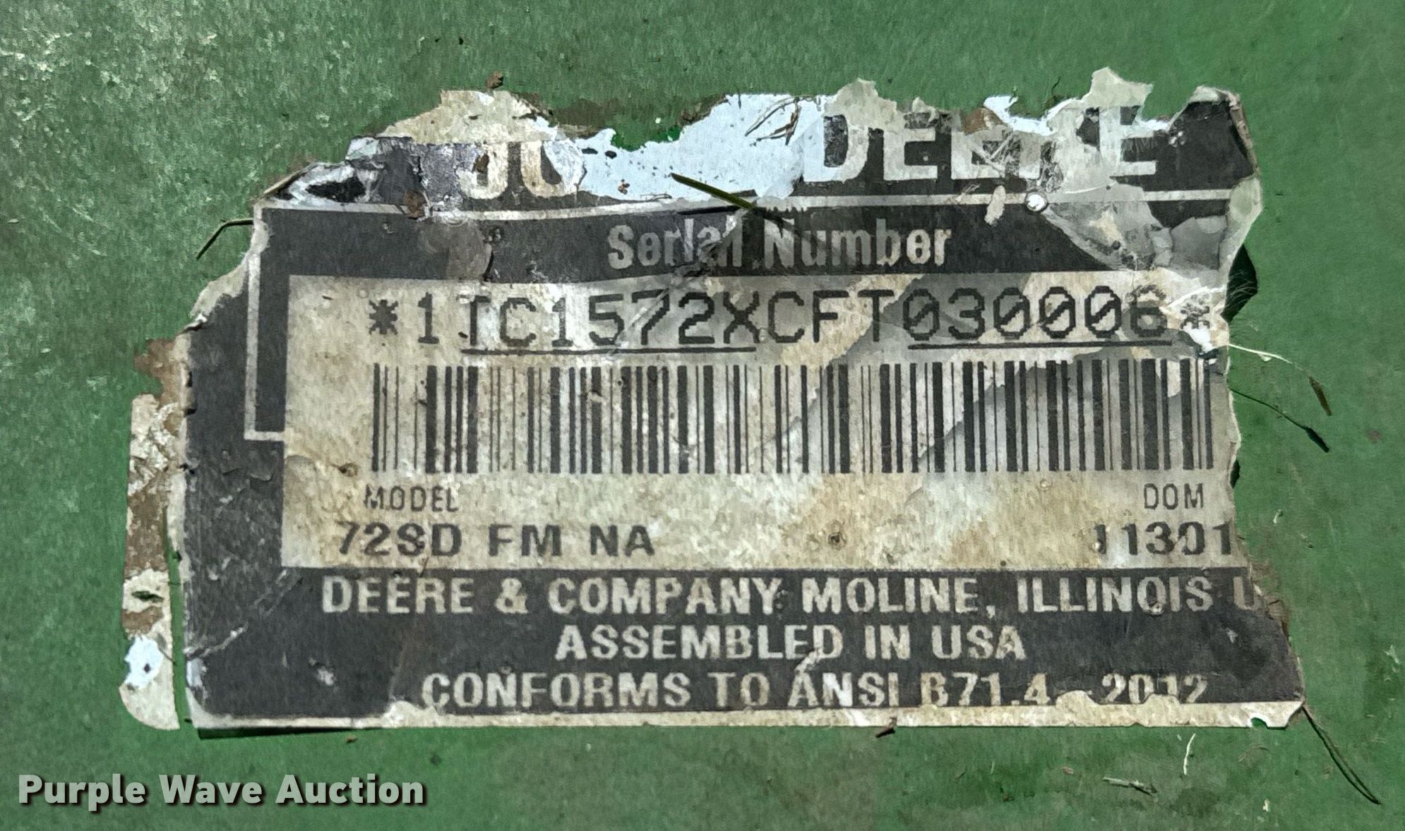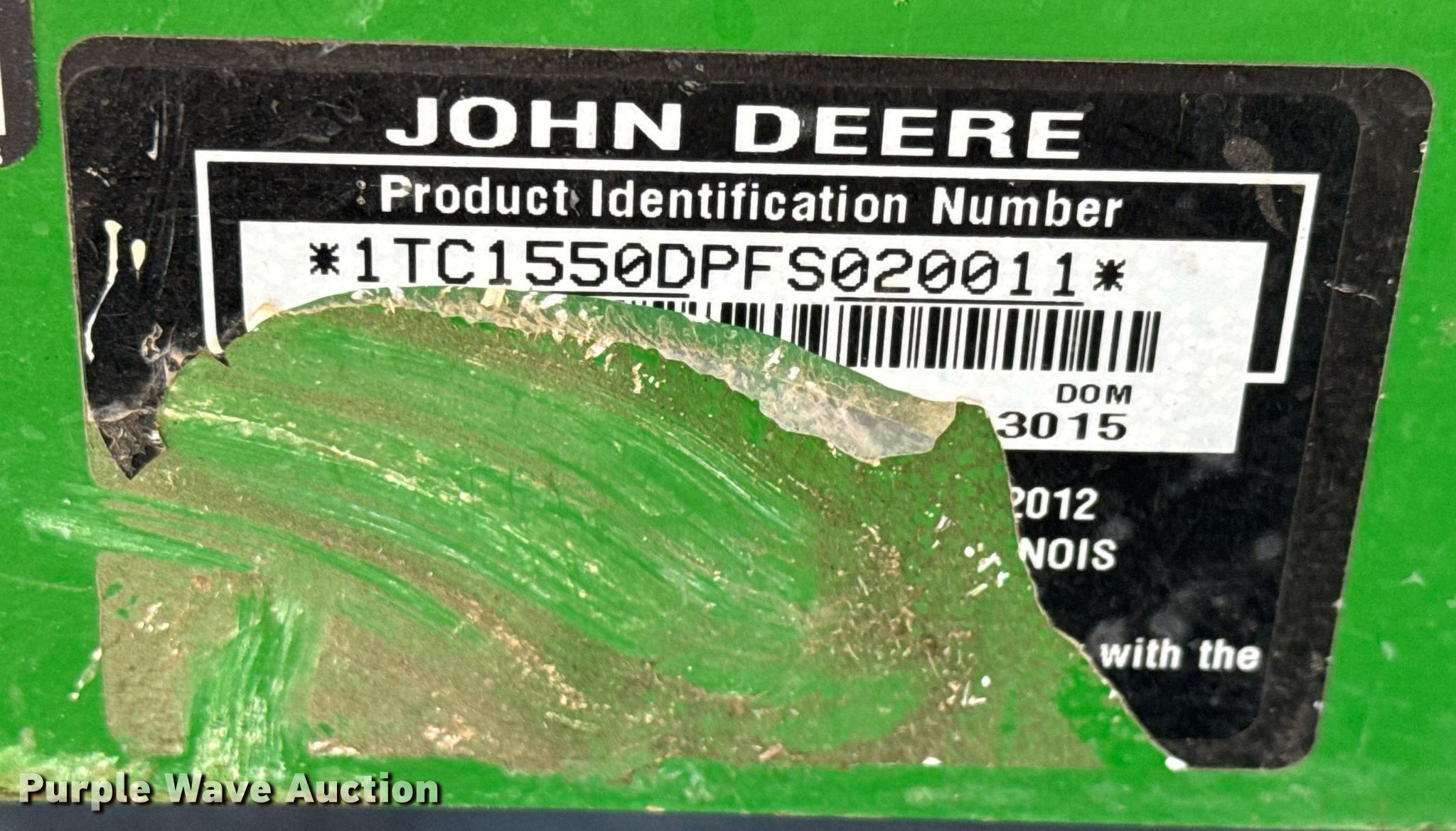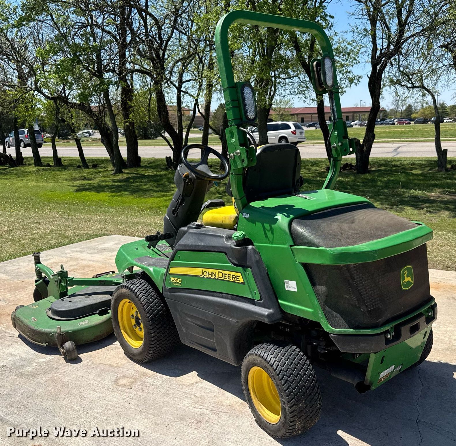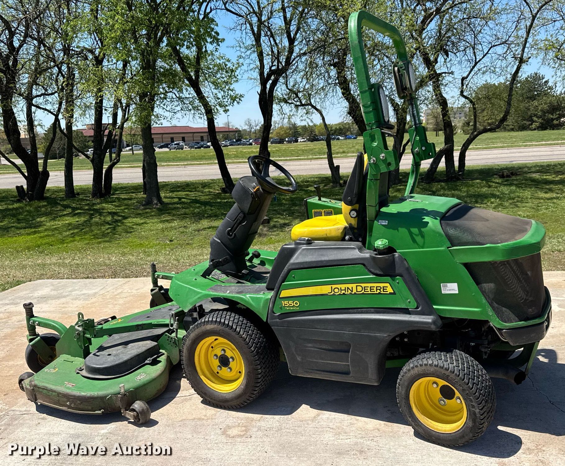 Purple Wave is selling a used Commercial Turf Mower in Kansas. This item is a John Deere 1550 Terrain Cut lawn mower with the following: Hours: 1,723 on meter, Cutting width: 75", Serial: 1TC1550DPFS020011