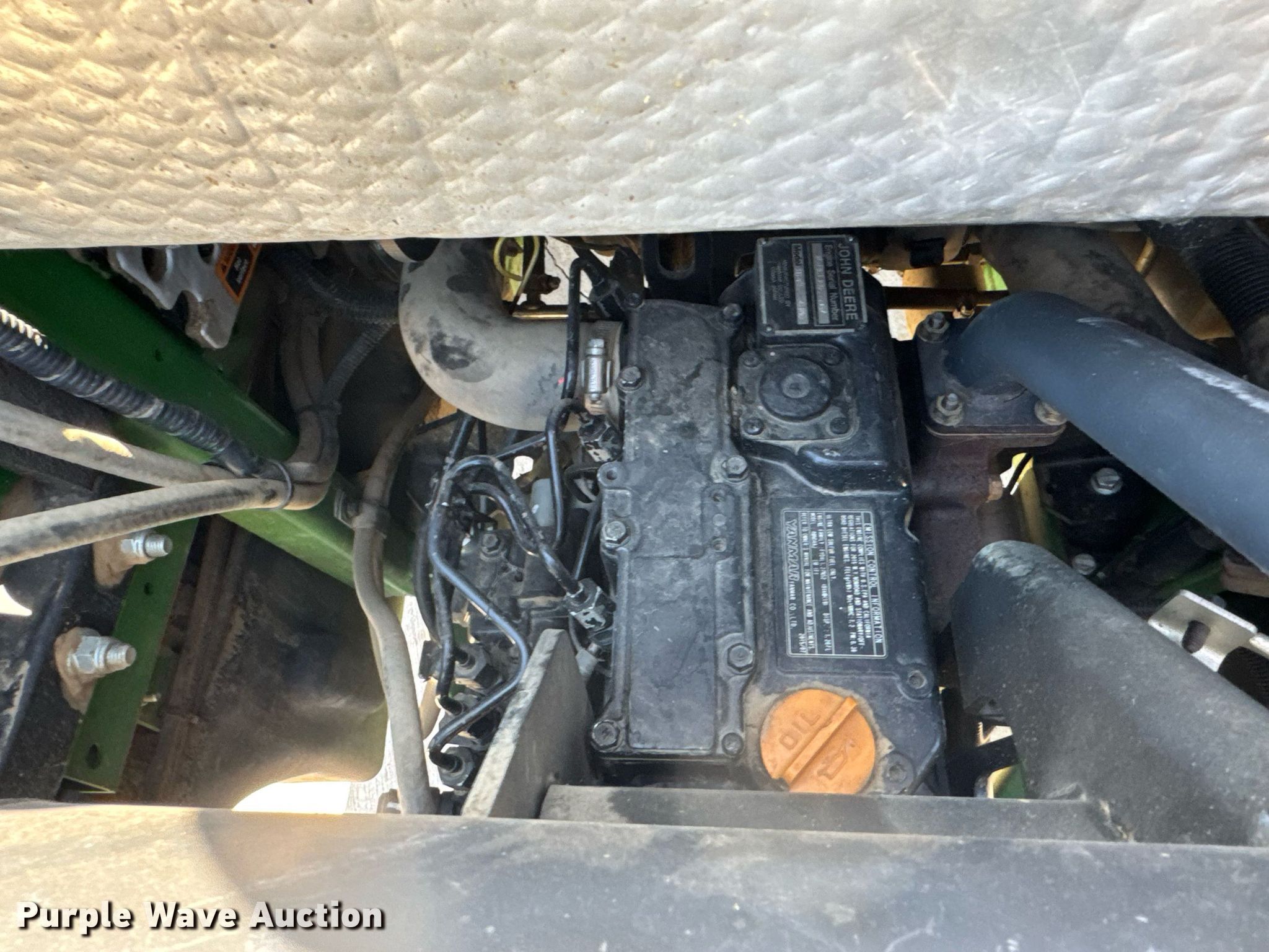 John Deere 1550 Terrain Cut lawn mower. Hours: 1,723 on meter, Cutting width: 75", Serial: 1TC1550DPFS020011. Engine Yanmar, Displacement: 1.267L, Cylinders: 3, Fuel type: Diesel. Transmission Hydrostatic. Chassis Four wheel drive. Operators station OROPS. Features John Deere 72SD FM SA, Hydraulic front deck lift, Differential lock. Tires Front: 23x10.50-12, Rear: 18x8.50-10. Trinity Academy. Wichita, KS 67206