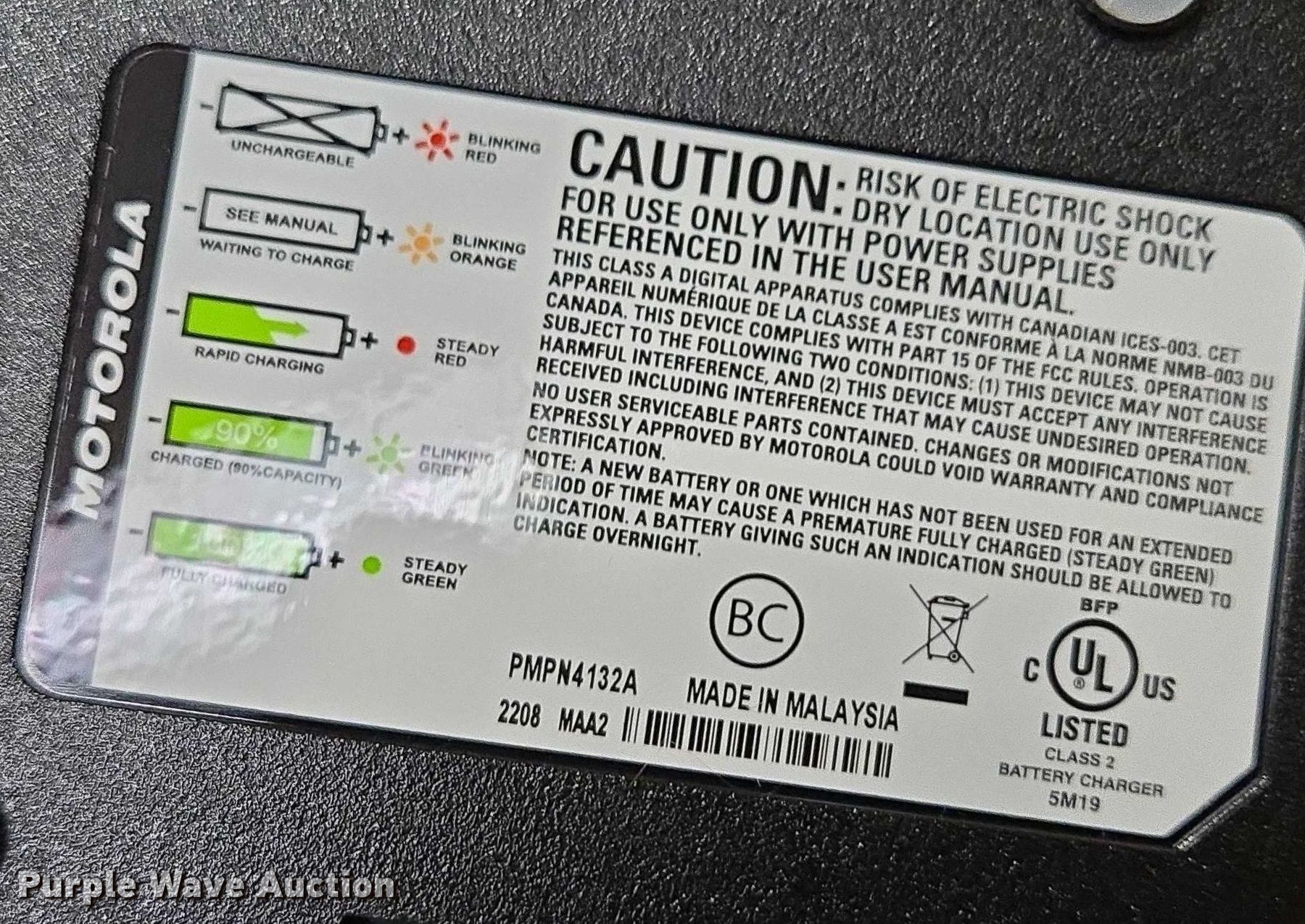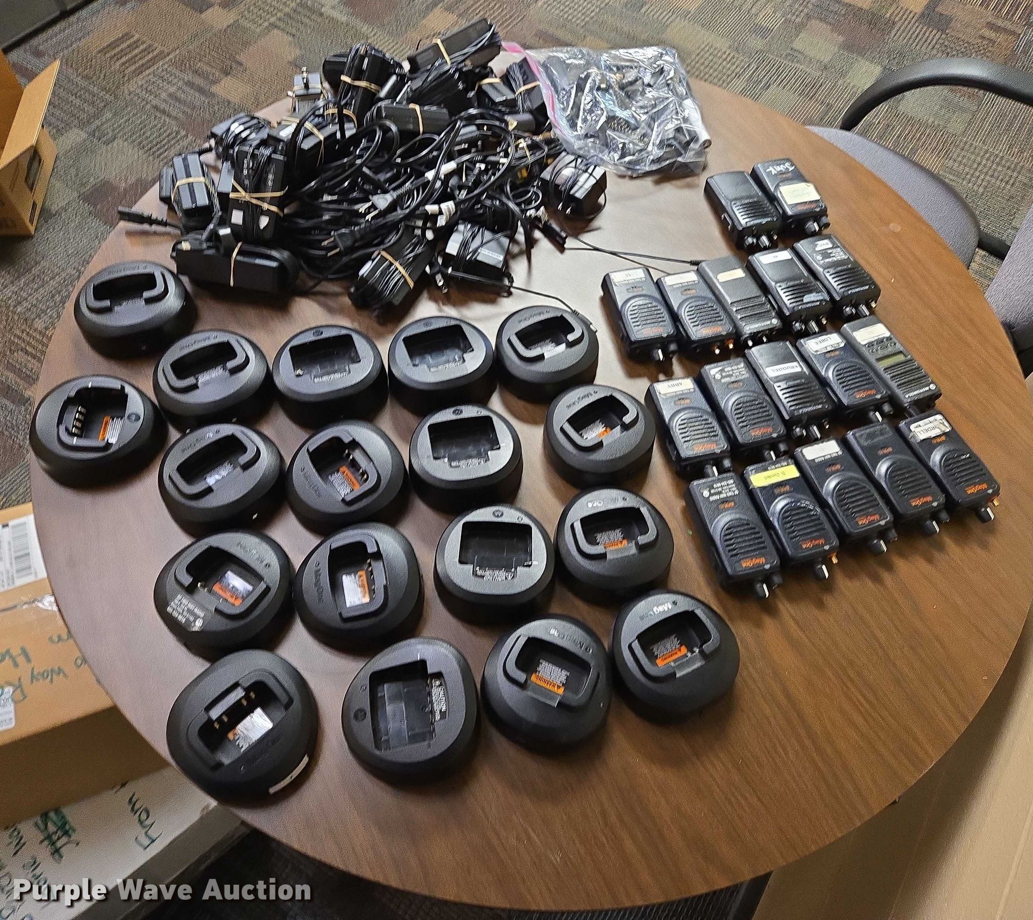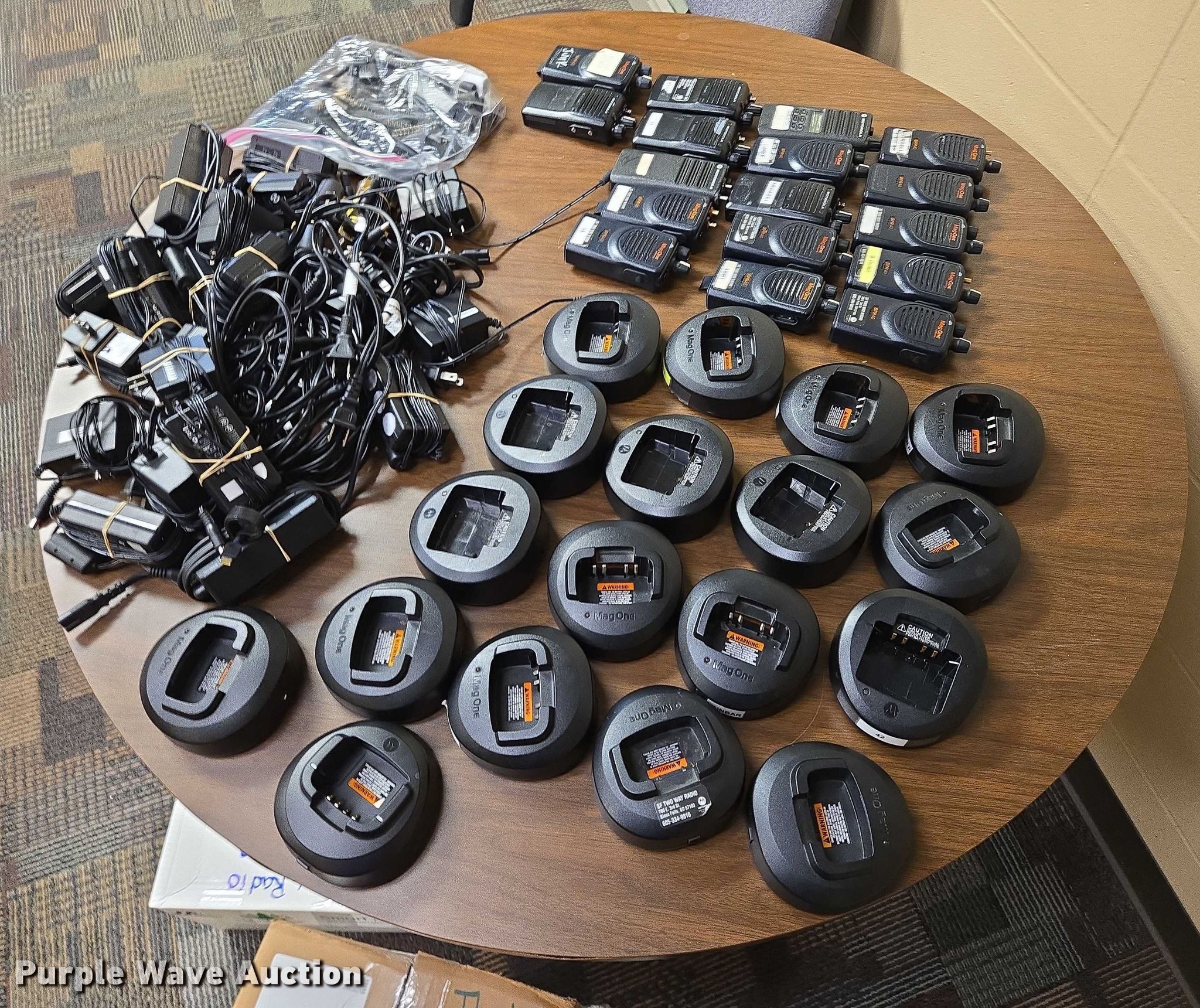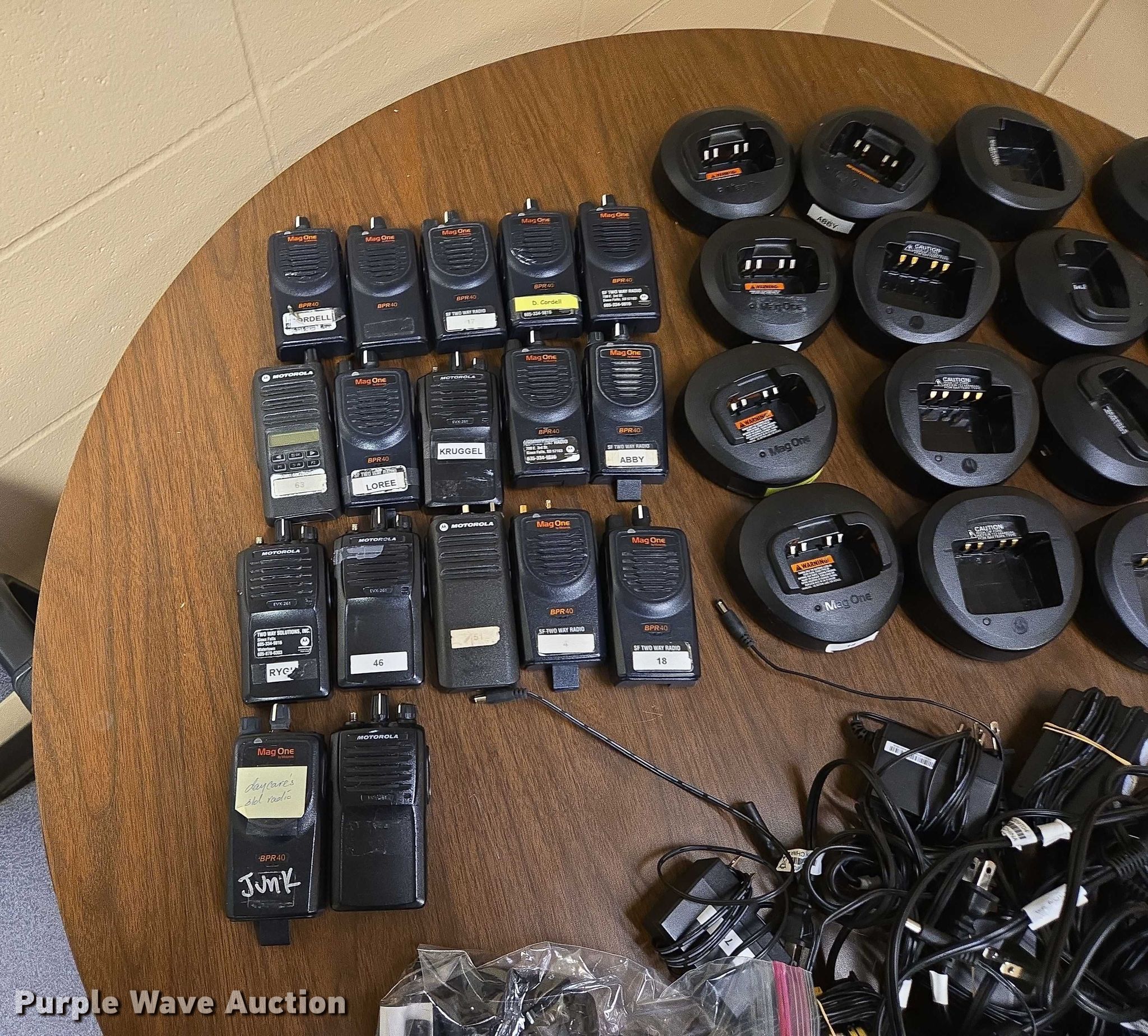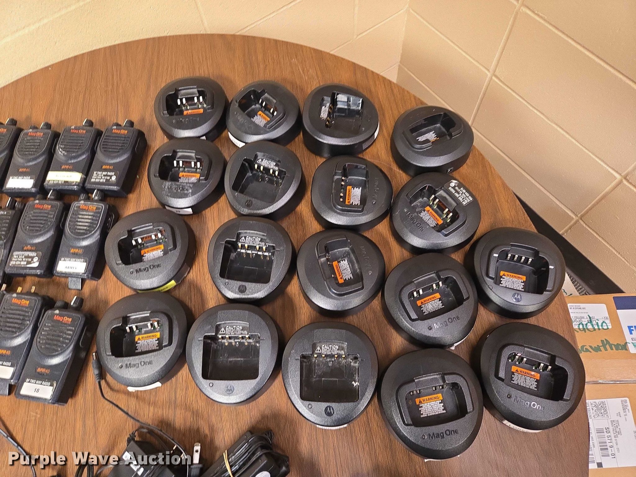 Purple Wave is selling a used Electronics in South Dakota. This item is a (17) two way radios with the following: (11) MagOne BPR40 radios, (6) Motorola radios, Charger bases and cords, Belt clips, Antennas