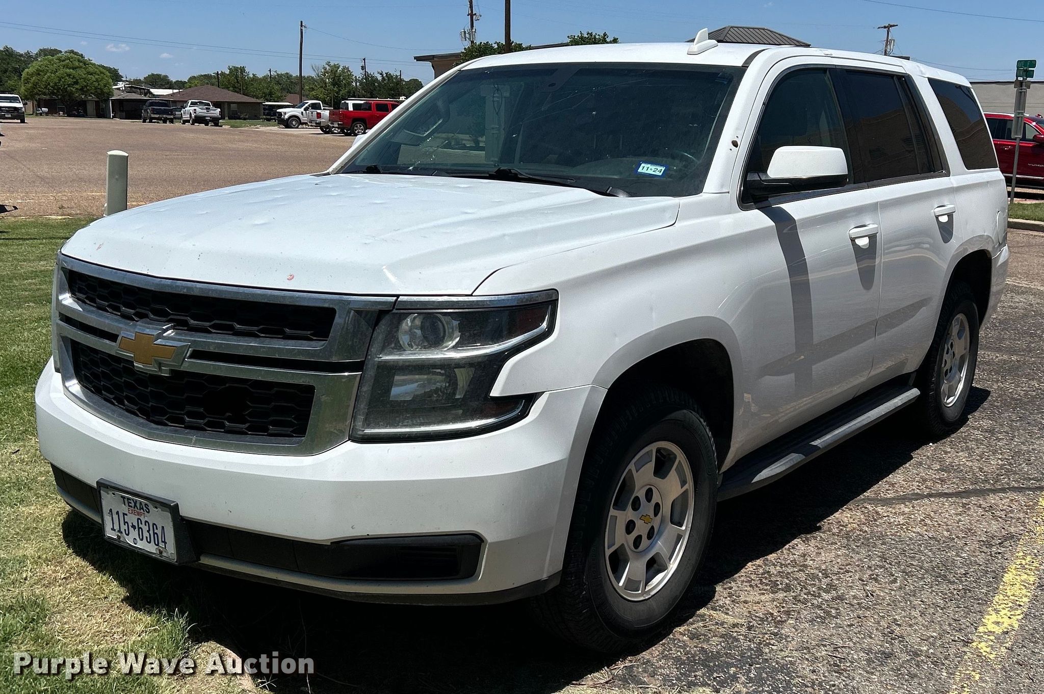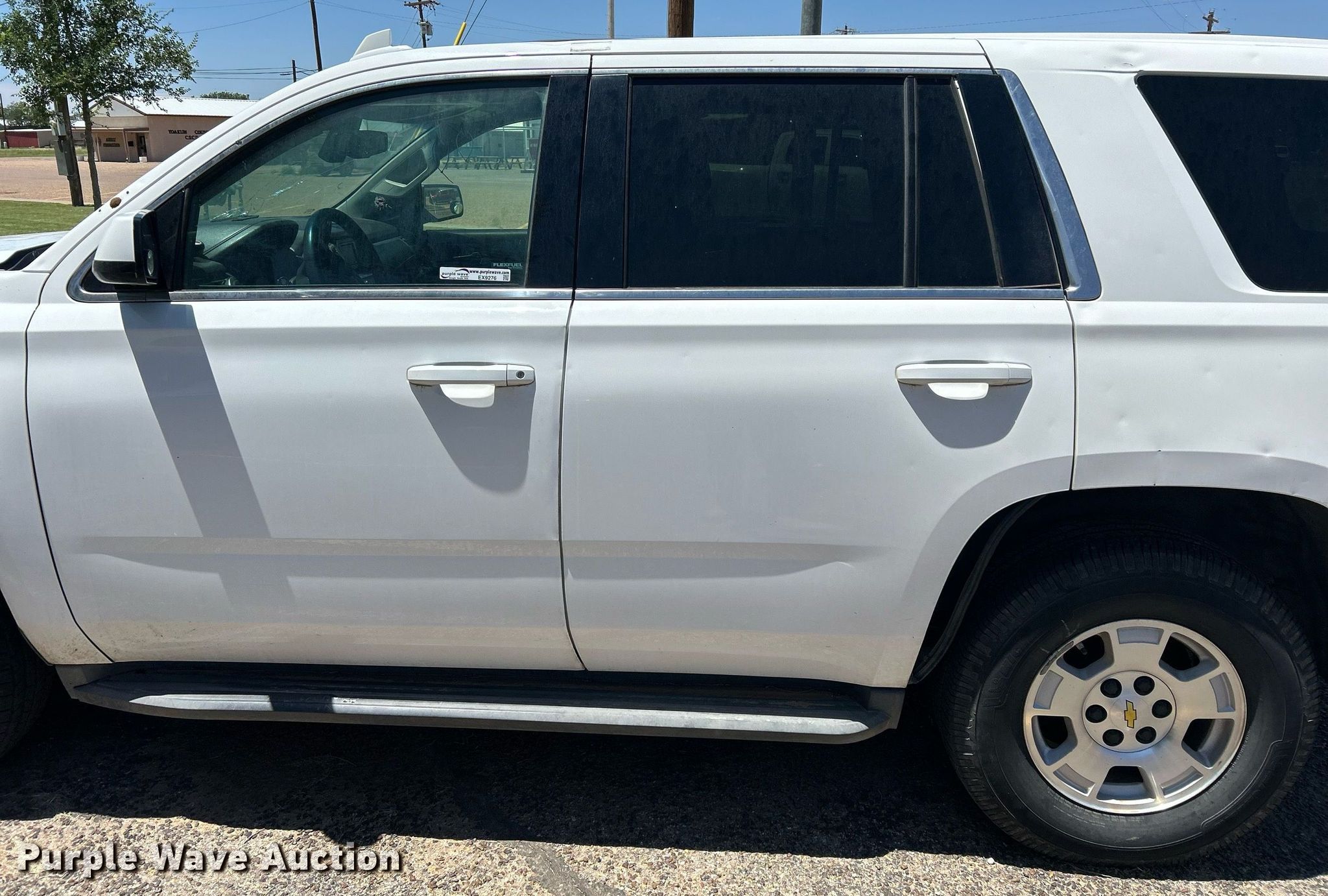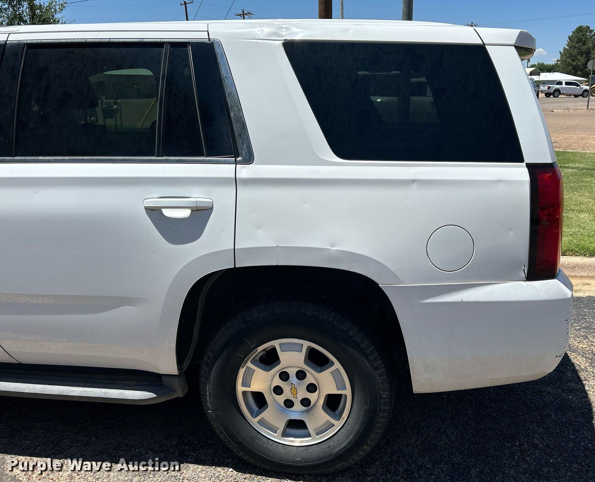 2015 Chevrolet Tahoe Police SUV. Miles: 192,872 on odometer, VIN: 1GNLC2EC5FR569909. Engine Displacement: 5.3L V8 OHV, Cylinders: 8, Fuel type: Gas. Transmission Automatic. Interior AC, Heat, Seat: Power driver, Power passenger, Power windows, Power locks, Cruise control, Backup camera. Tires Size: LT265/70R17. Notes Windshield chipped or cracked, Hail damage, Dead battery. Texas title. Title distribution may be delayed up to 14 days from verification of funds. Yoakum County, TX. Plains, TX 79355