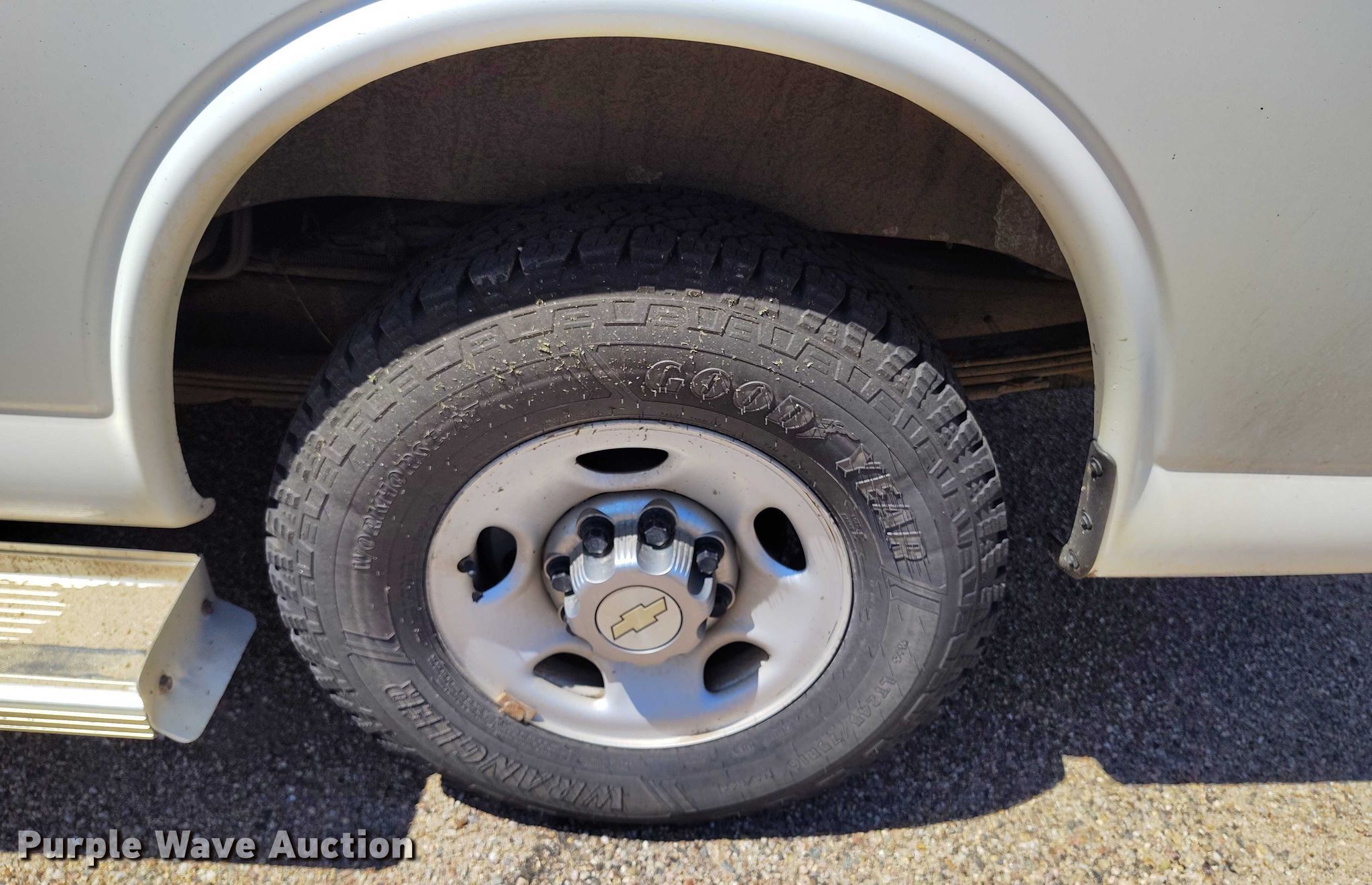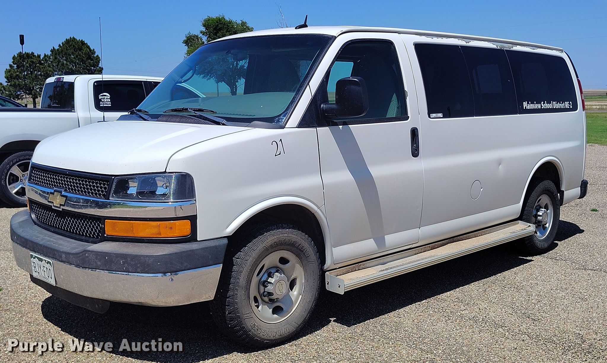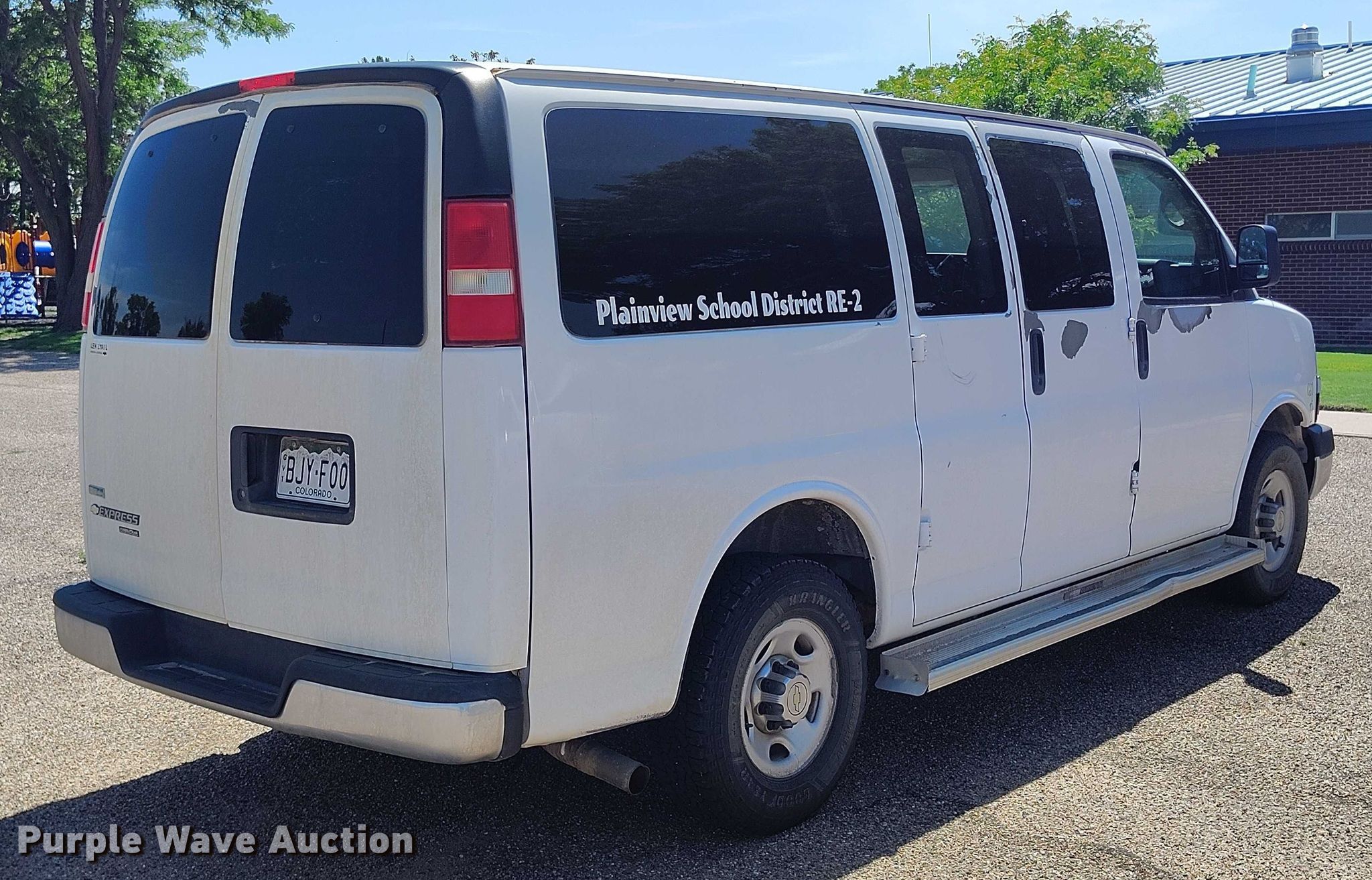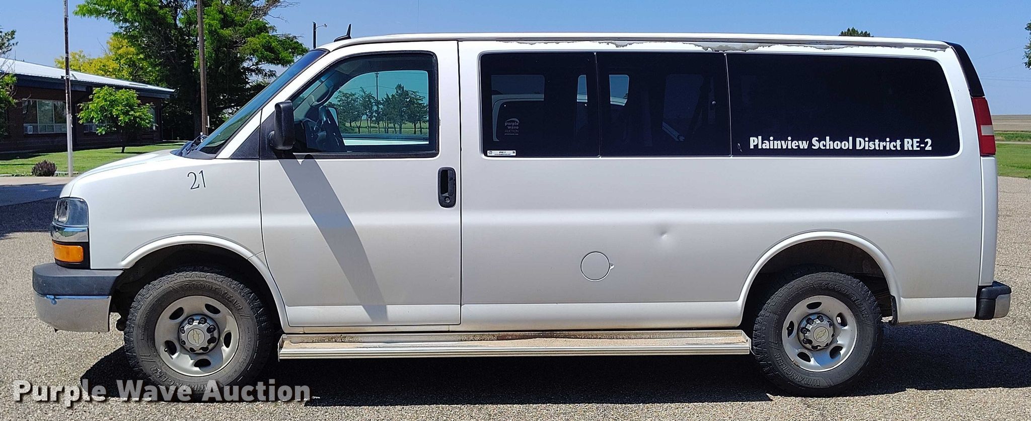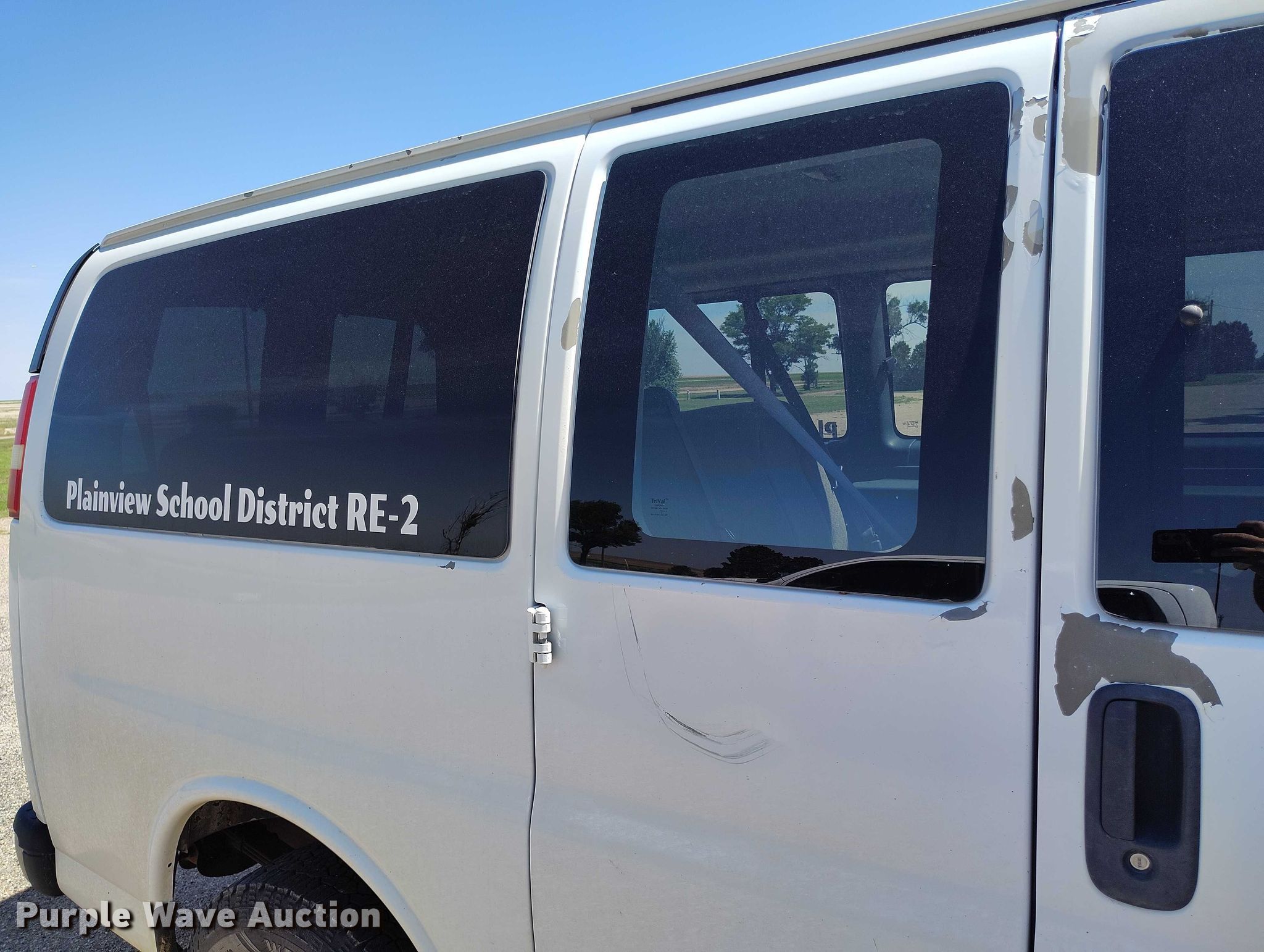 2011 Chevrolet Express 2500 van. Miles: 99,069 on odometer, Hours: 4,771 on meter, VIN: 1GAWGRFA7B1140403, Unit #: 21. Engine Displacement: 4.8L V8 OHV, Cylinders: 8, Fuel type: Gas. Transmission Automatic. Interior AC, Heat, Power windows, Power locks, Cruise control. Tires Size: 245/75R16. Notes Two way radio will be removed prior to auction, Dash warning indicator: Brake, Traction control, Service stabilitrak. Colorado title. Title distribution may be delayed up to 14 days from verification of funds. Plainview School District. Sheridan Lake, CO 81071