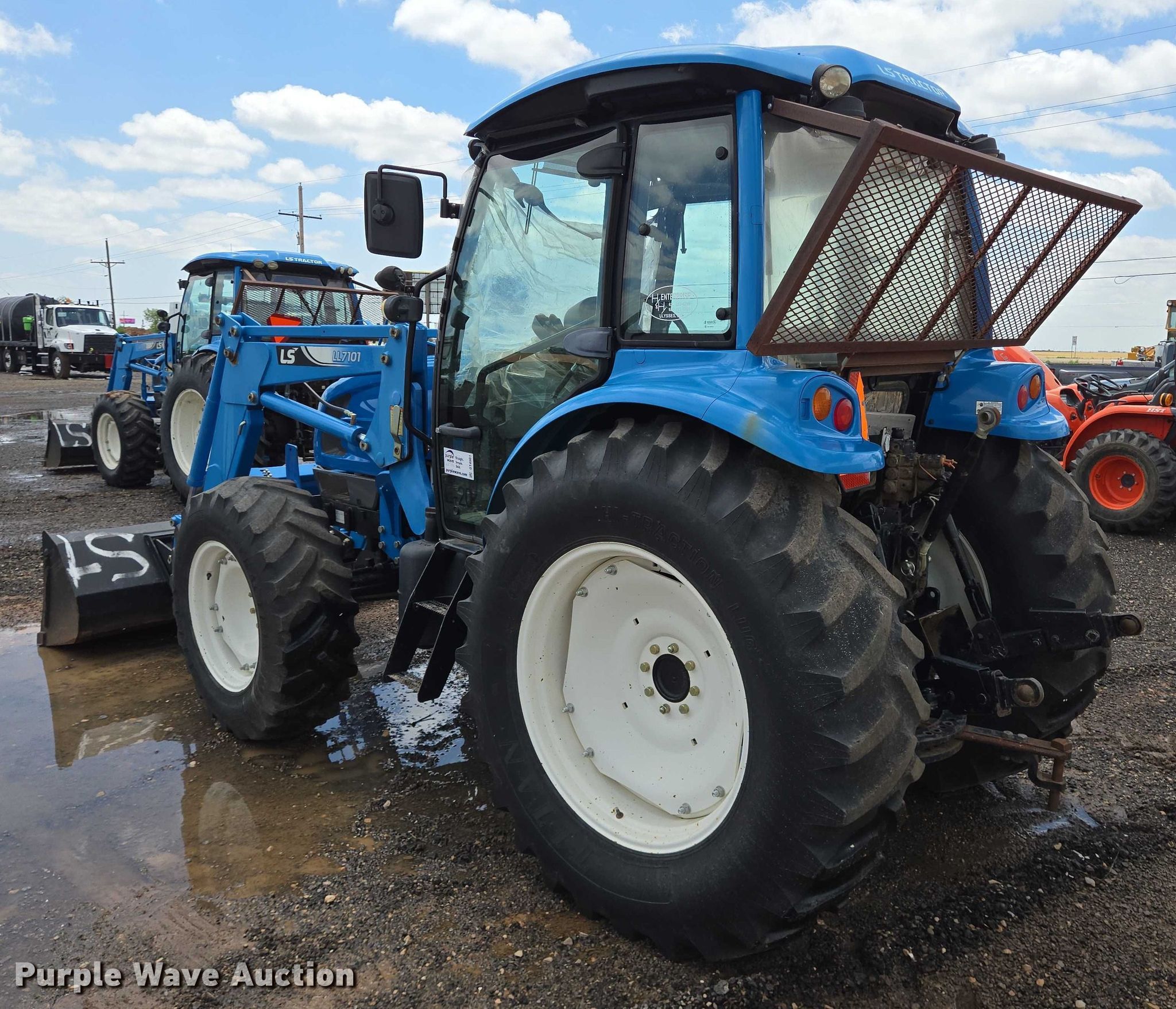 LS P7040C MFWD tractor. Hours: 1,637 on meter. Engine Fuel type: Diesel. Transmission Synchro, Differential lock. Operators station AC, Heat. Features PTO: 1000, Three point Top link, Hydraulic remote sets Rear: 3, Loader ready, Loader LS LL7101, Controls: Joystick, Bucket Width: 83".. Tires Front: 13.6-24, Rear: 18.4-34. Notes Front windshield missing, Rear glass broken, Hood damage, does not open, Possible transmission issues, will not go in reverse , Glass cracked. H & H Enterprises. Amarillo, TX 79124