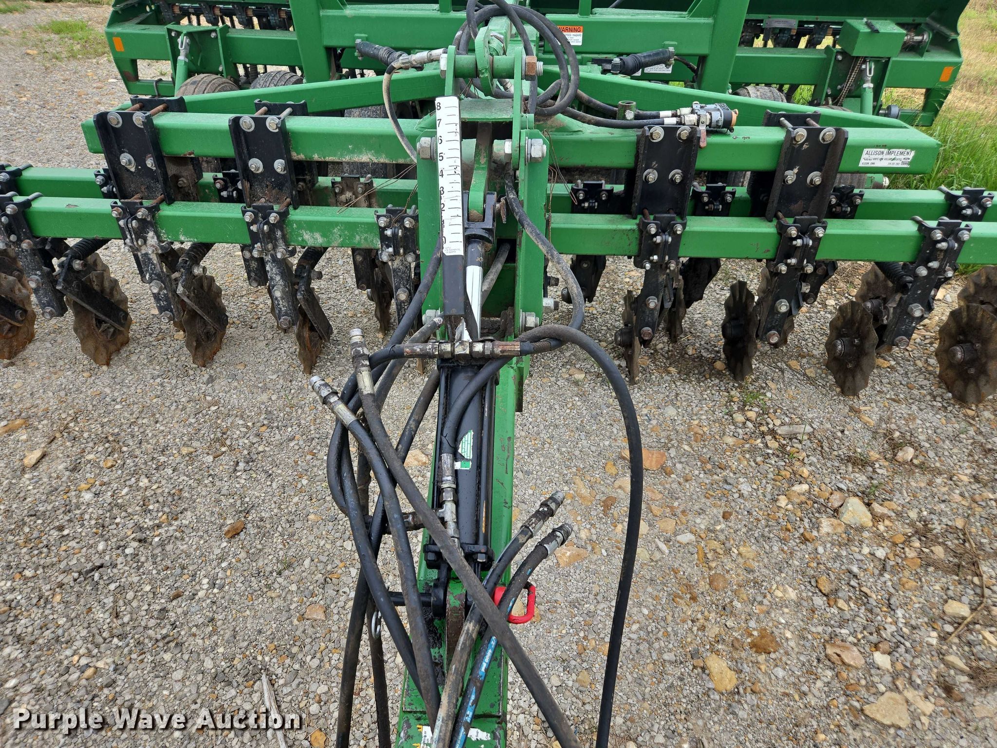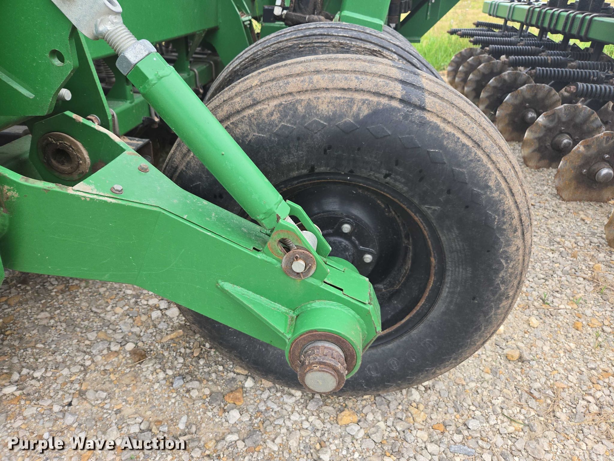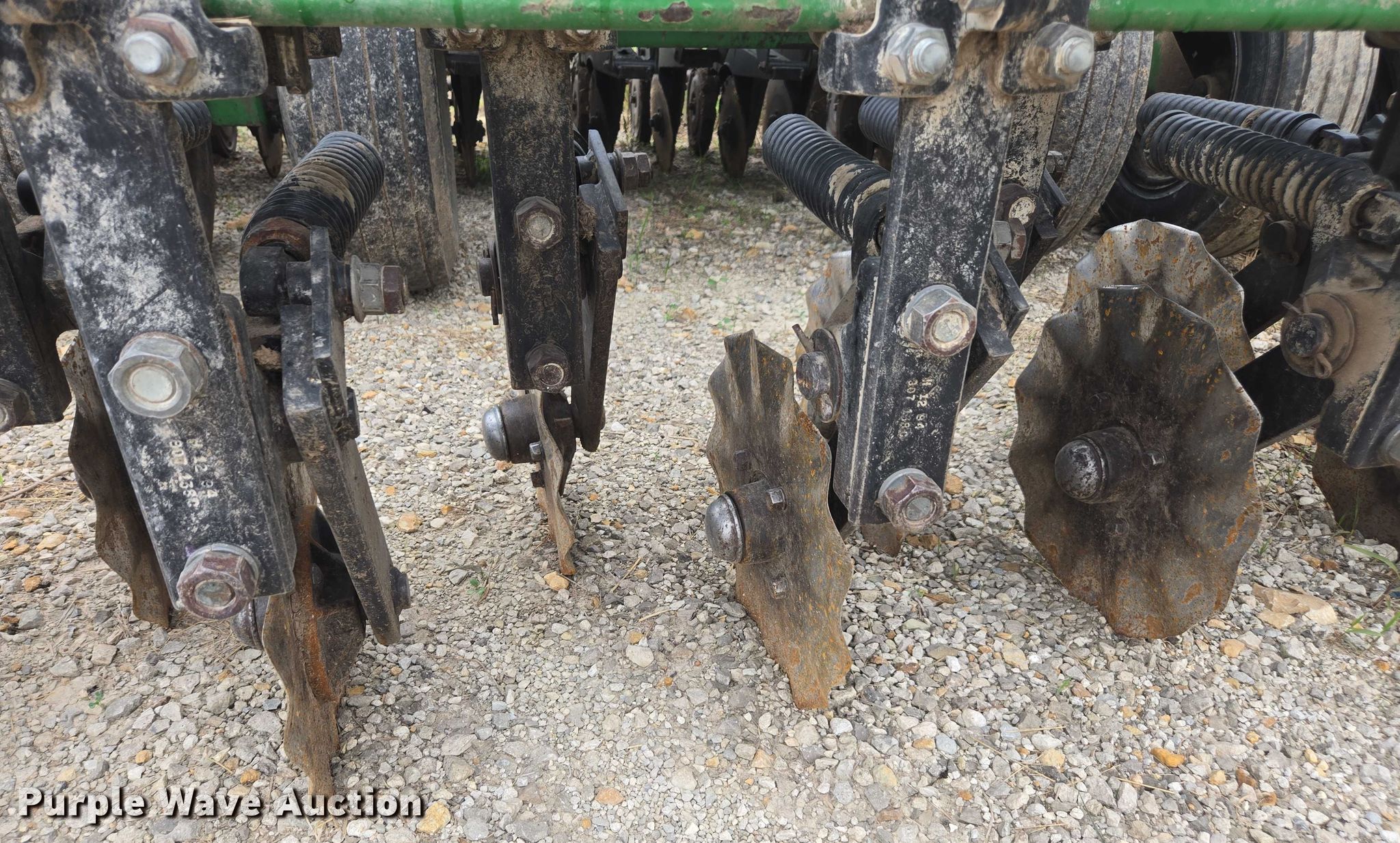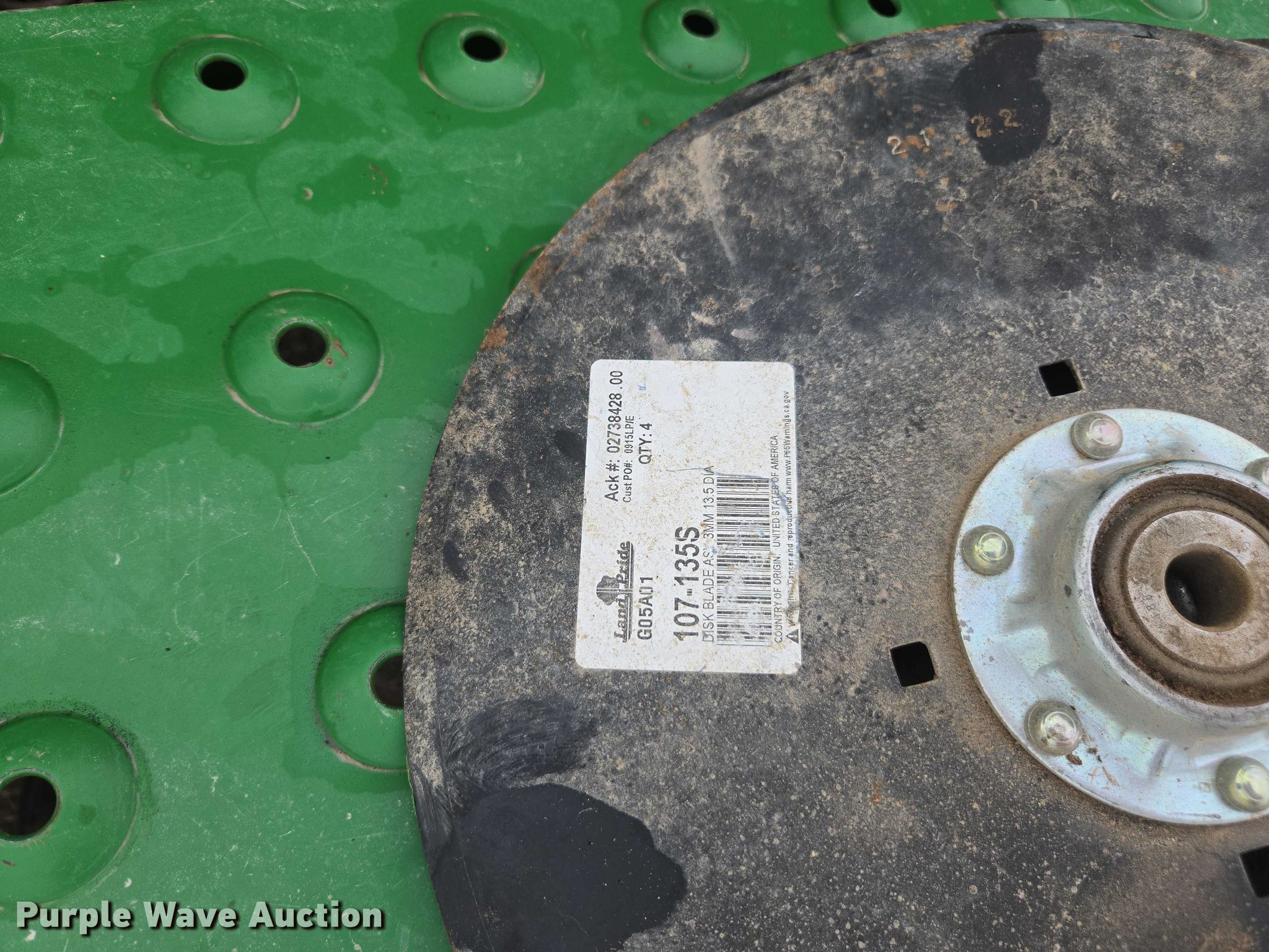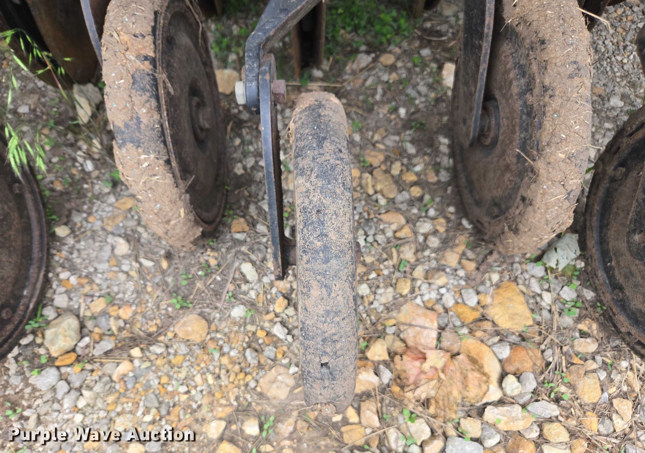 Great Plains CPH-1595 34 grain drill. Width: 14', Row spacing: 7.5", Serial: GP-6975Z. Features Seed delivery Bulk fill system, Row units Meter drive: Ground, Down pressure: Spring, No-till coulters, Disk openers: Double, Closing system: Single Type: Rubber.. Tires Transport tire size: 9.5-15 Quantity: 4, Drive/ outside tire size: 9.5-15 Quantity: 2. Notes Additional disc openers included. BK Farms. Baldwin City, KS 66006