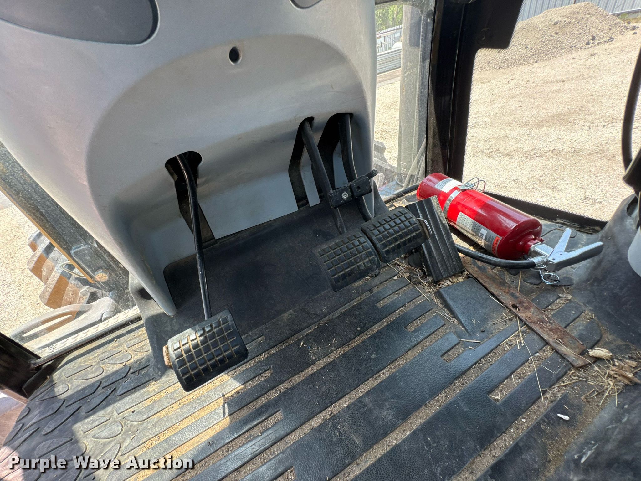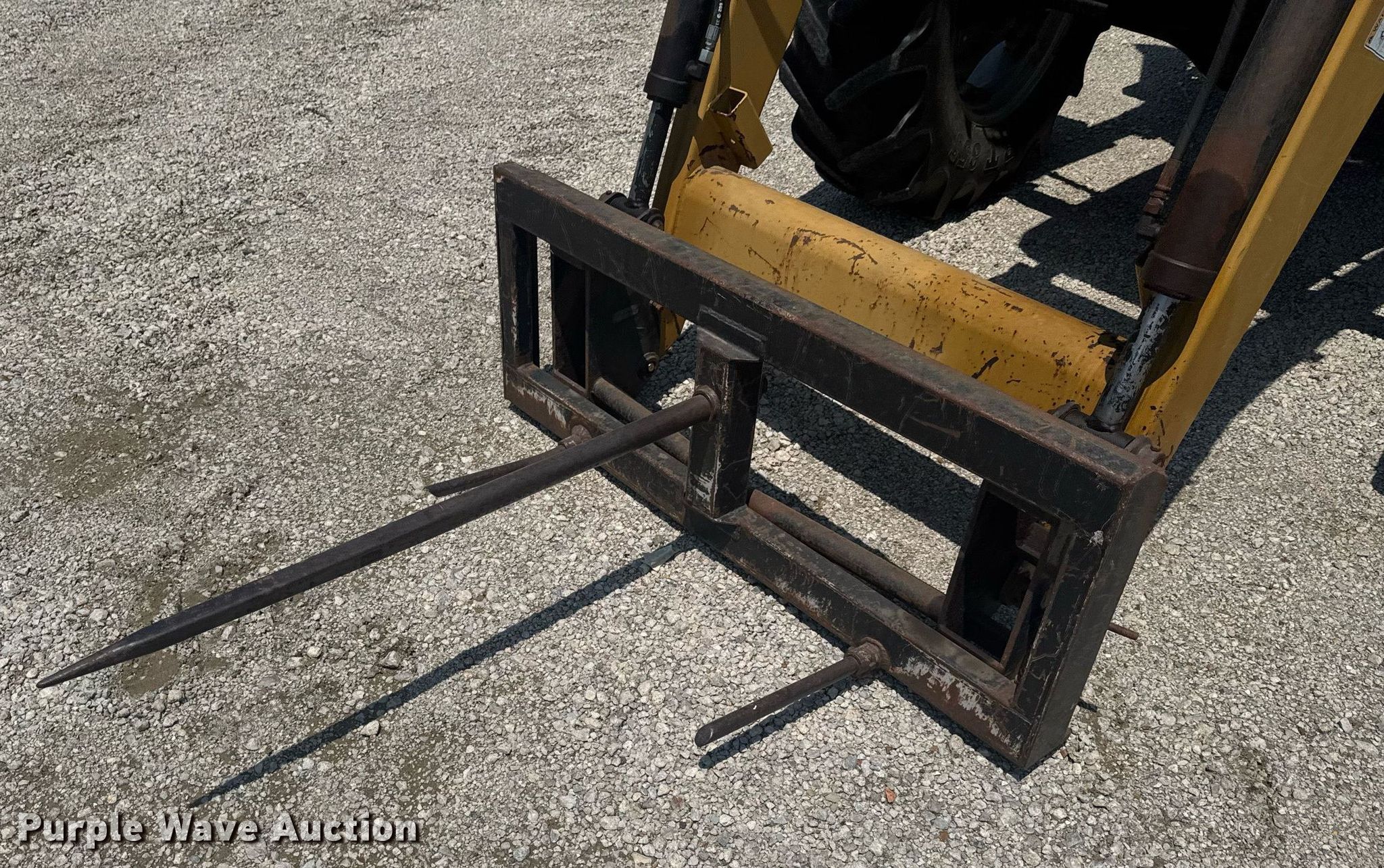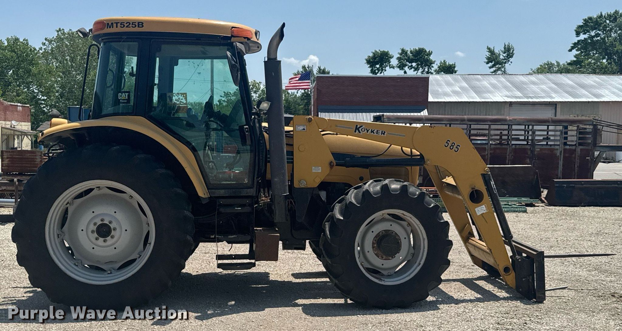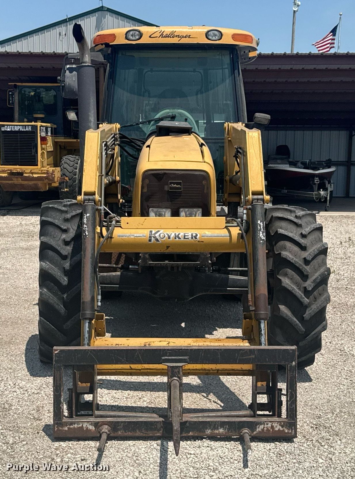2004 Challenger MT525B MFWD tractor. Hours: 1,510 on meter, Serial: N27221. Engine Caterpillar 3056C, Displacement: 6.0L, Cylinders: 6, Fuel type: Diesel. Transmission Powershift, 32F - 32R, Differential lock. Operators station AC, Heat. Features PTO: 540, Three point Top link, Seven pin outlet, Hydraulic remote sets Rear: 3, Loader Koyker 585, Quick attach, Bale spear, Controls: Joystick, Bucket Width: 96", Cutting edge: Bolt-on. Tires Front: 380/85R28, Rear: 18.4-38. Teeters Hay and Cattle, LLC. Quapaw, OK 74363