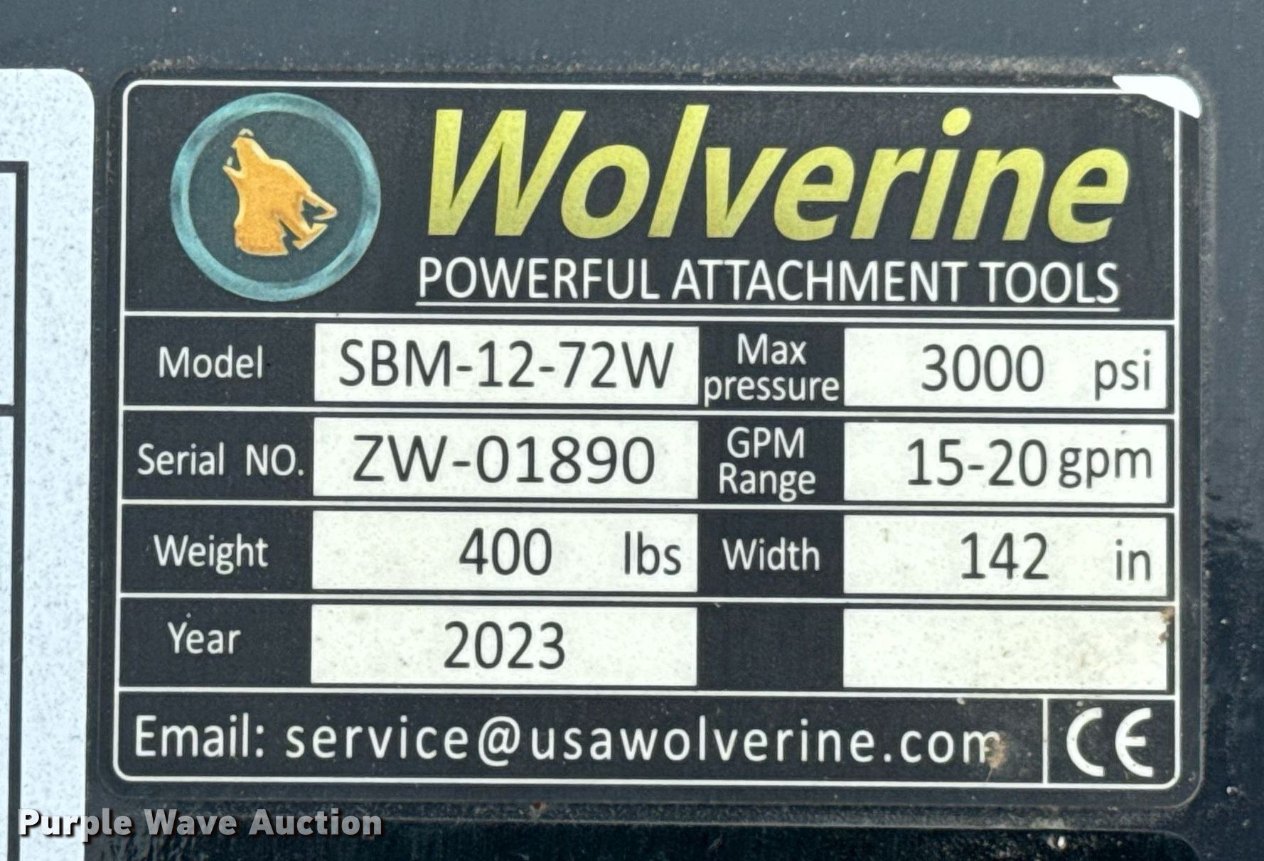 Purple Wave is selling a used Skid Steer Attach. in Oklahoma. This item is a 2023 Wolverine SBM-12-72W skid steer sickle mower with the following: Serial: ZW-01890, Width: 72"
