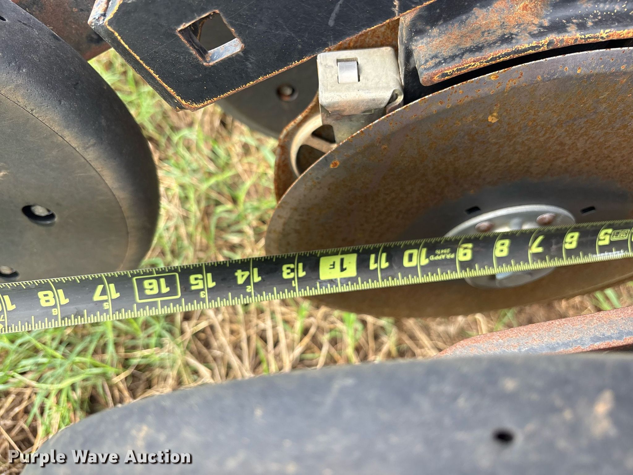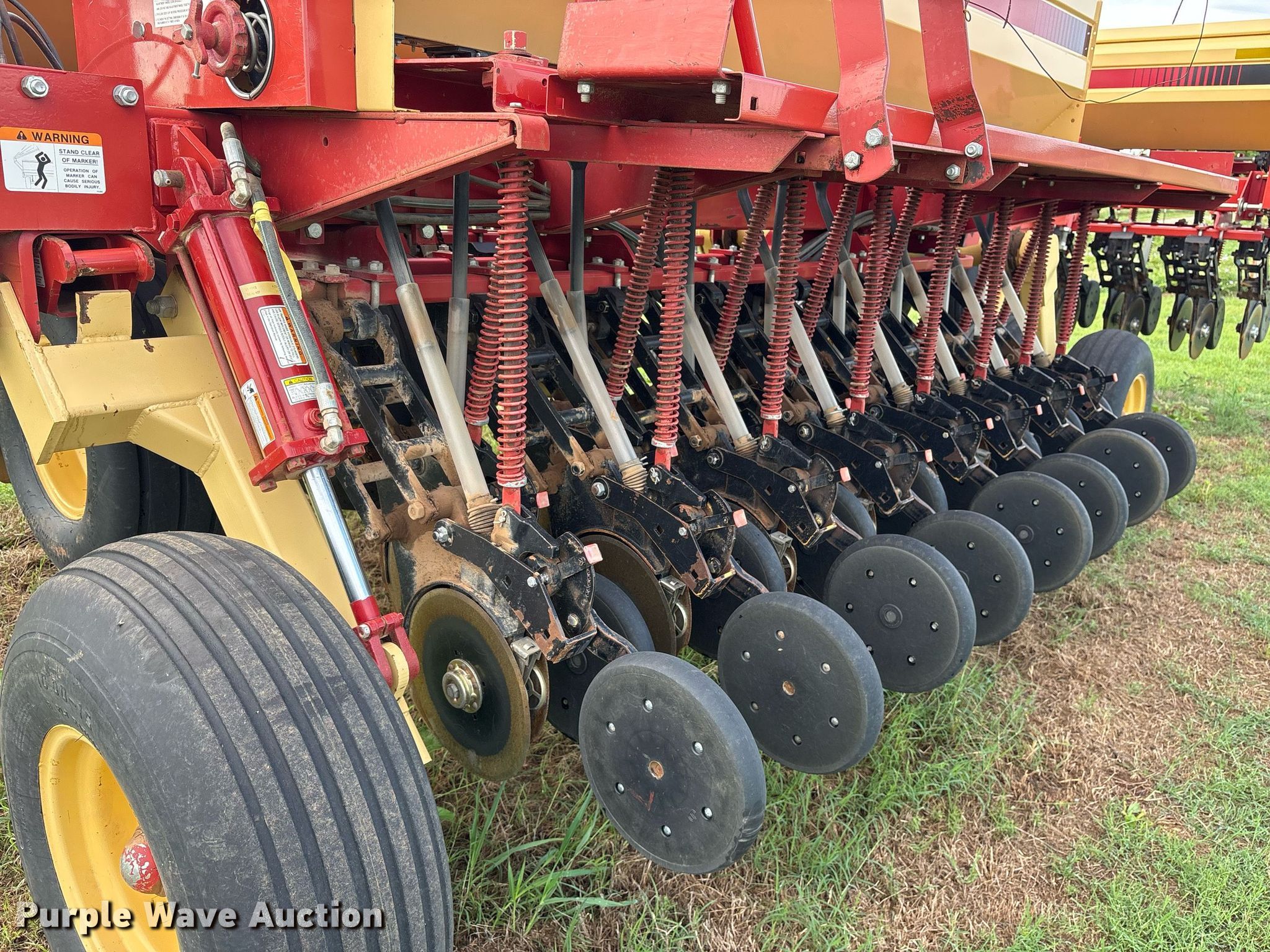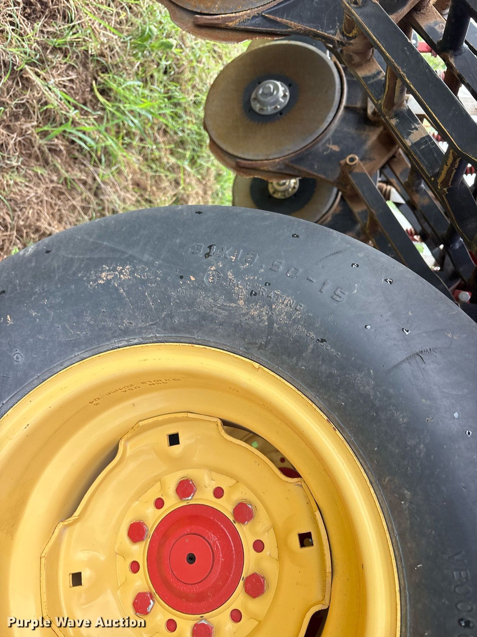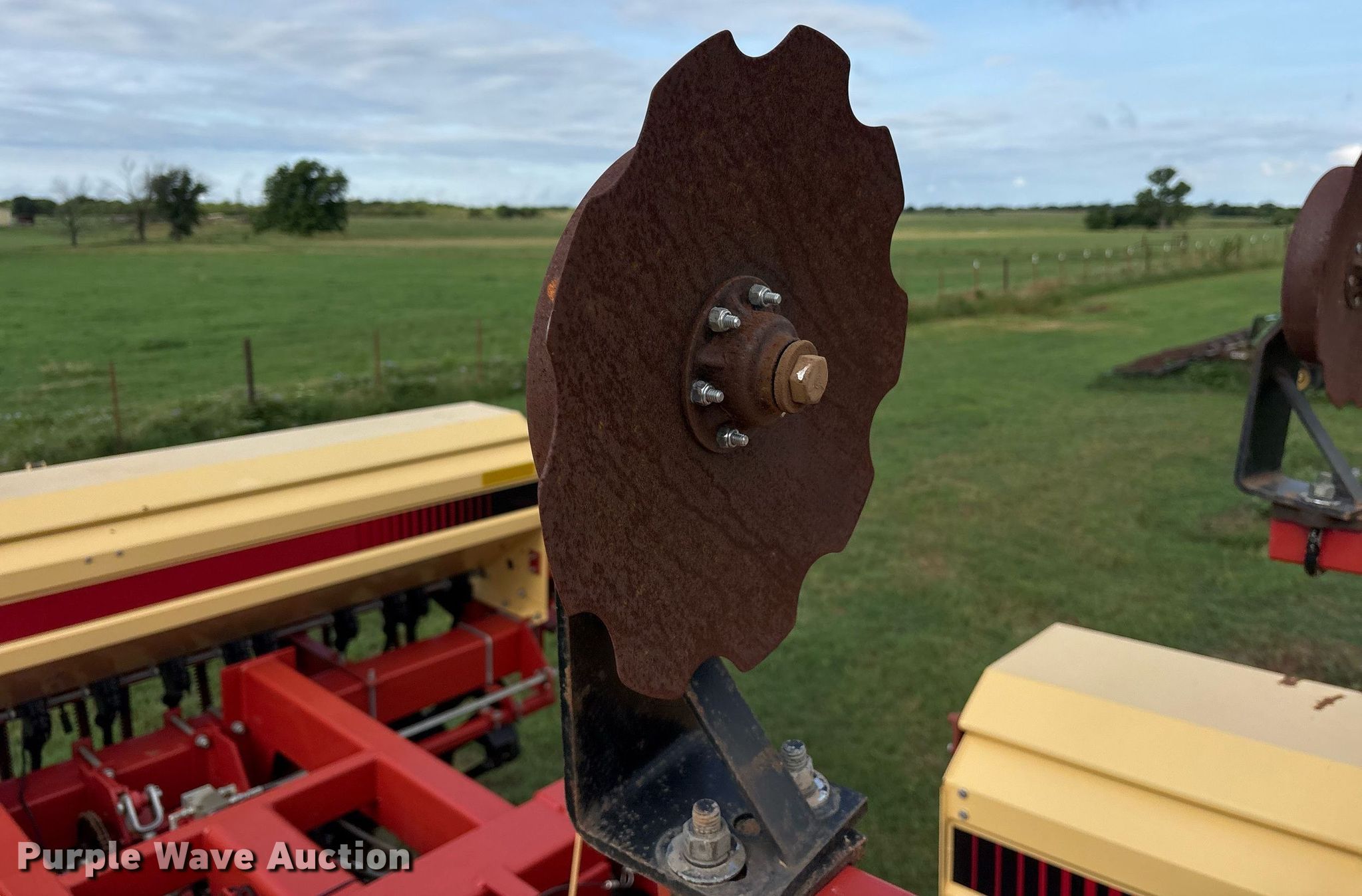 Krause 5400 grain drill. Width: 30', Row units: 48, Row spacing: 8", Serial: 1487 08/0. Features Frame Hitch: Two point, Fold type: Pivot, Seed delivery Bulk fill system, Row units Down pressure: Spring, Disk openers: Double, Gauge wheels: Double, Closing system: Single Type: Rubber.. Tires Transport tire size: 12.5L-16 Quantity: 4, Drive/ outside tire size: 31x13.50-15 Quantity: 2. Henrietta, TX 76365