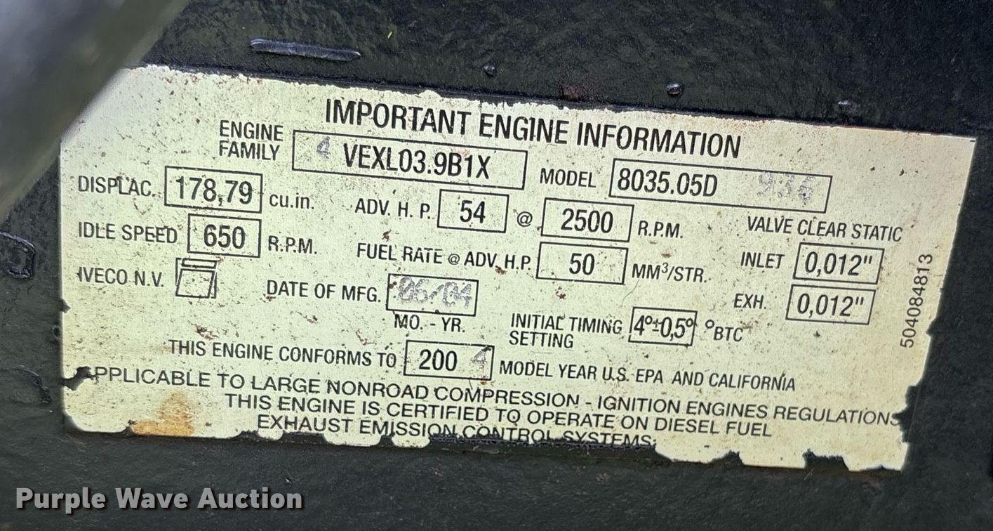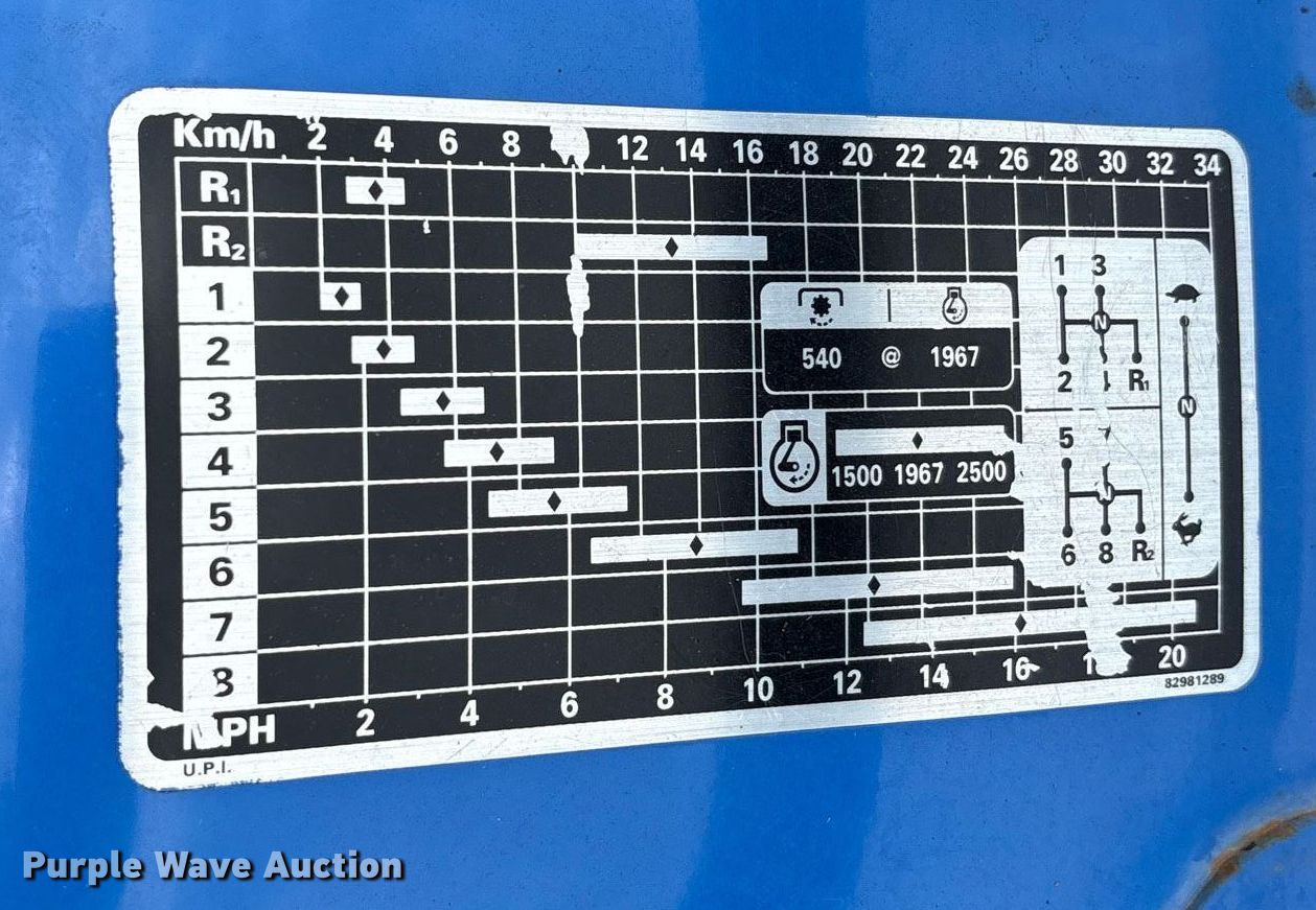 2004 New Holland TT55 tractor. Hours: 466 on meter, Serial: T00280M. Engine Iveco 8035.05D, Cylinders: 3, Fuel type: Diesel. Transmission Manual, 8F - 2R, Differential lock. Features PTO: 540, Three point, Seven pin outlet. Tires Front: 9.5L-15, Rear: 14.9-28. Alba, TX 75410