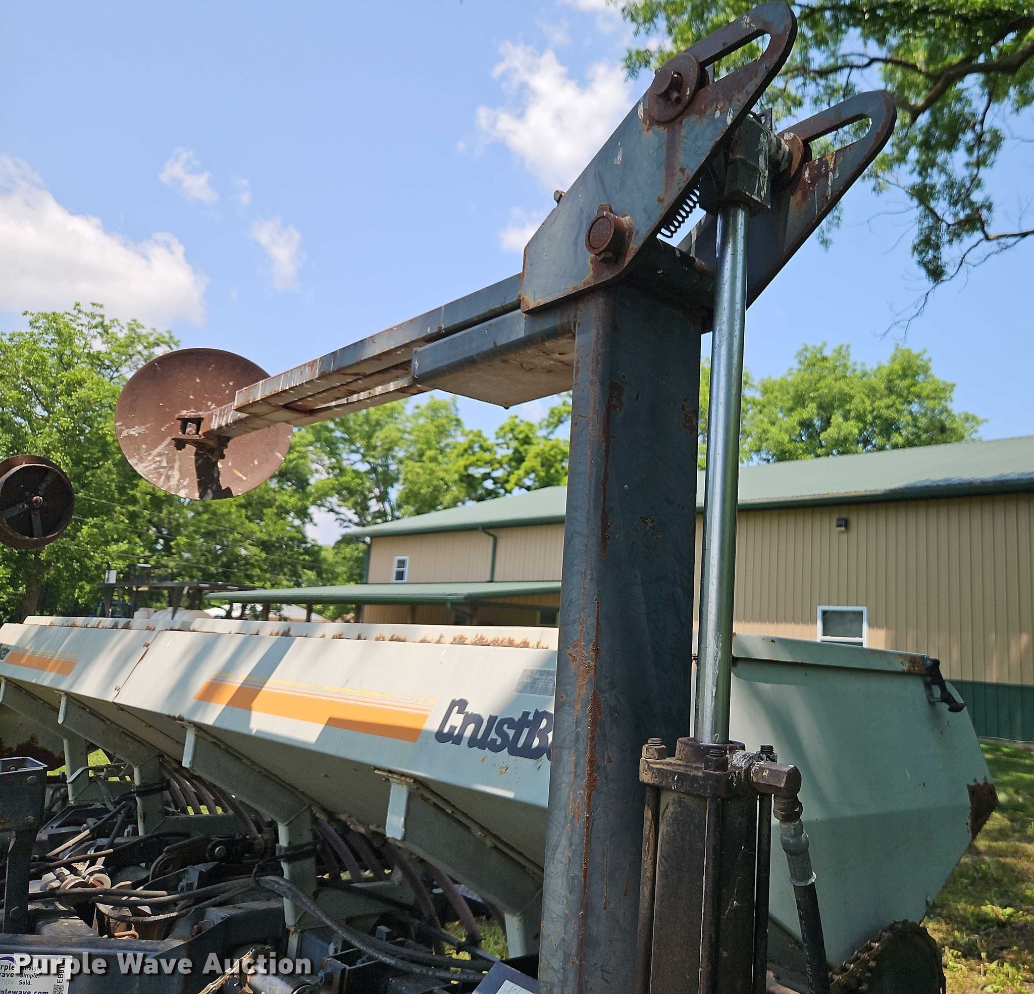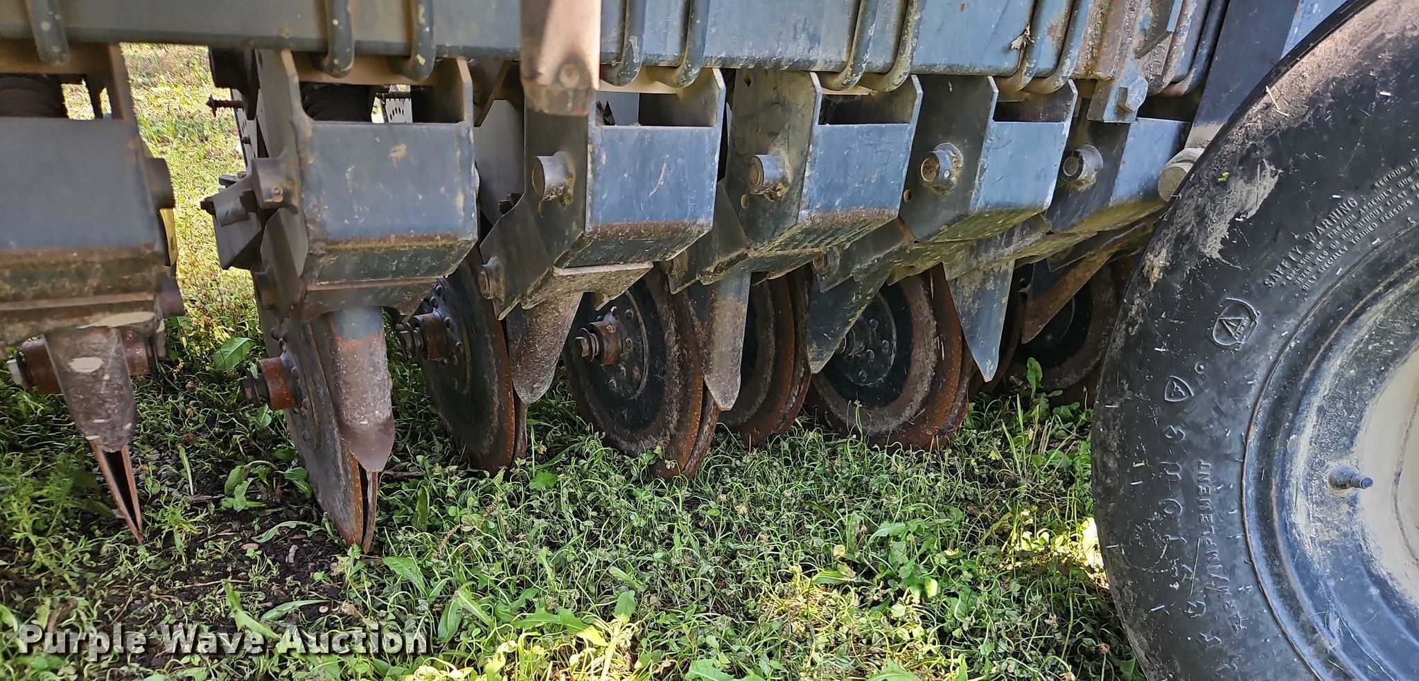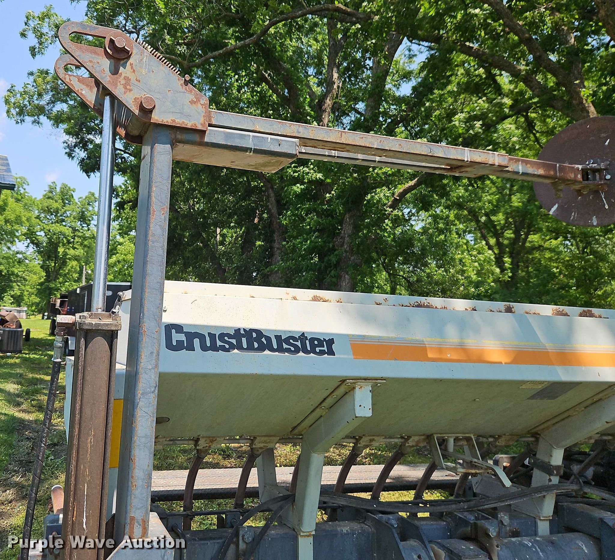 Crust Buster 3400AP 10C grain drill. Width: 15', Row units: 22, Row spacing: 8", Serial: 11598. Features Frame Hitch: Pin, Marker arm, Seed delivery Bulk fill system, Row units Meter drive: Ground, Down pressure: Spring, Disk openers: Double, Closing system: Single Type: Rubber.. Tires Transport tire size: 12.5L-15 Quantity: 4. Rockville, MO 64780