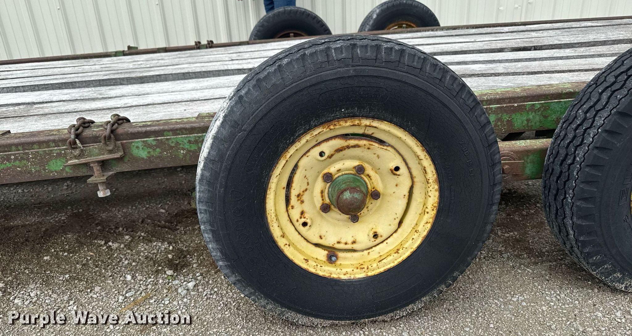 This John Deere implement trailer will sell to the highest bidder regardless of price.