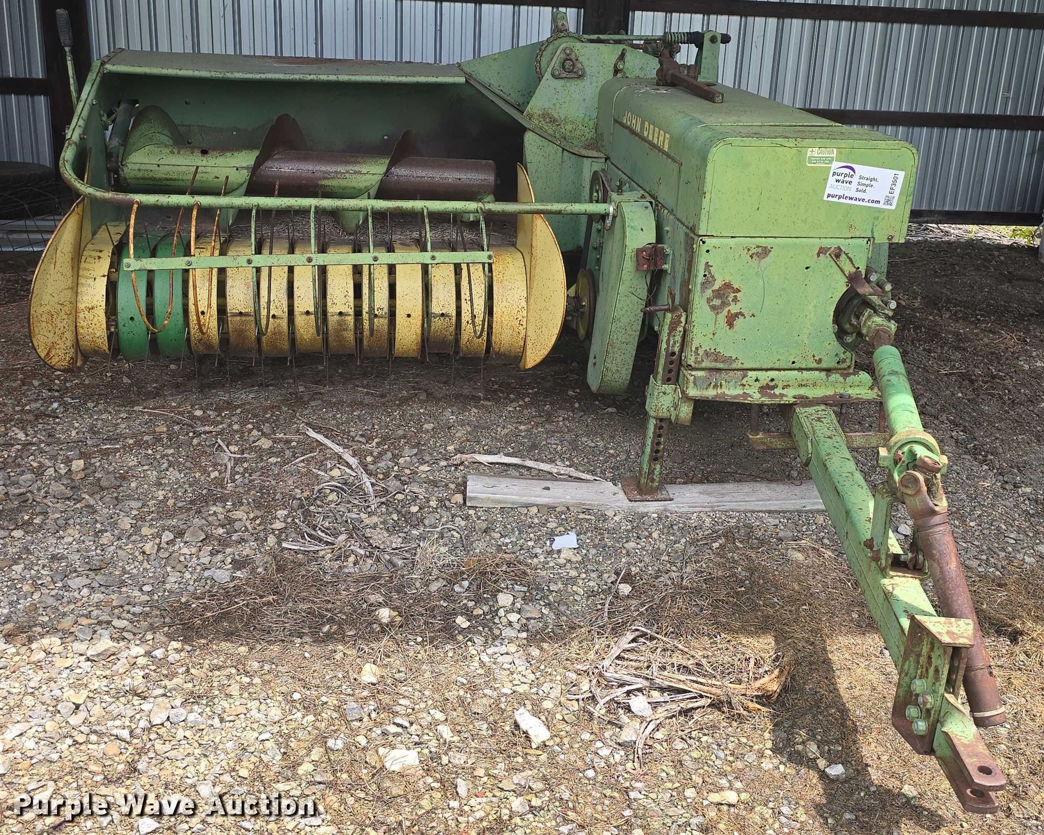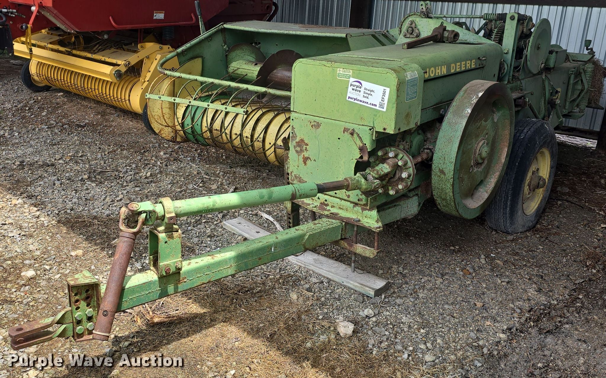 Purple Wave is selling a used Square Baler in Kansas. This item is a John Deere 224WS small square baler with the following: Serial: 01299E