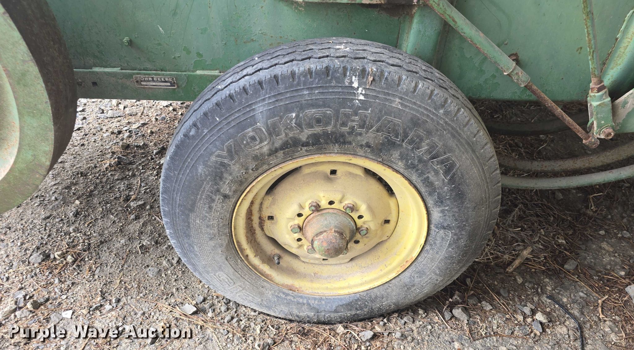 John Deere 224WS small square baler. Serial: 01299E. Features PTO: 540, Pickup width: 52", Small square bale size: 16" x 18", Knotters Quantity: 2, Wire tie, Bale chute. Tires Size: 5.00-15, 7.00R15. Notes PTO half shaft removed but included, Flat tires. Emporia, KS 66801