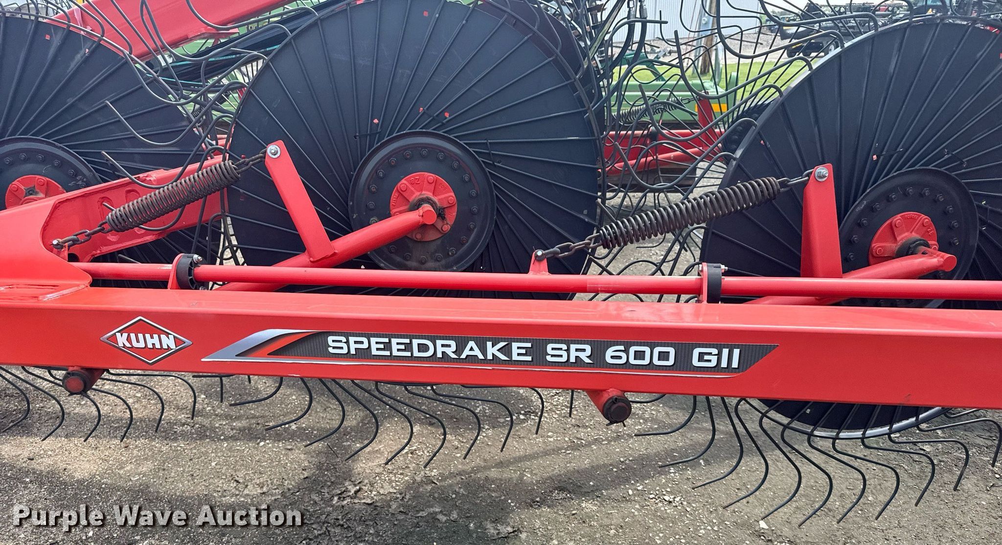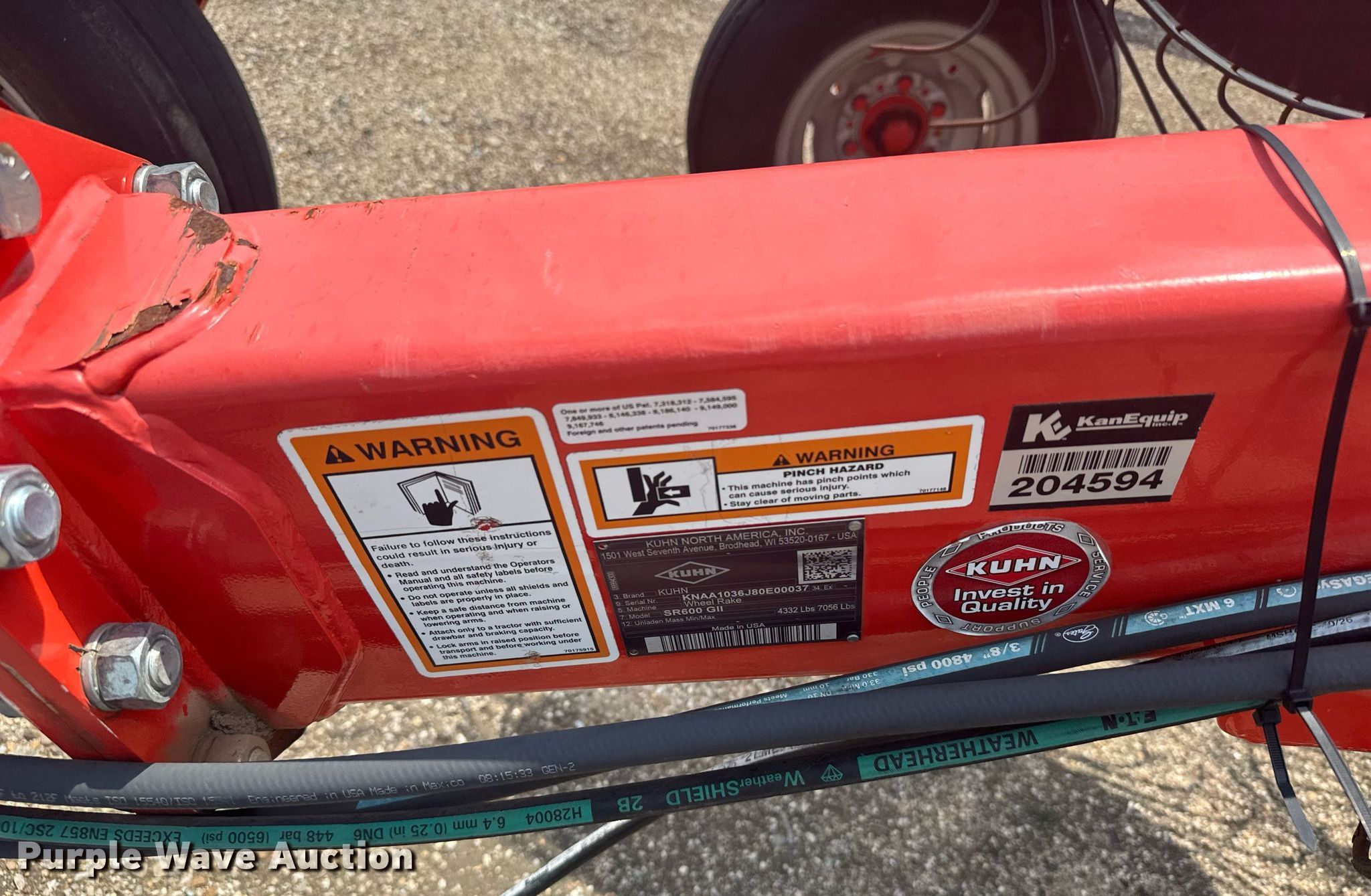 Purple Wave is selling a used Hay Rake in Kansas. This item is a Kuhn SR600 GII hay rake with the following: Serial: KNAA1036J80E00037