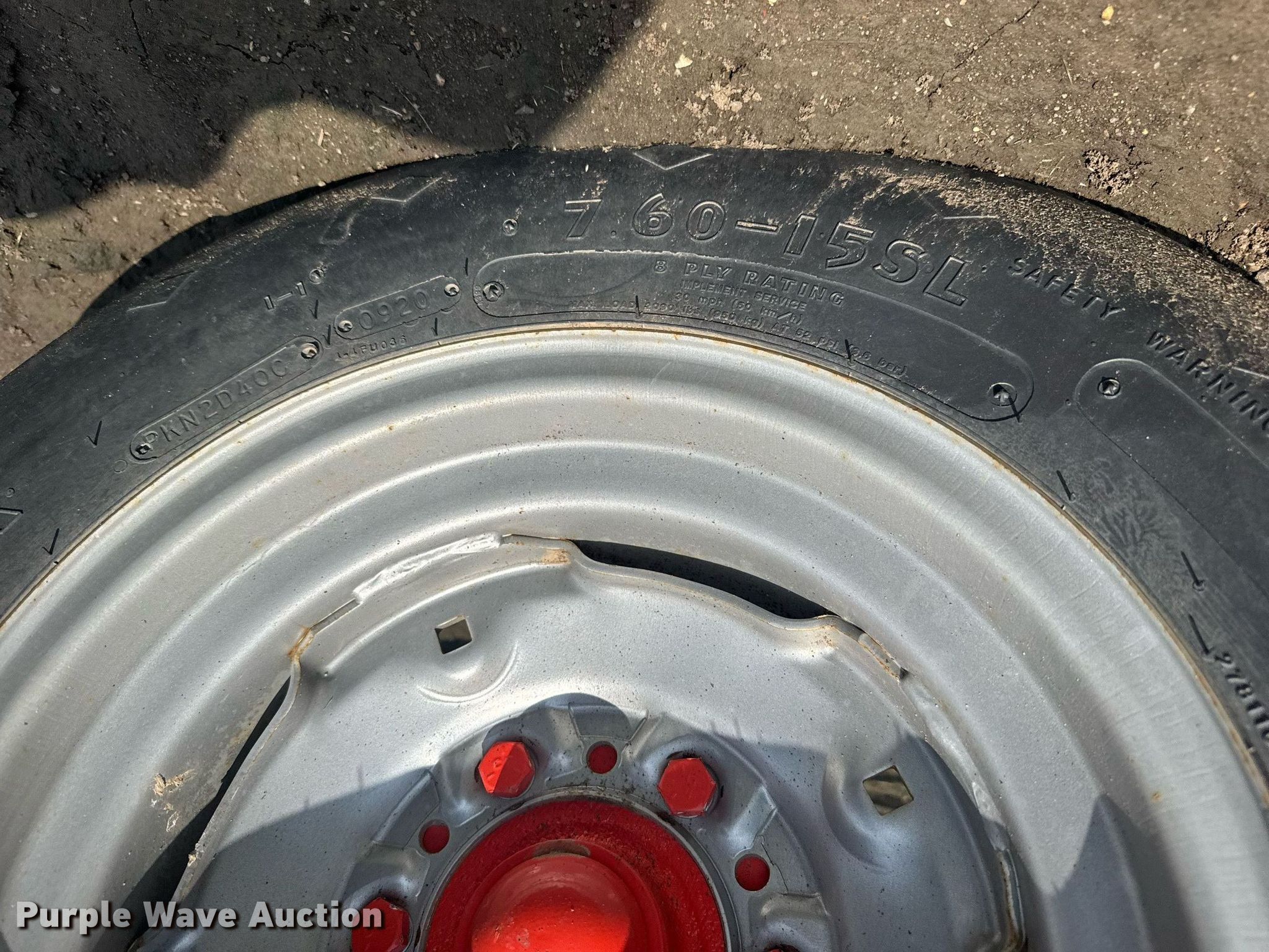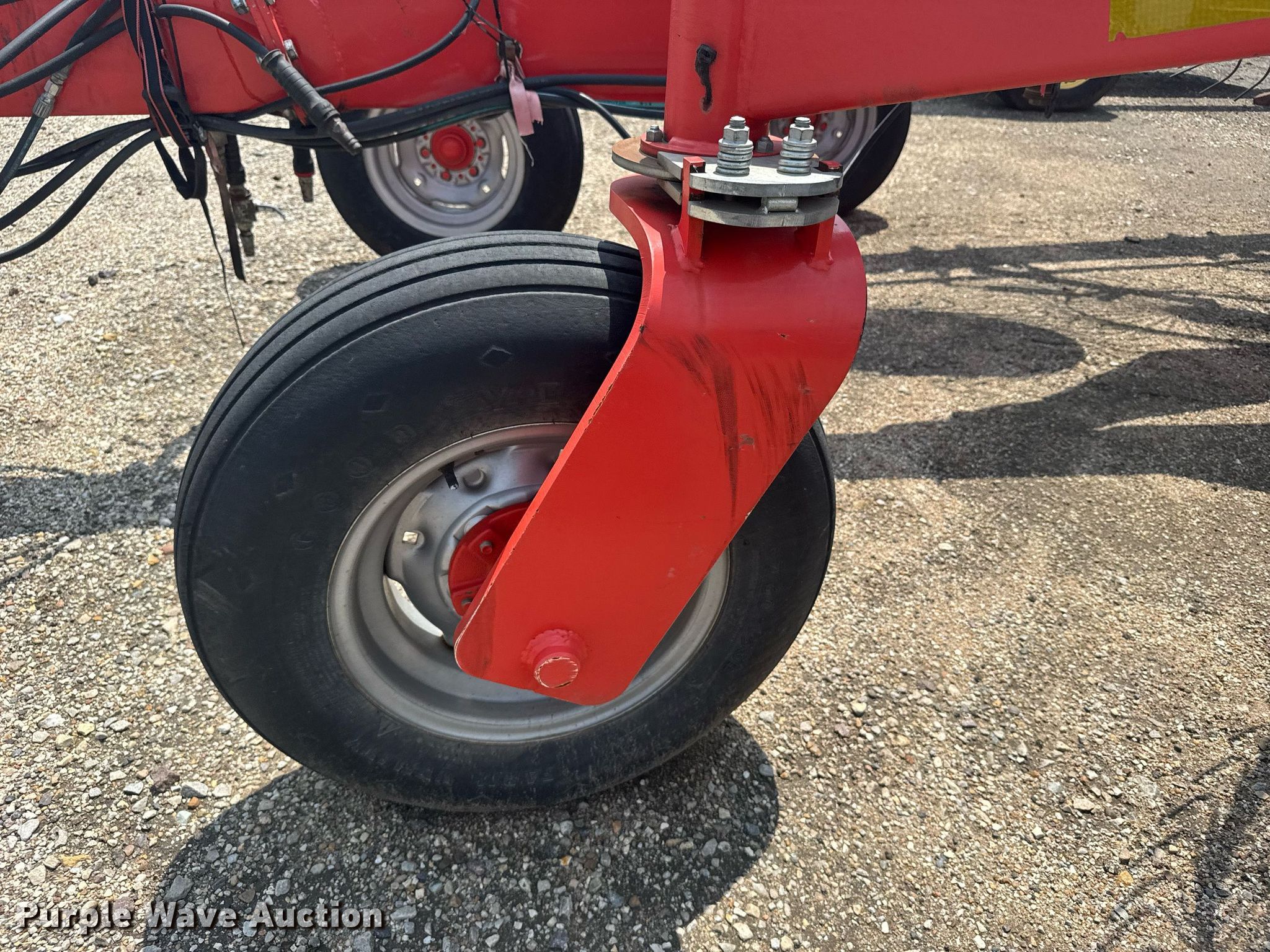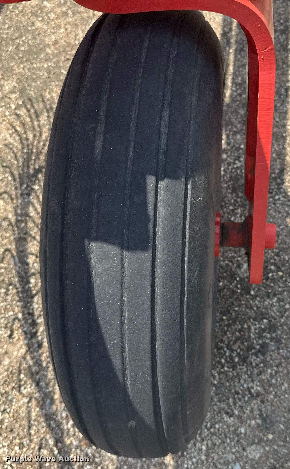 Kuhn SR600 GII hay rake. Serial: KNAA1036J80E00037. Features Width: 31', Wheels: 16 Diameter: 55", Hydraulic lift, Hydraulic fold, Ground driven. Tires Size: 7.60-15SL. Notes Tires worn. KanEquip Inc.. Ellsworth, KS 67439