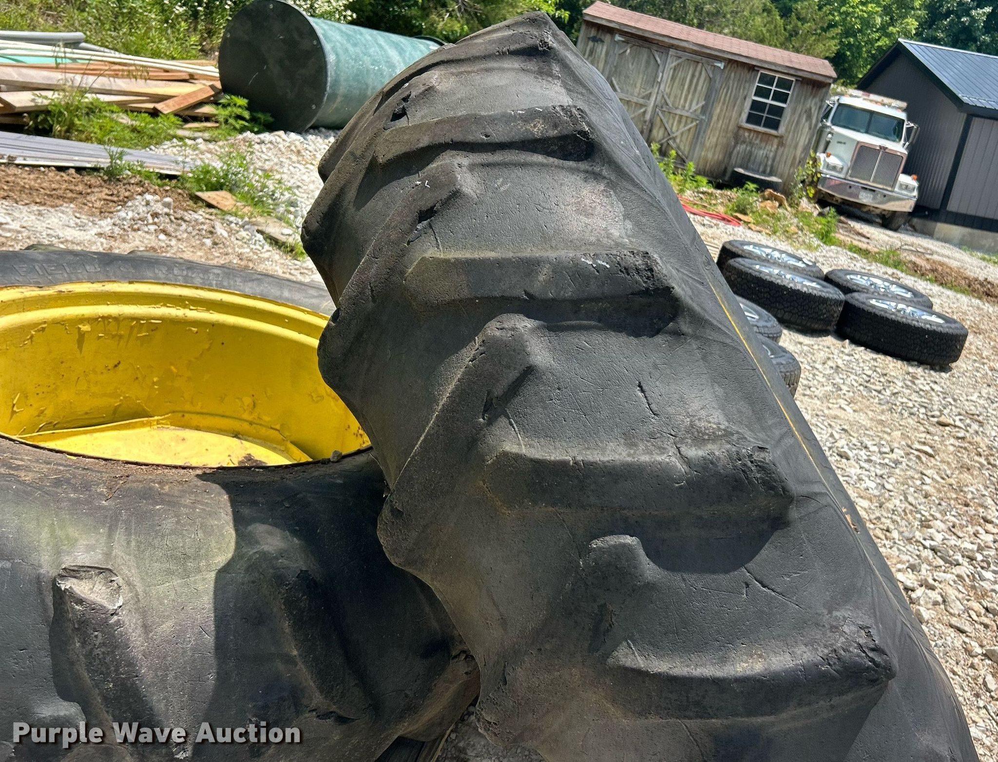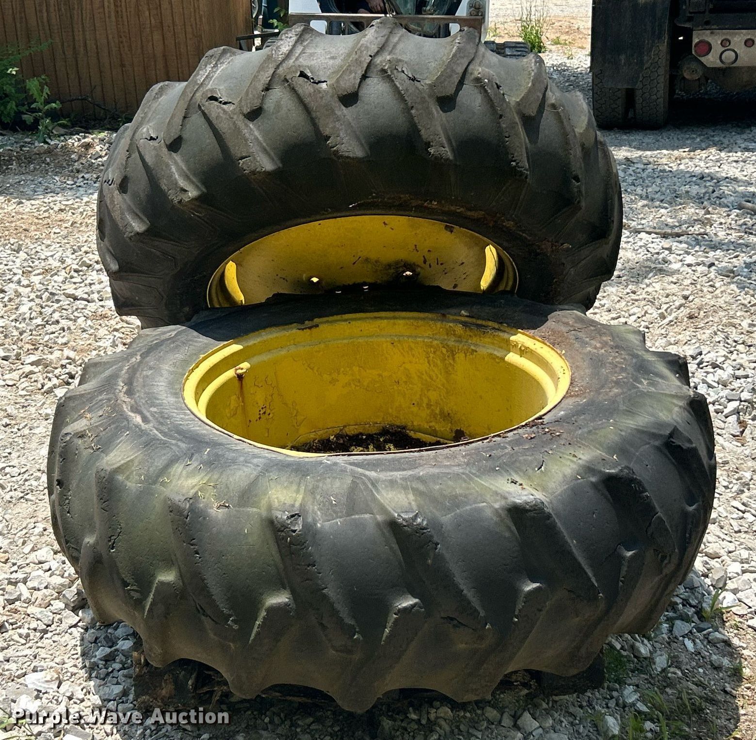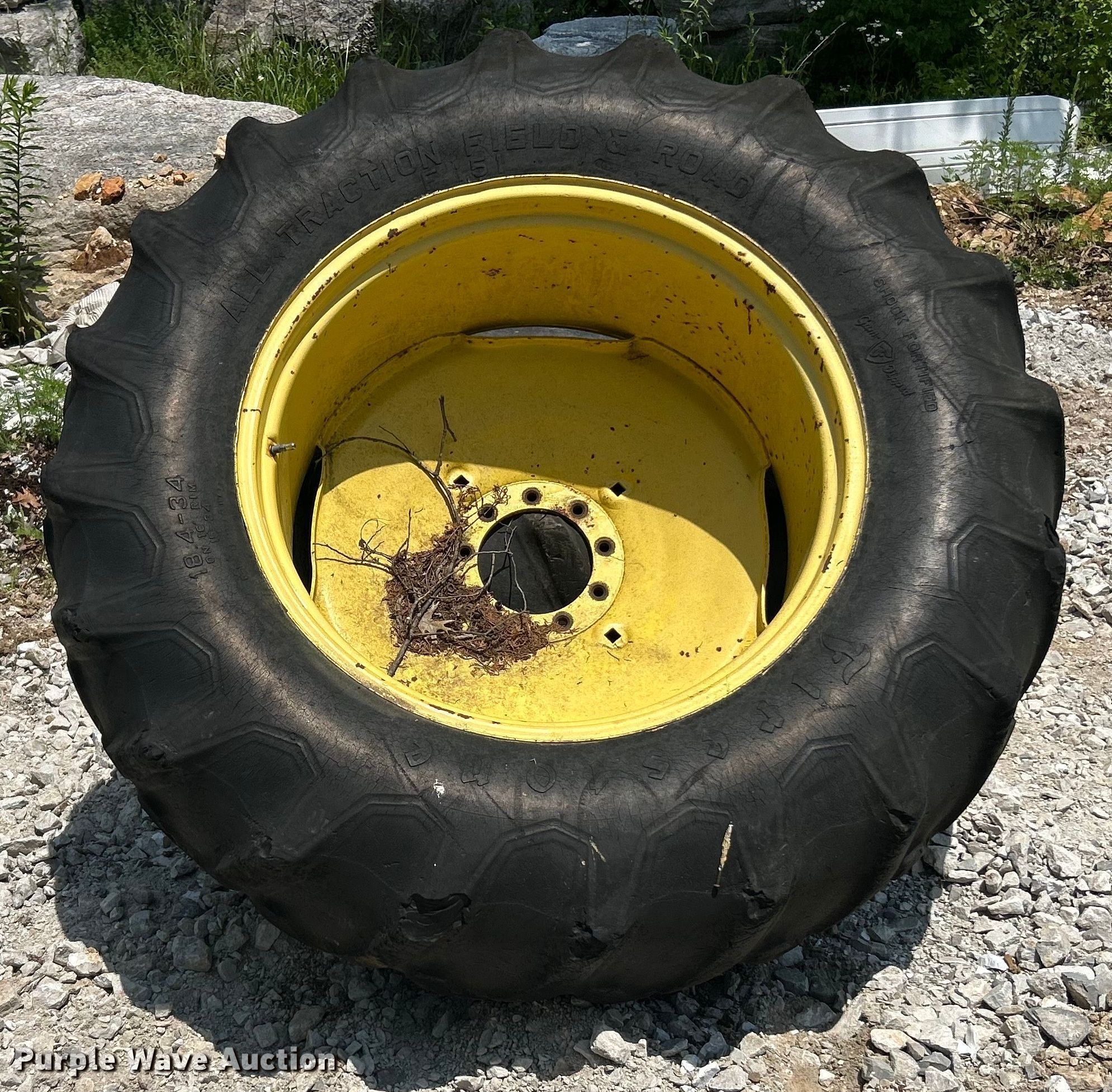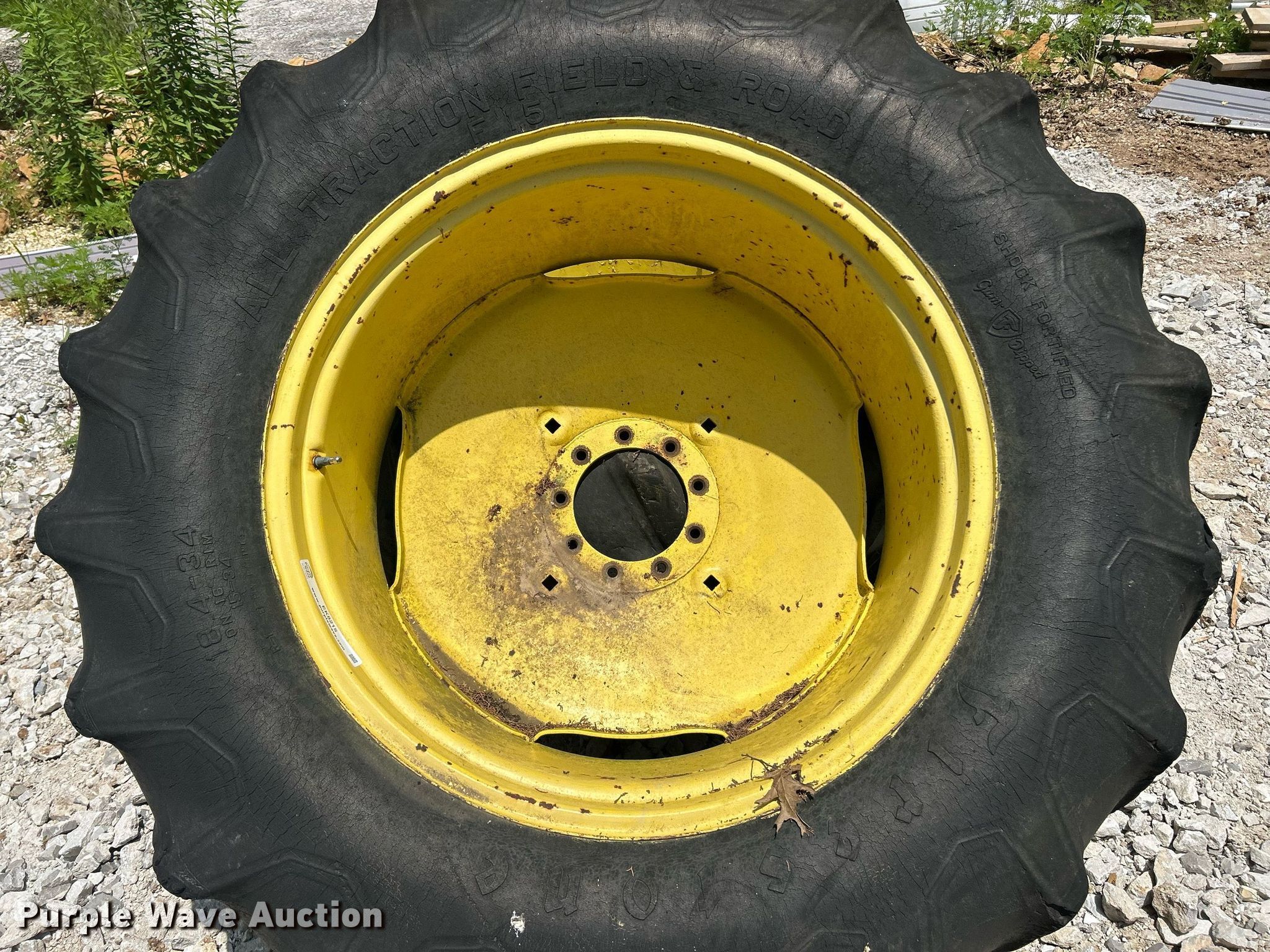 Firestone (2) 18.4-34 Firestone tractor tires and wheels | SOLD! July 09 Ag Equipment Auction