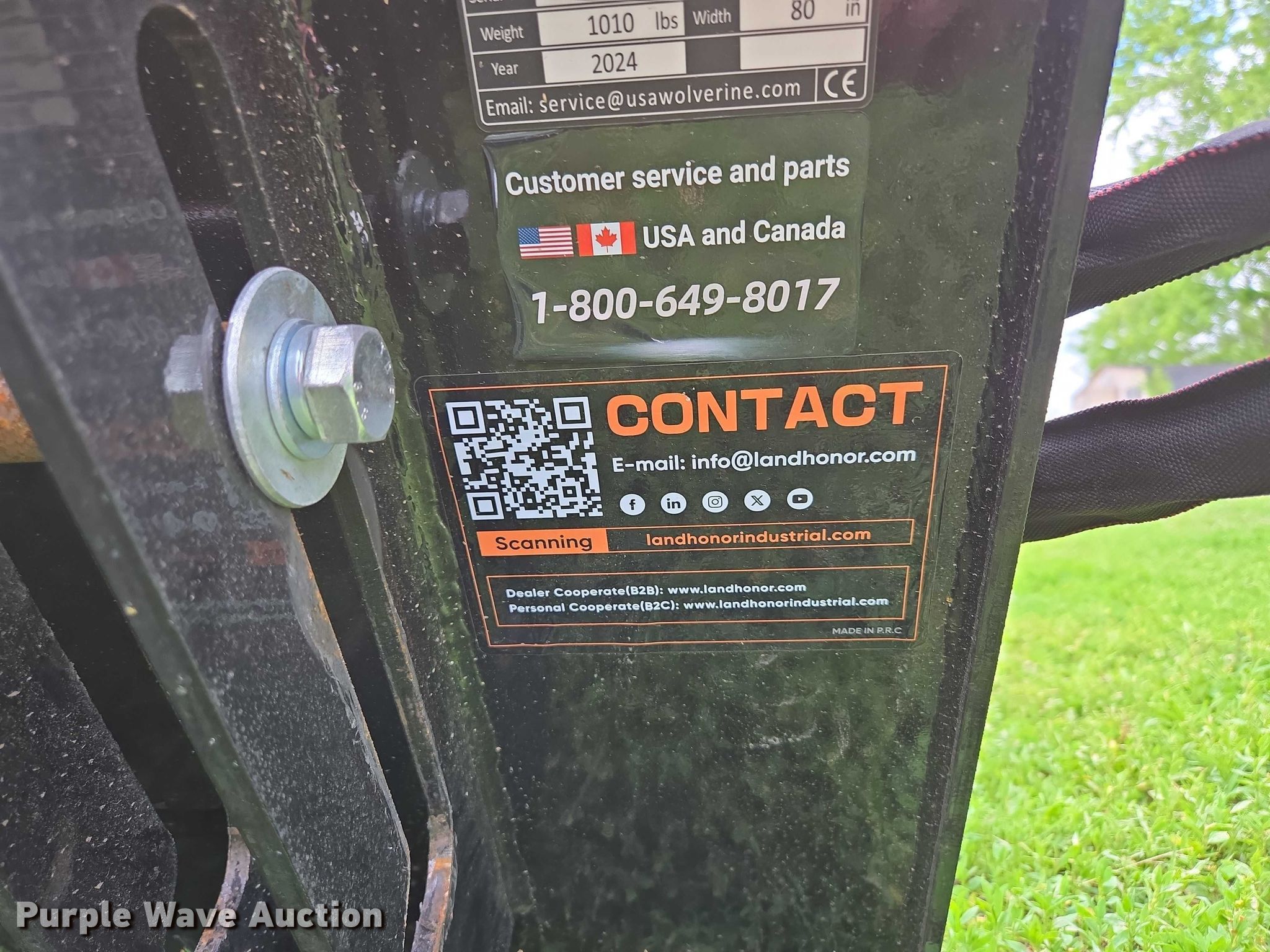 Purple Wave is selling a used Skid Steer Attach. in Missouri. This item is a 2024 Wolverine TBM-12-78W skid steer rotary mower with the following: Serial: ZW-01021, Width: 80", Cutting width: 72"