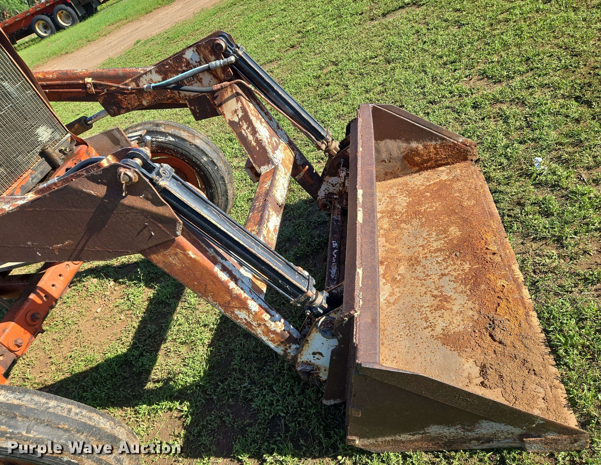 Allis Chalmers D17 tractor. Hours: 3,316 on meter. Engine Cylinders: 4, Fuel type: LPG. Transmission Powershift, 8F - 2R. Features PTO: 540, Three point, Hydraulic remote sets Rear: 1, Loader Self-leveling, Controls: Two-lever, Bucket Width: 55".. Tires Front: 6.00-16, Rear: 16.9-28, Wheel weights: 2. Jet, OK 73749