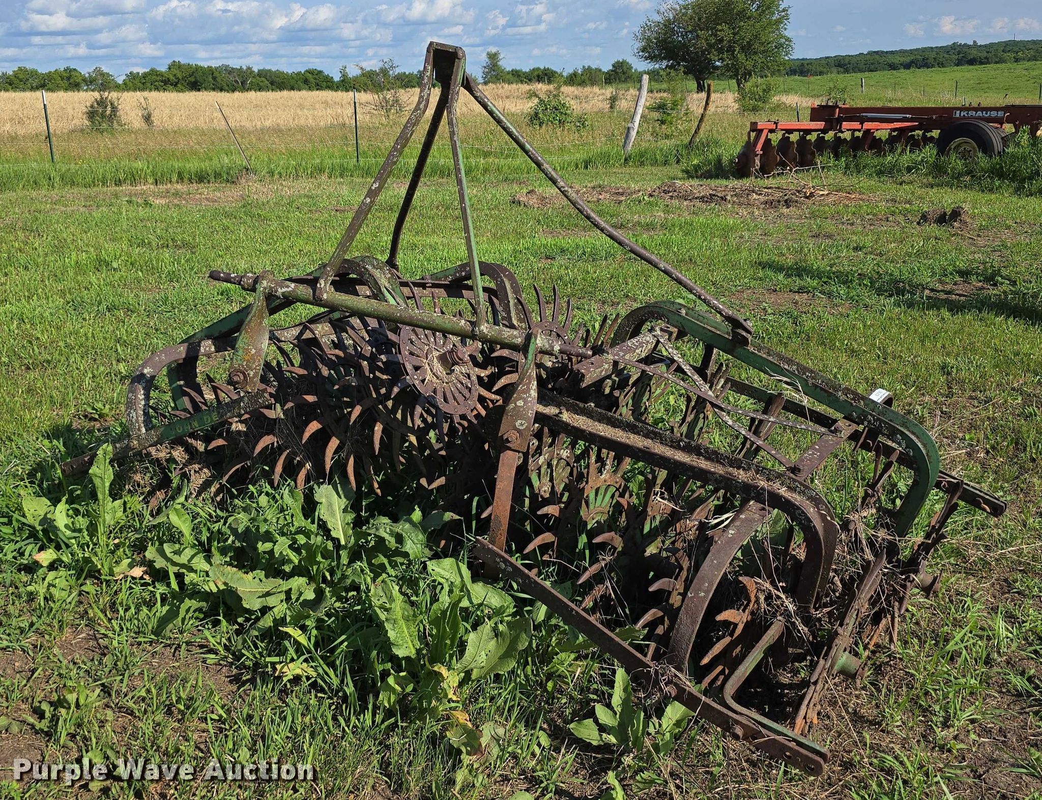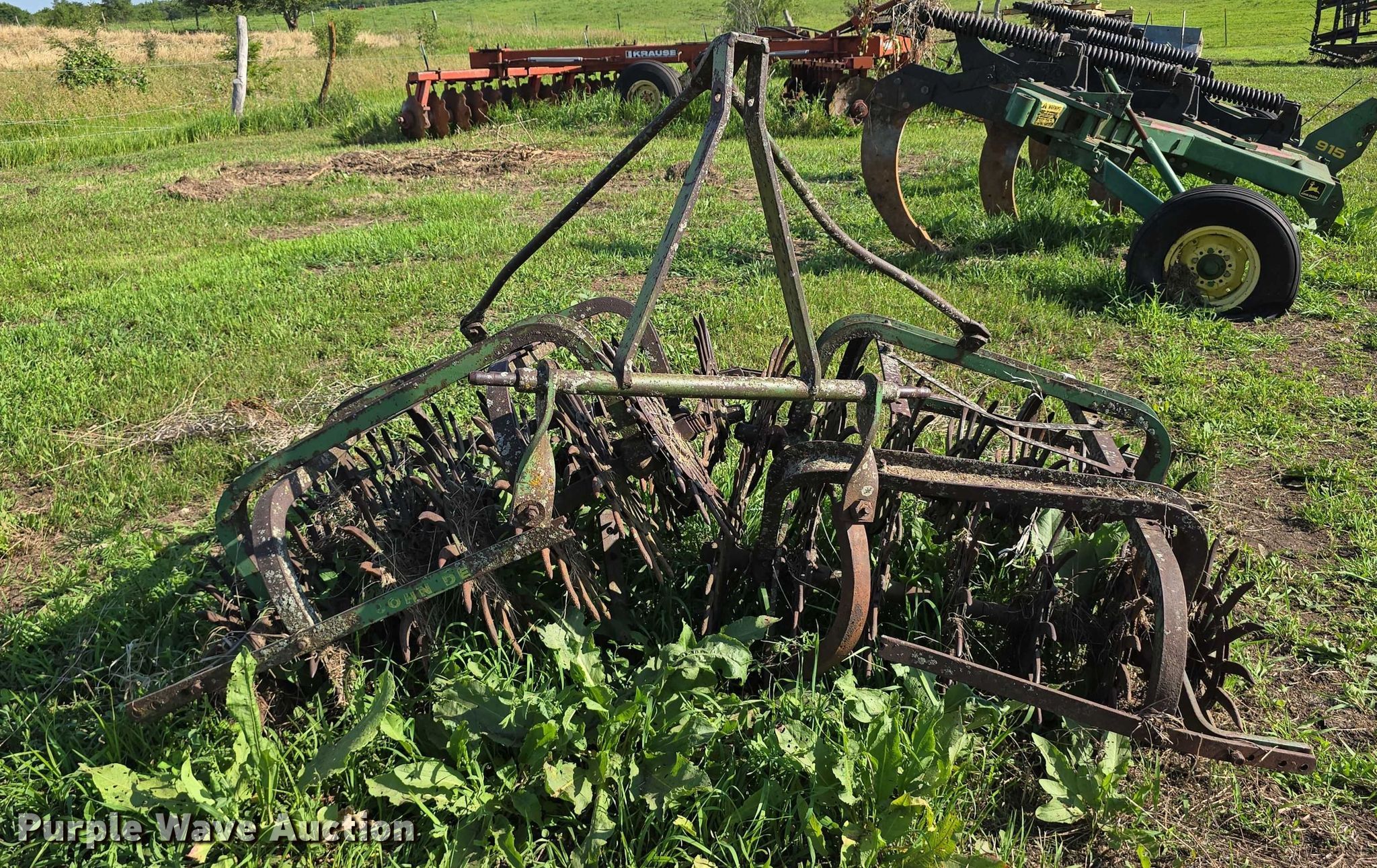 John Deere rotary hoe. Overall width: 8'. Features Diameter: 19", Hitch: Three point. Notes Unknown operating condition. Kickapoo Tribe. Horton, KS 66439