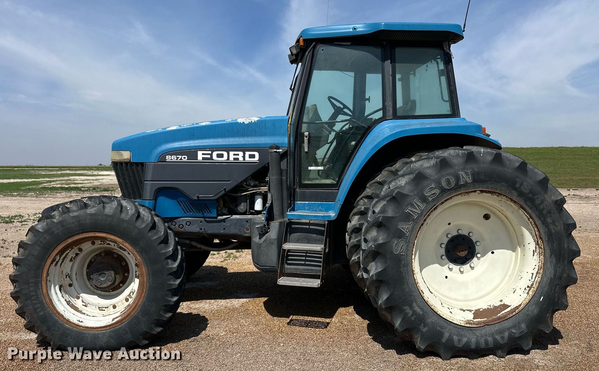 Purple Wave is selling a used Tractor in Kansas. This item is a Ford 8670 MFWD tractor with the following: Hours: 10,886 on meter