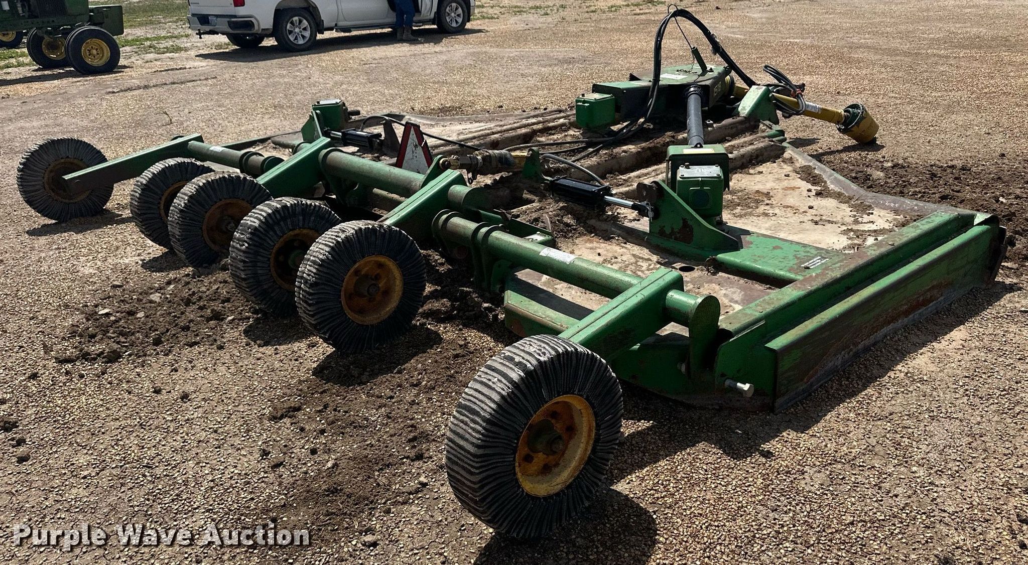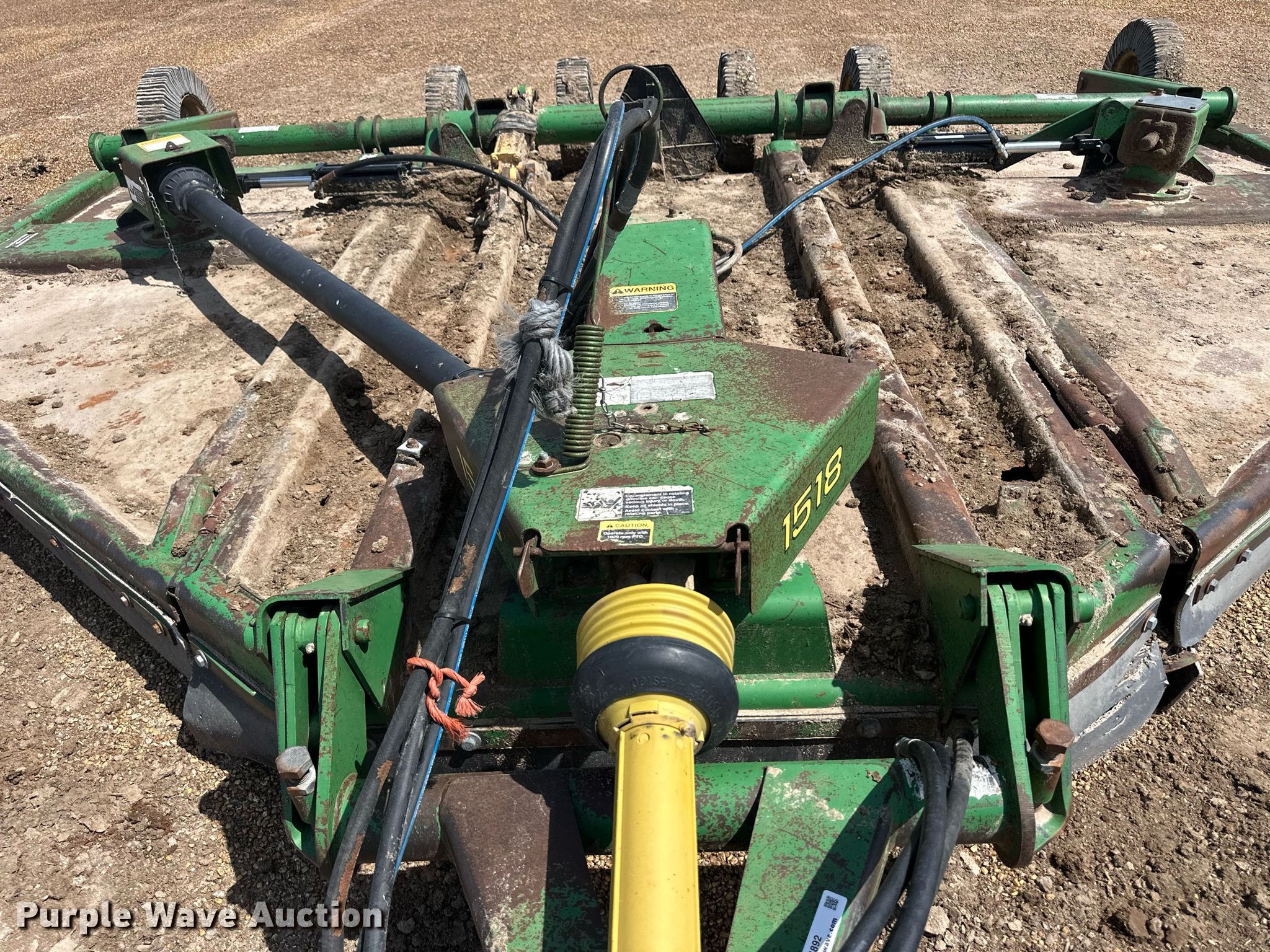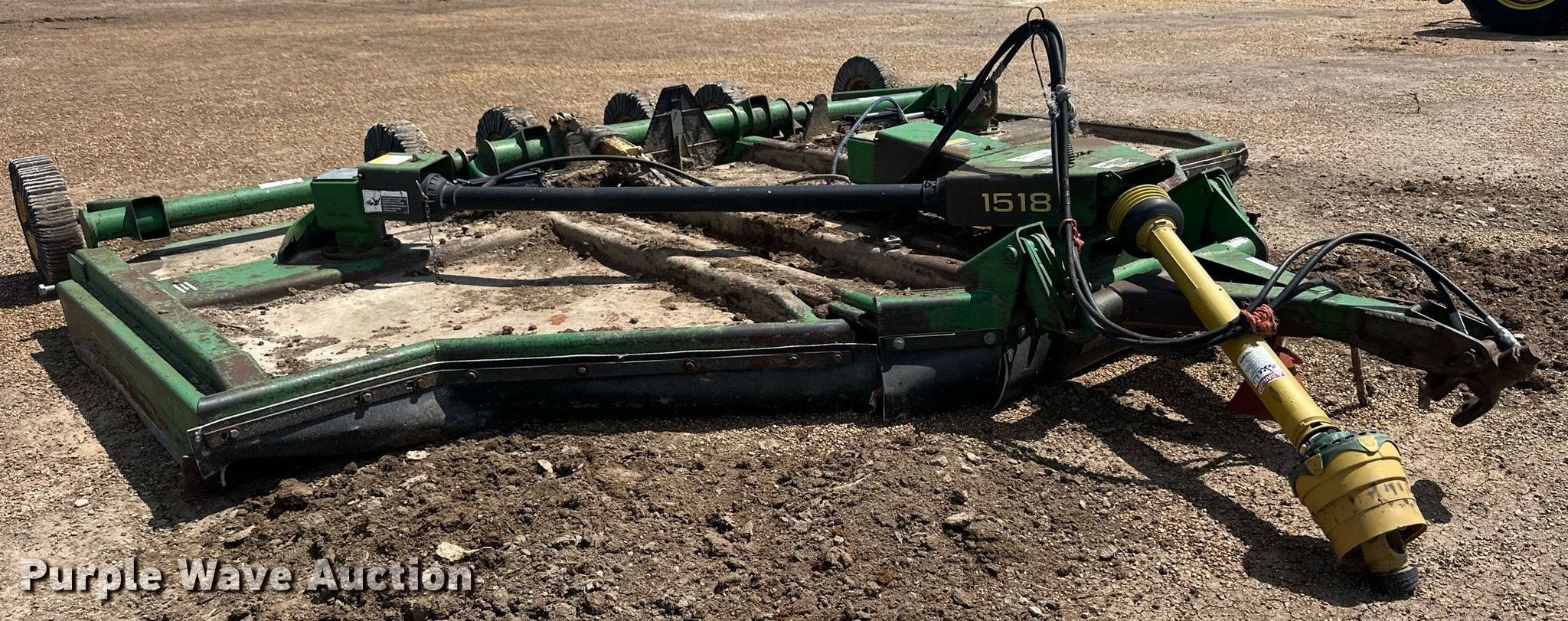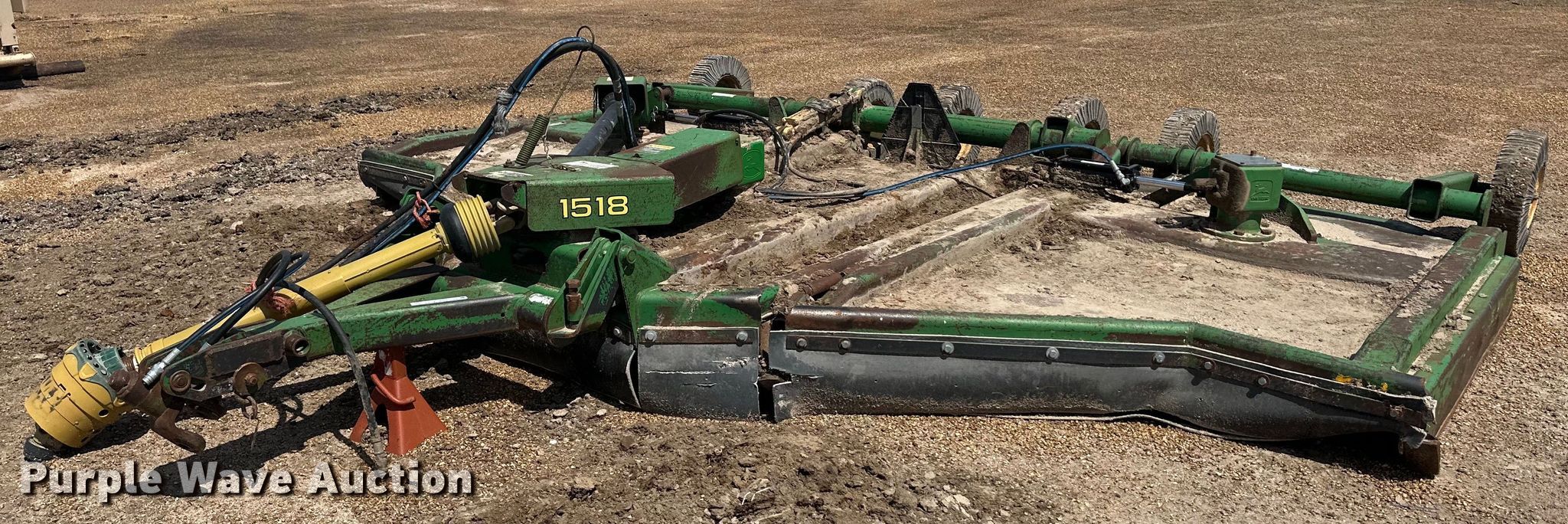 Purple Wave is selling a used Mower, Cutter, Shredder in Kansas. This item is a John Deere 1518 rotary mower with the following: Width: 15', Hydraulic lift, Hydraulic fold, PTO: 1 3/4" 1000